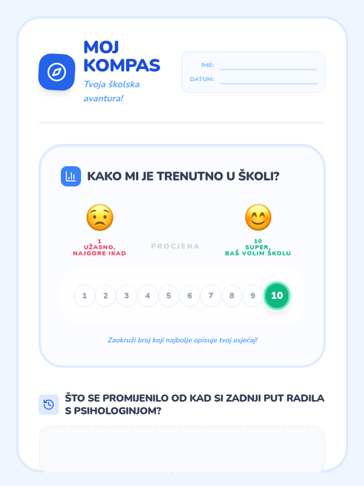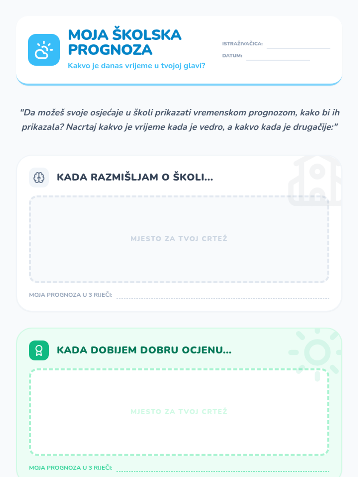 Prvi susret s učenicom trećeg razreda usmjeren na procjenu motivacije, atribucijskih stilova i uspostavljanje povjerenja kroz kreativne aktivnosti.
