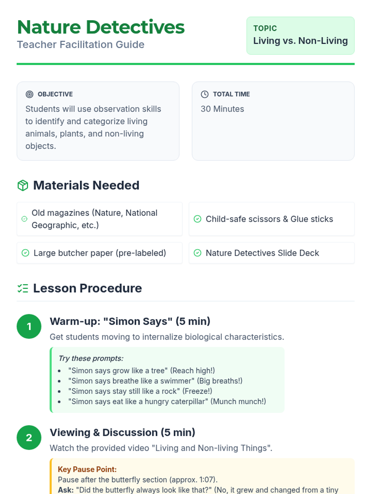 In this Pre-K lesson, students explore the differences between day and night. They will observe celestial bodies, understand how the sun helps the moon shine through a short video, and participate in a tactile sorting activity to categorize daytime and nighttime activities and objects.