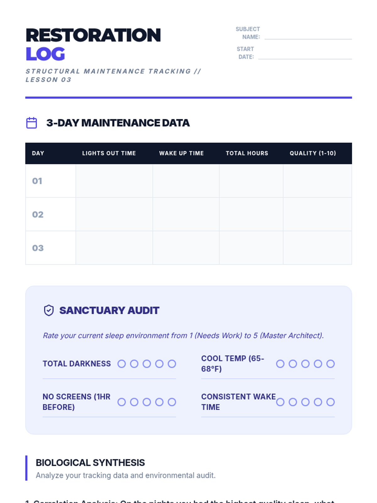 Students analyze data regarding sleep cycles and the body's repair processes during REM and deep sleep. They track their own sleep habits and evaluate how sleep deprivation correlates with short-term illness and long-term health issues.