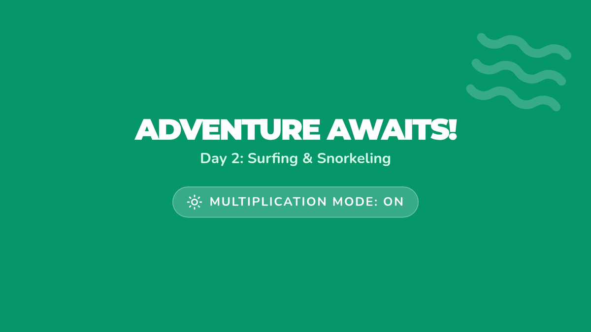 Introduces multiplication into two-step word problems focused on island activities like surfing and snorkeling.
