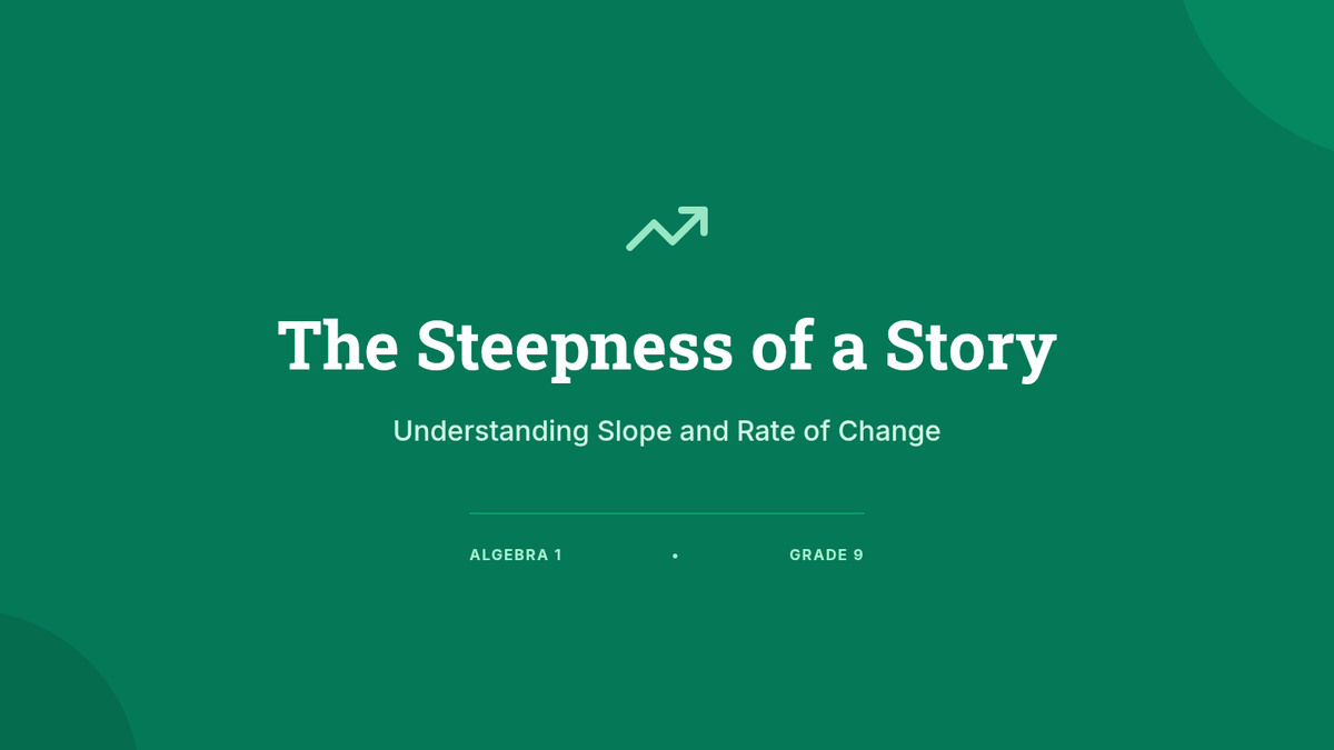 This lesson introduces 9th-grade students to the concept of slope, enabling them to calculate it from graphs or two given points and interpret it as a rate of change in real-world scenarios.