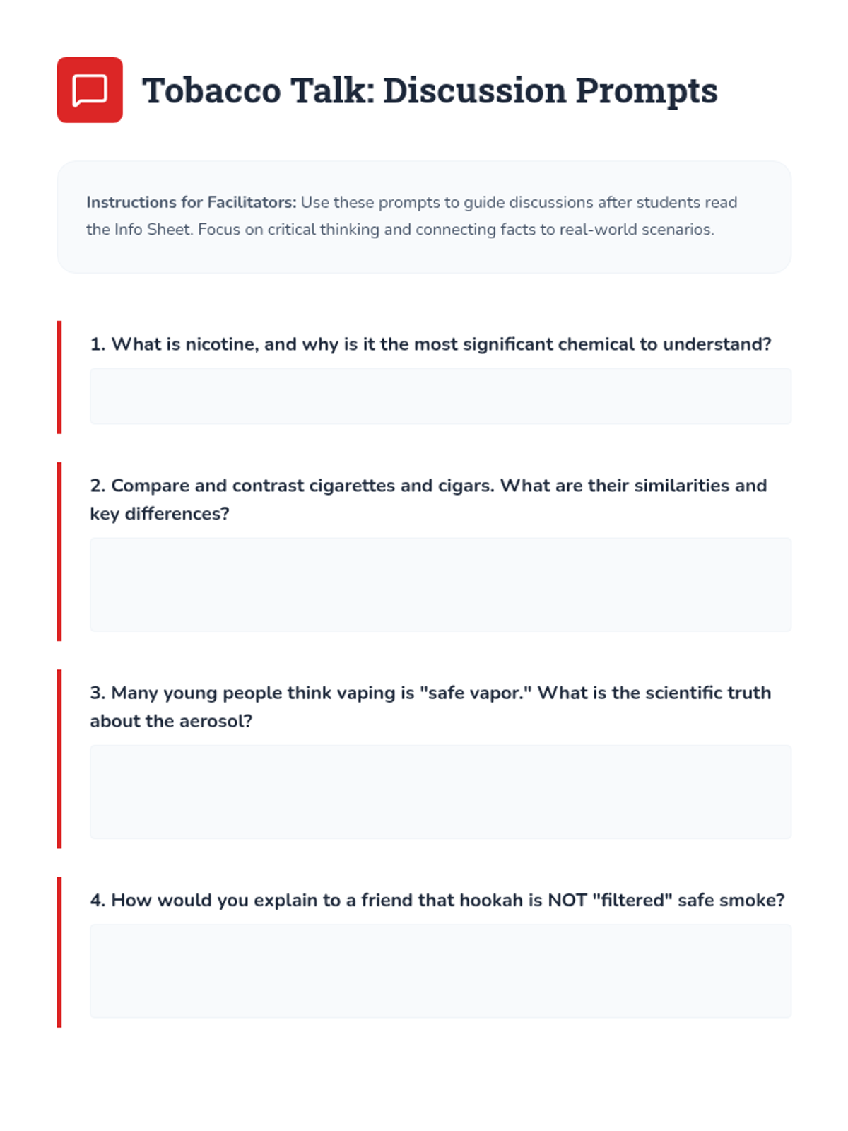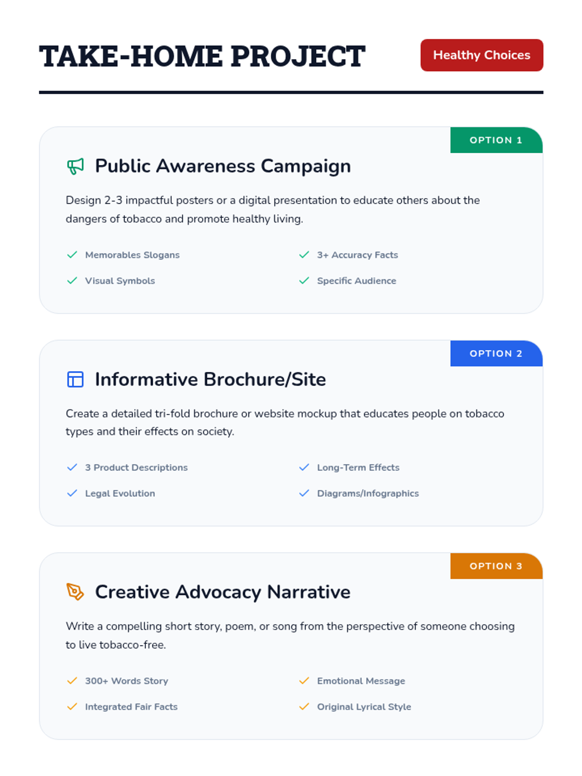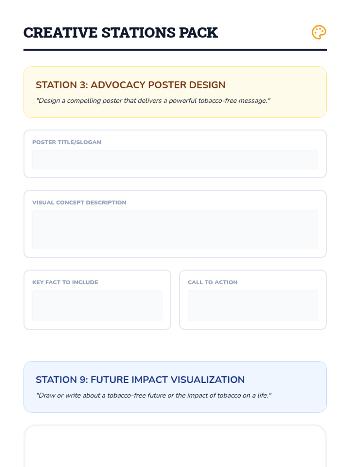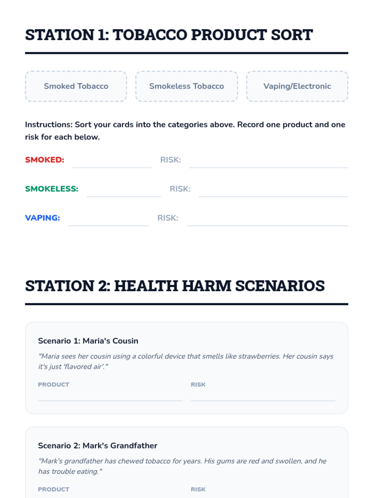 An interactive fair event for 5th and 6th-grade students to explore tobacco products, health risks, and evolving social norms through station-based learning.