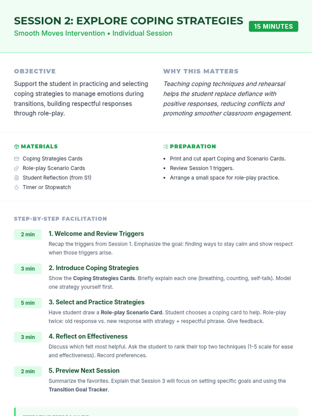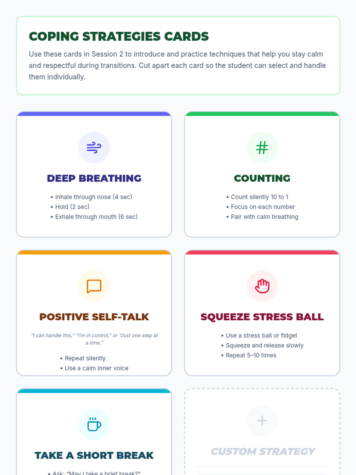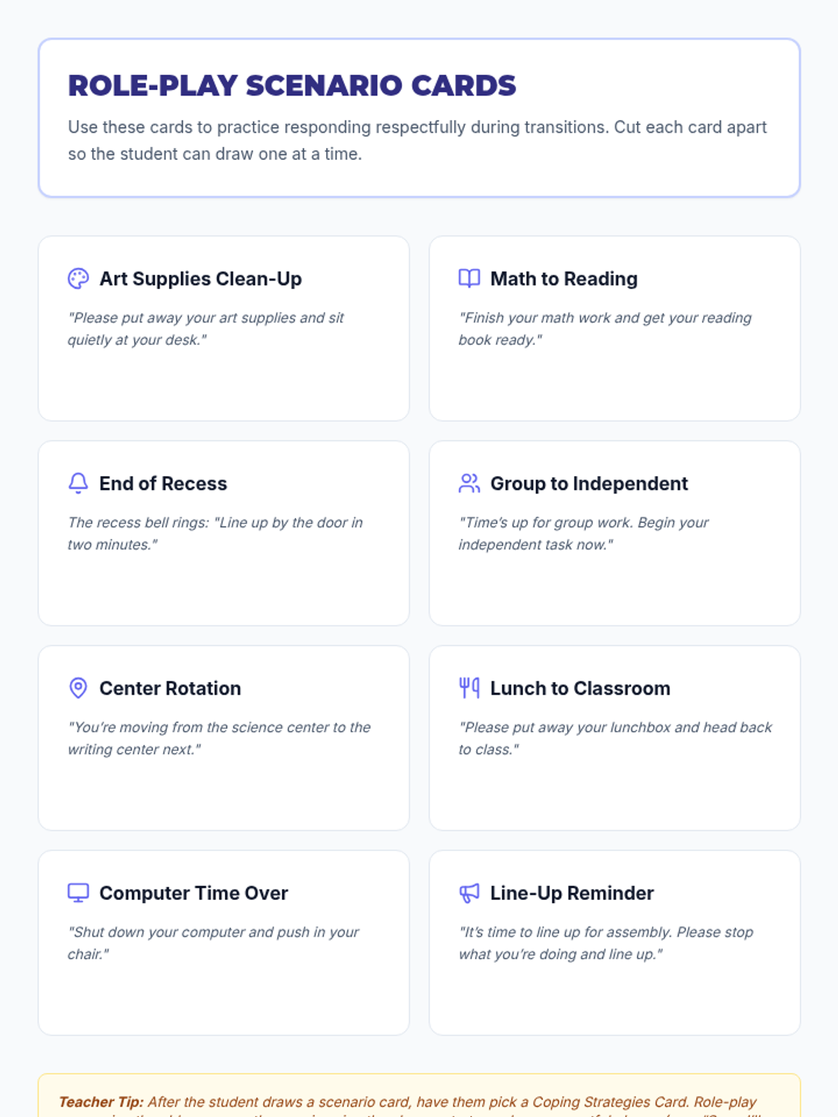 Explore and practice coping strategies using role-play scenarios to manage emotions during transitions.