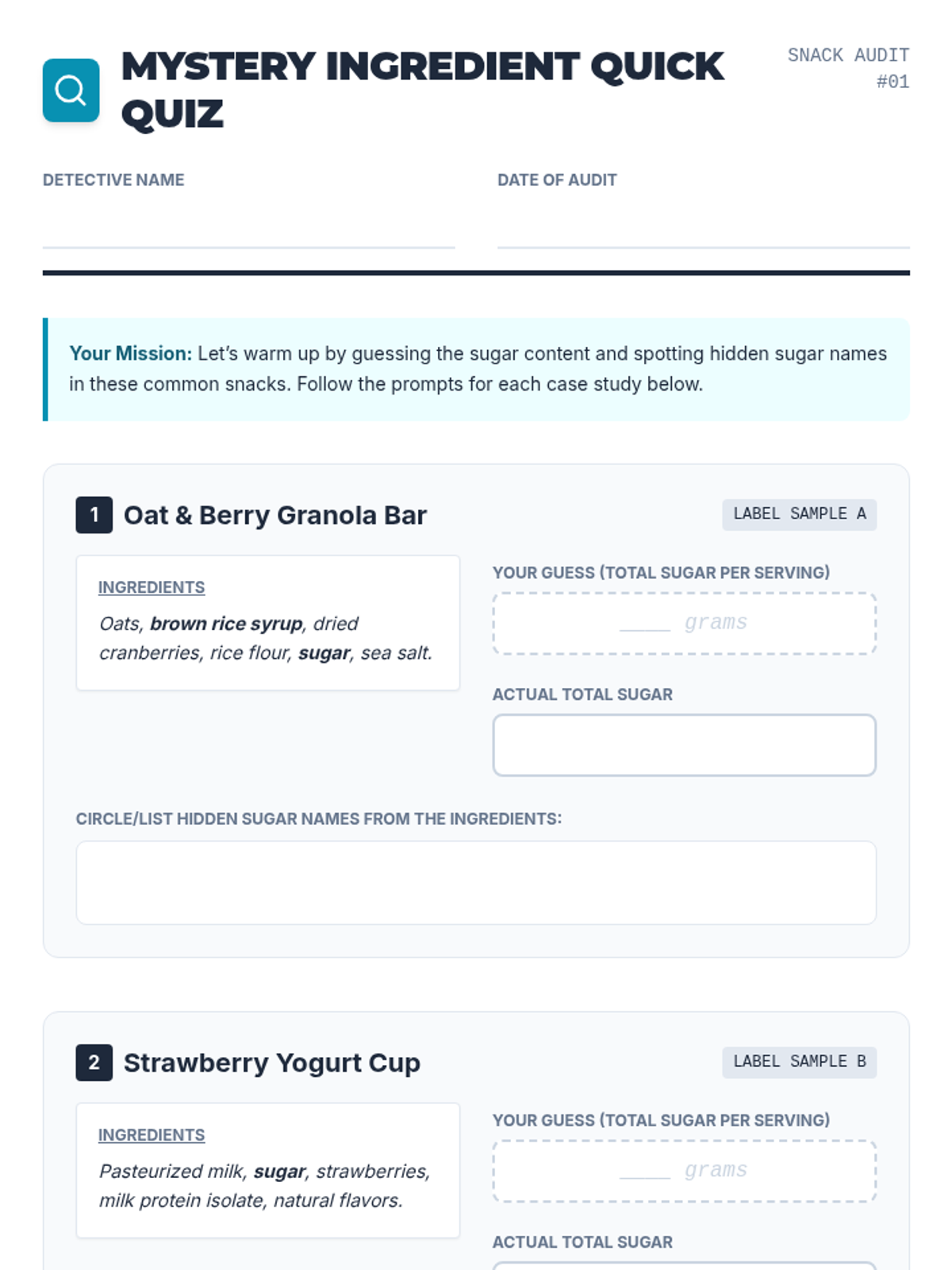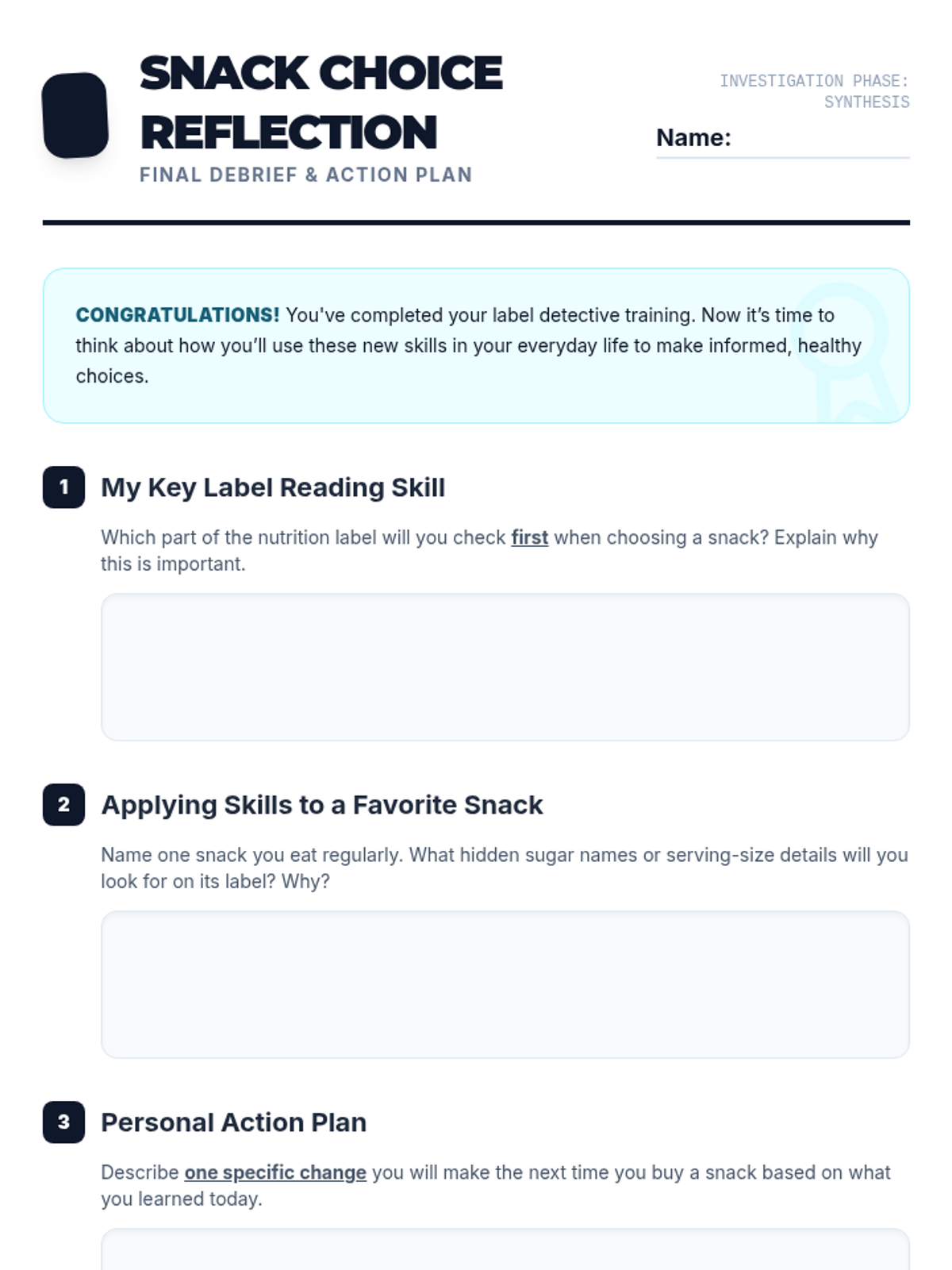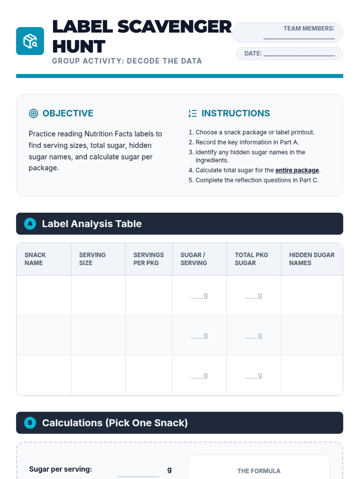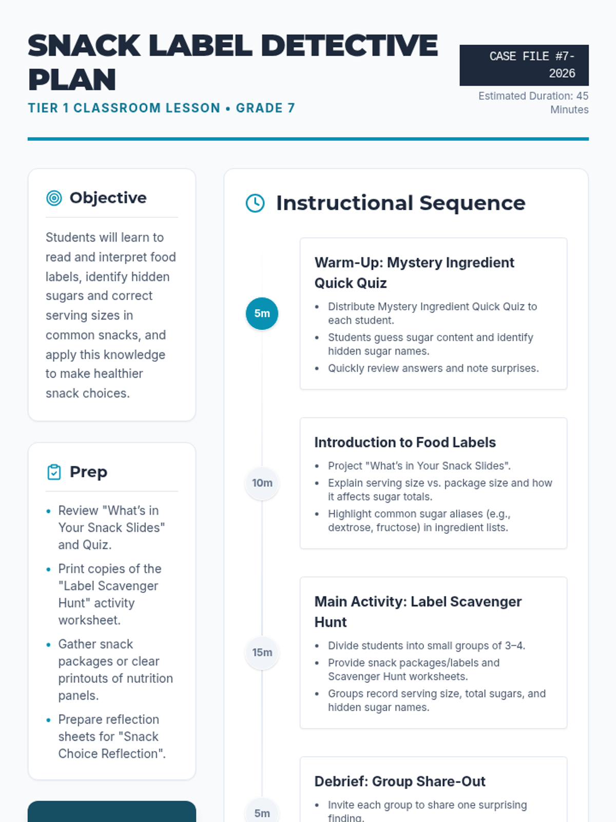 An investigation into food labels where 7th graders decode hidden sugars and serving sizes to make better nutritional choices.