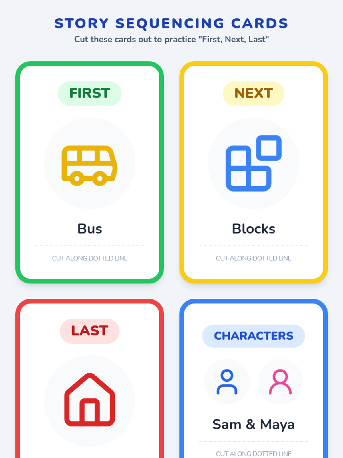 Introduce students to the story characters and the basic setting of a school day, establishing the foundation for comprehension.