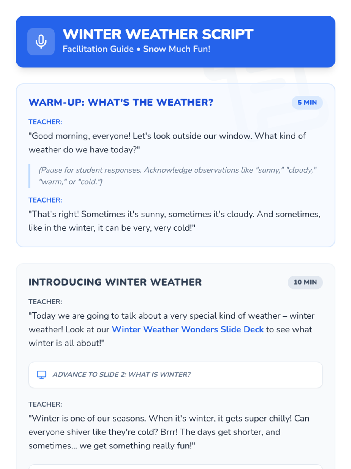 A set of interactive resources designed to integrate core vocabulary into daily morning meetings, featuring prompt cards, visual aids, and teacher guidance.