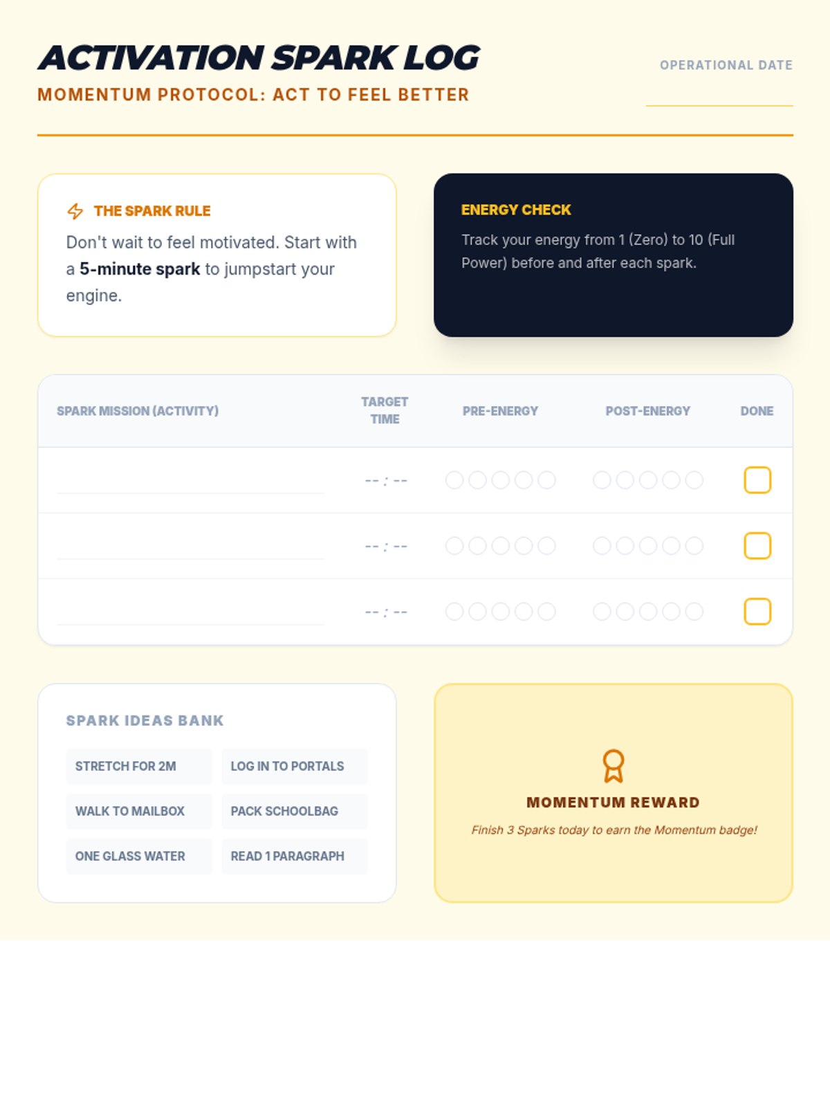 Focuses on 'Behavioral Activation'—the science of doing to feel better. Students build a Daily Activation Planner to spark momentum even when motivation is low.