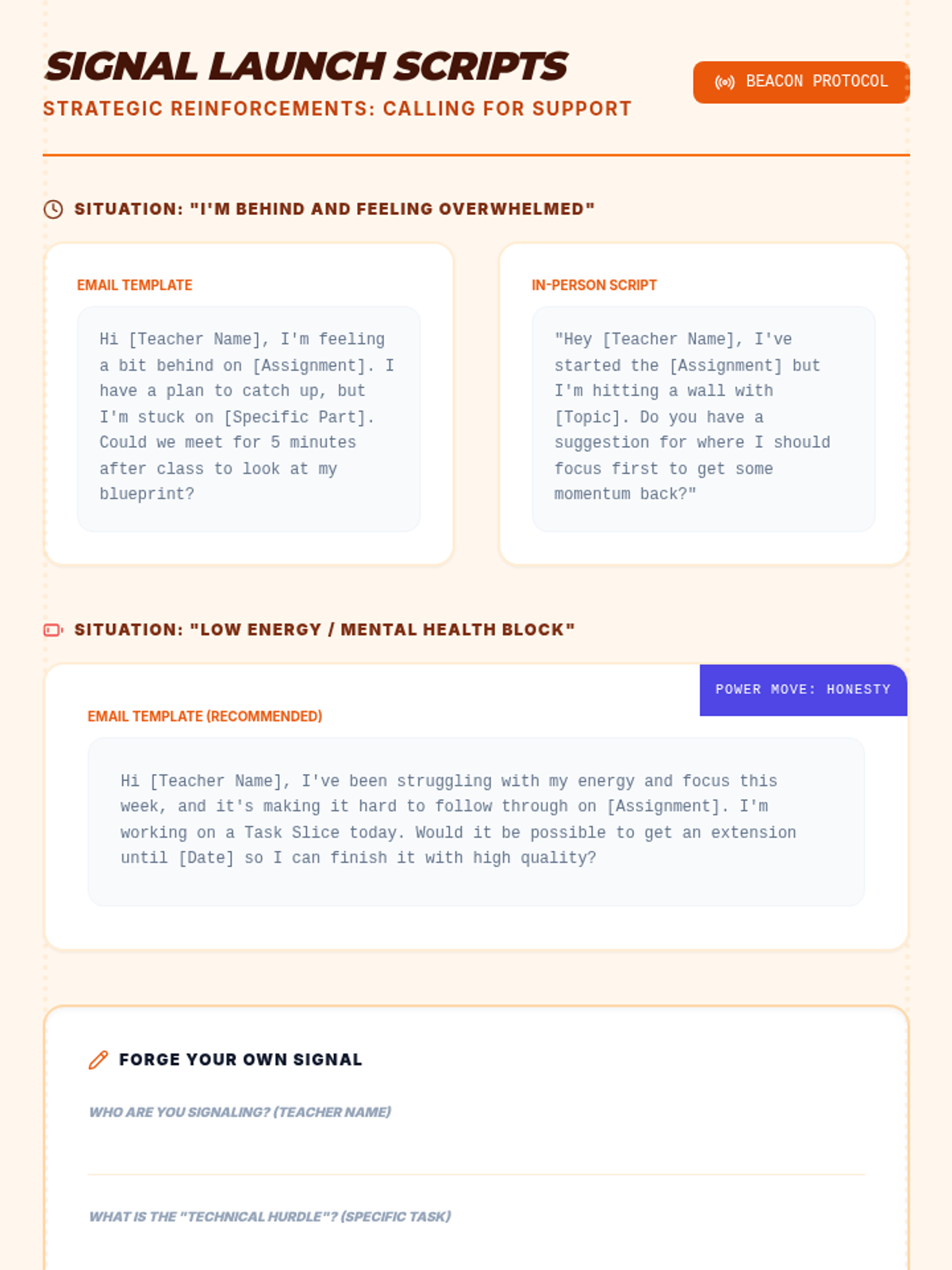 Breaking the silence. Students develop self-advocacy scripts to ask for help before they are underwater, reframing help-seeking as a strategic power move.
