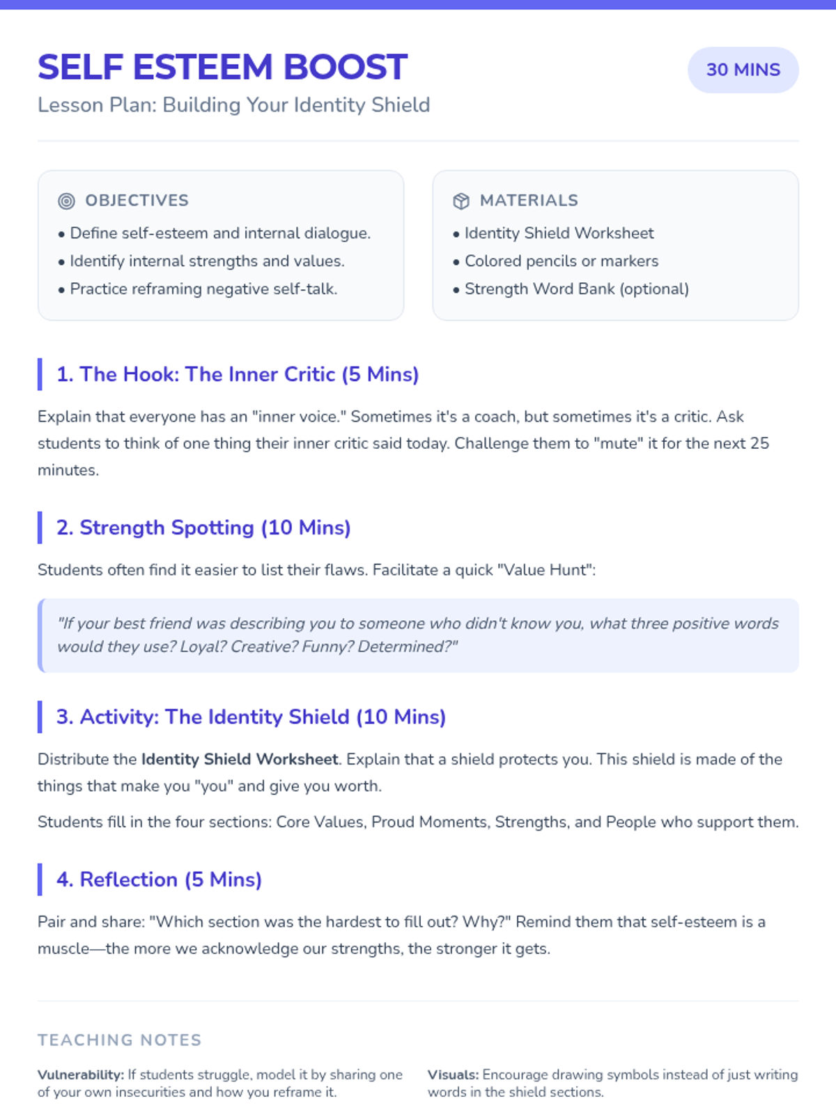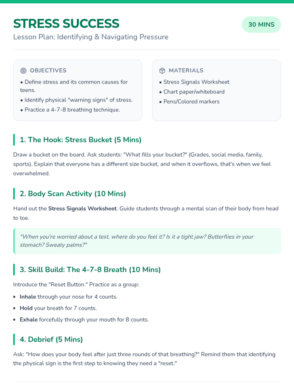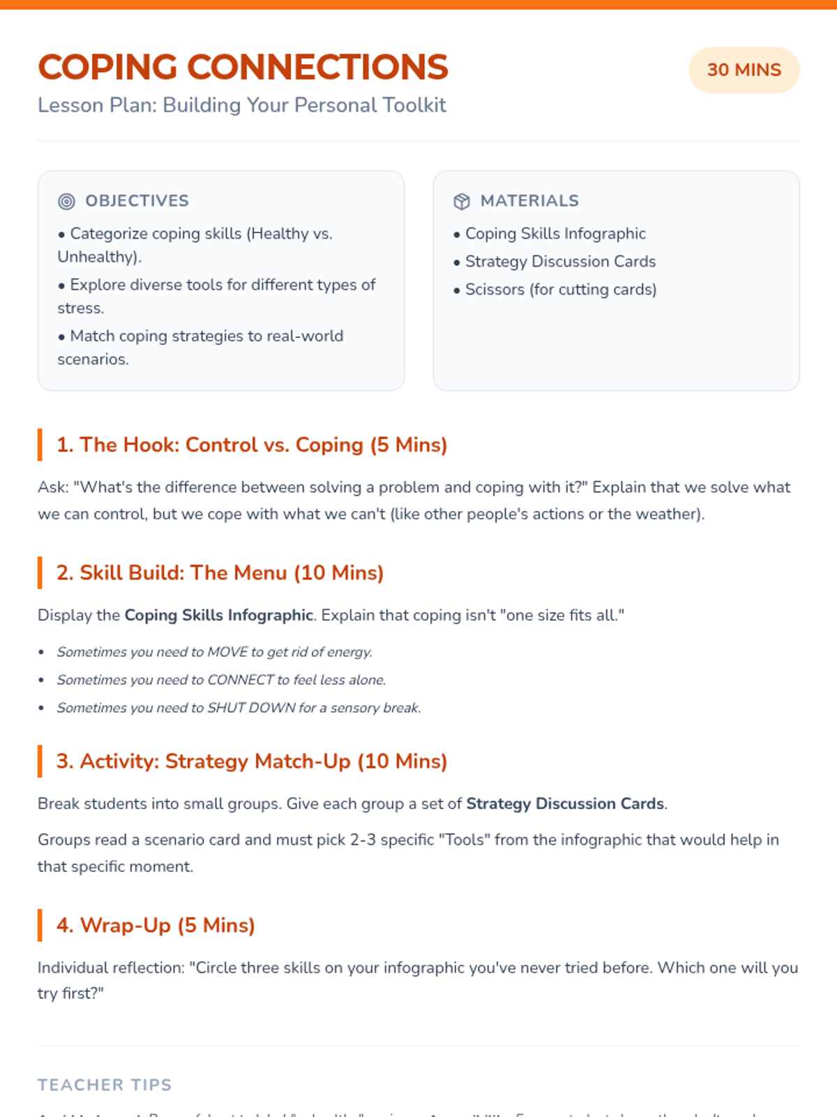 A comprehensive lesson helping 7th graders navigate the complexities of social relationships through scenario-based problem-solving and discussions on boundaries. Students learn to identify healthy dynamics and contribute to a positive school environment.