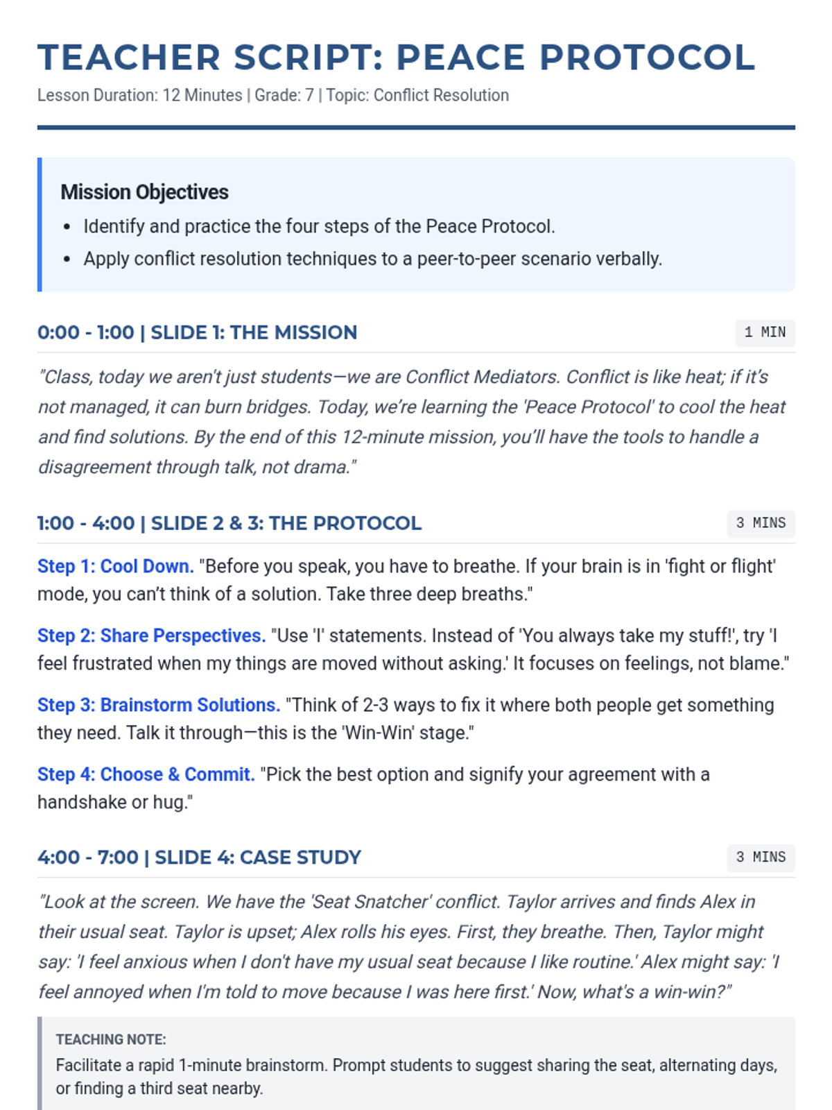 A comprehensive social-emotional learning lesson focused on developing and practicing coping strategies for navigating social rejection, teasing, and feeling left out. Students learn to use specific 'plays' like walking away, seeking support, and using 'I' statements to maintain emotional regulation.