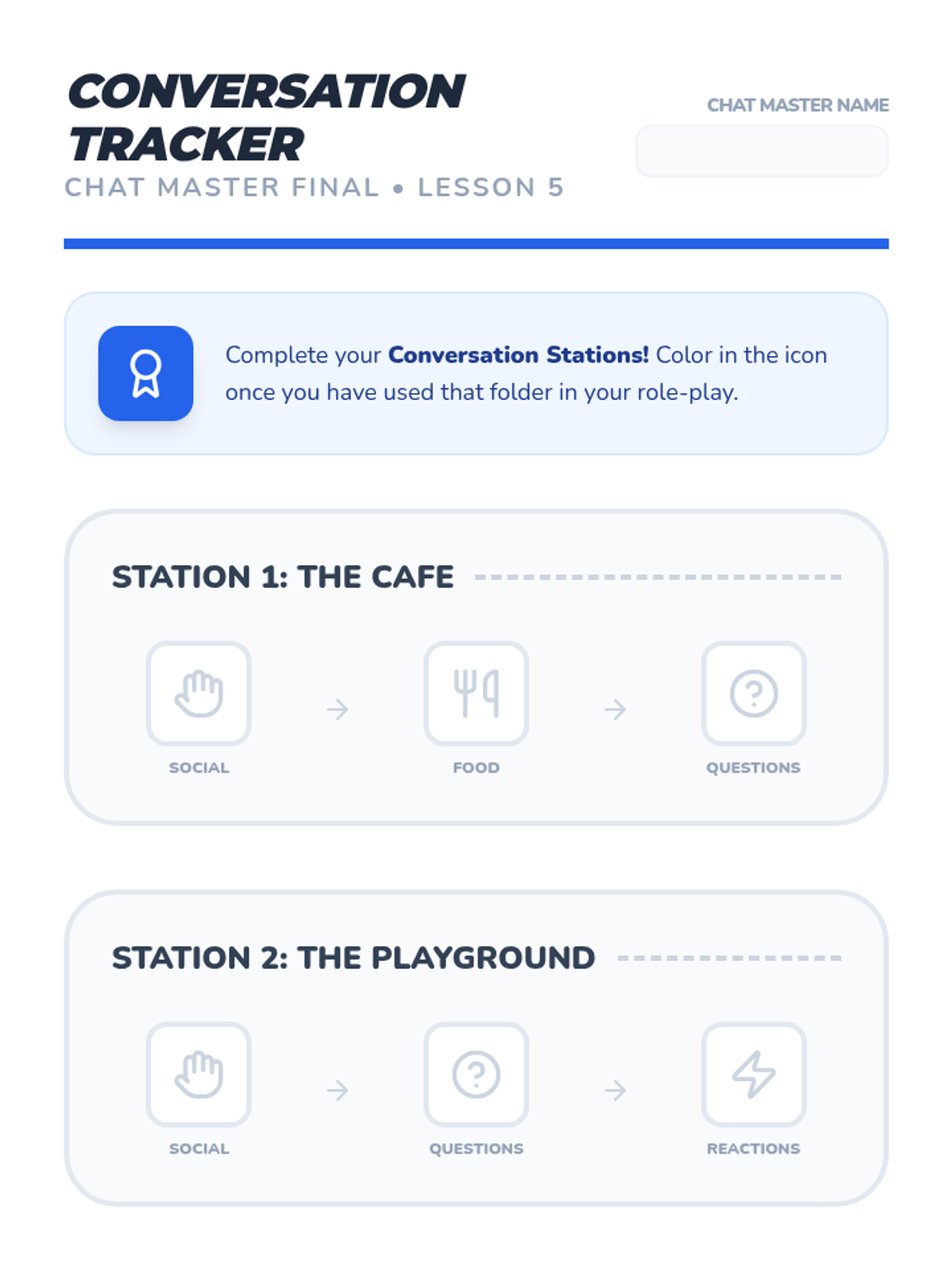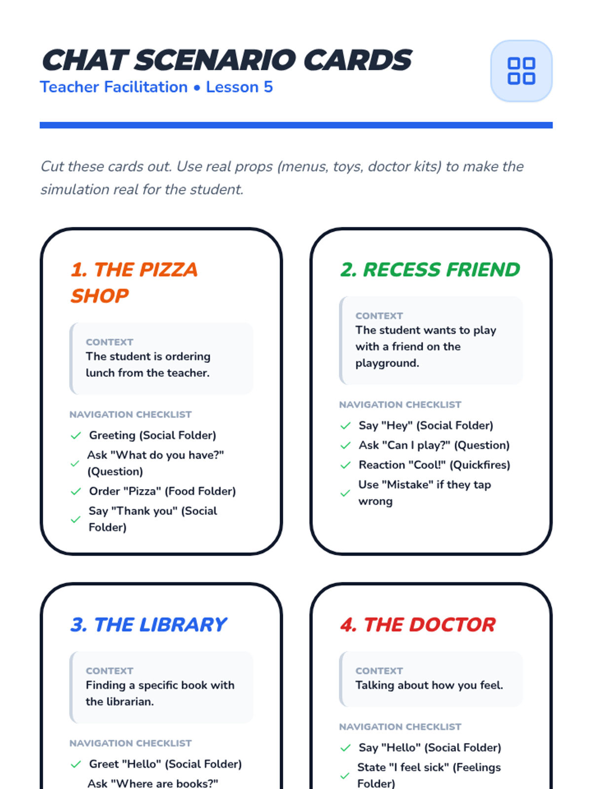 Students engage in structured role-plays that require navigating across multiple folders to maintain a complete conversation flow.