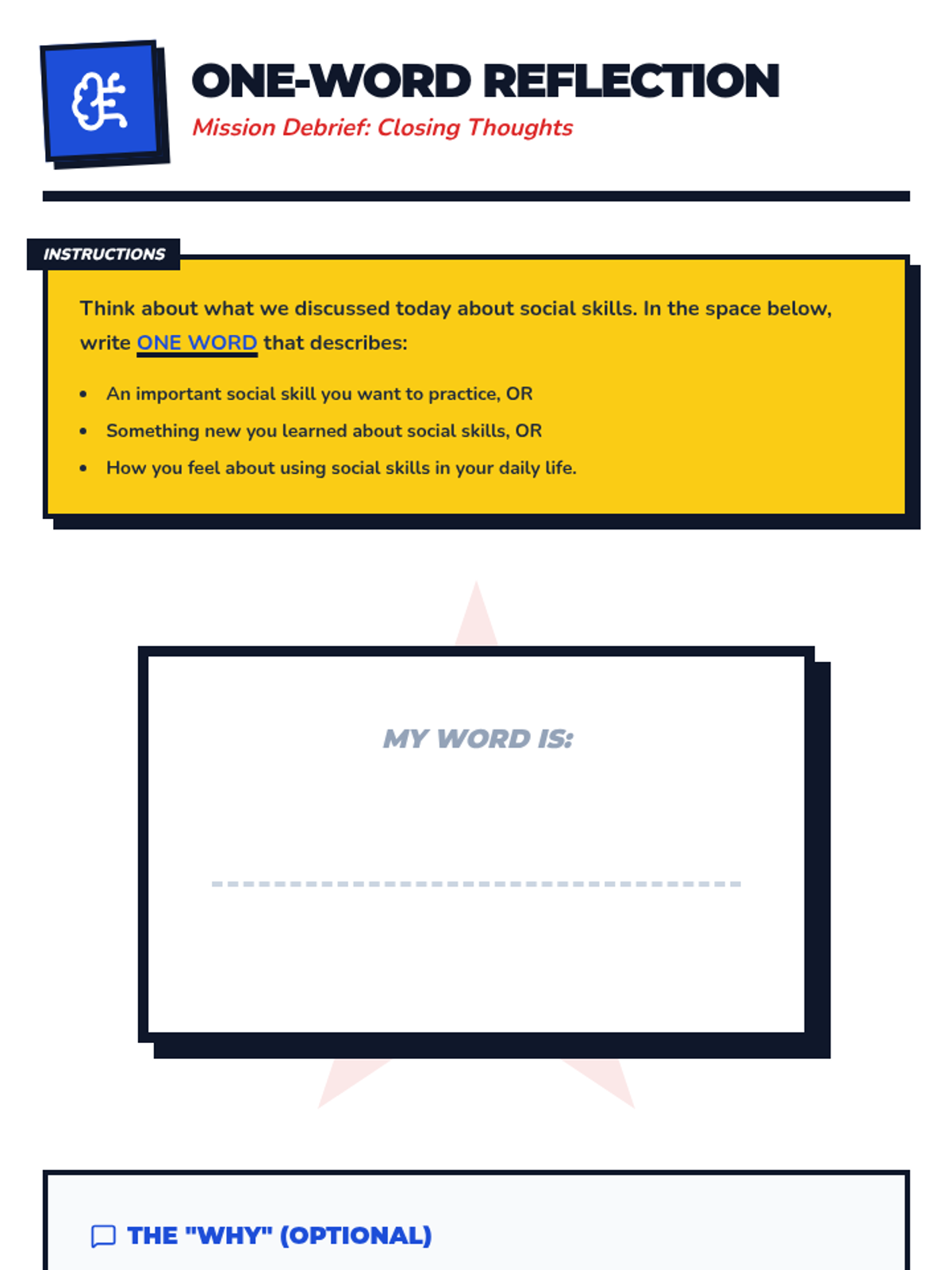 Finalizes skills with conflict resolution strategies (Stop-Drop-Solve) and long-term goal planning.