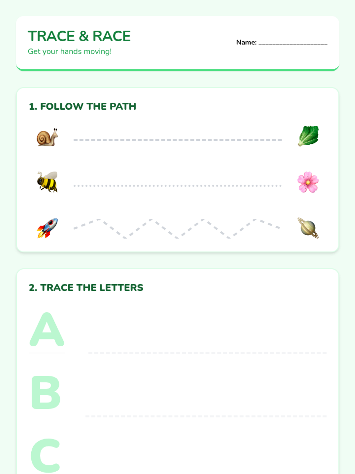 Introduces letter identification, pre-writing strokes, and foundational CVC word blending using tactile and visual puzzles.