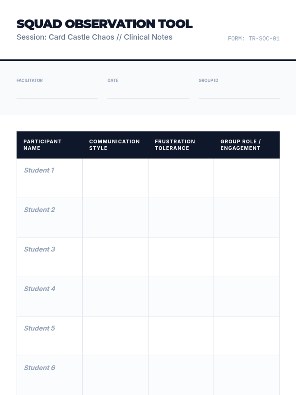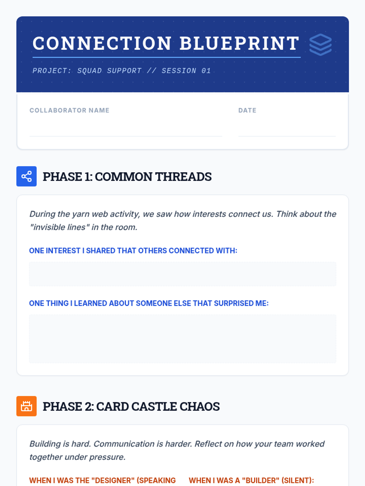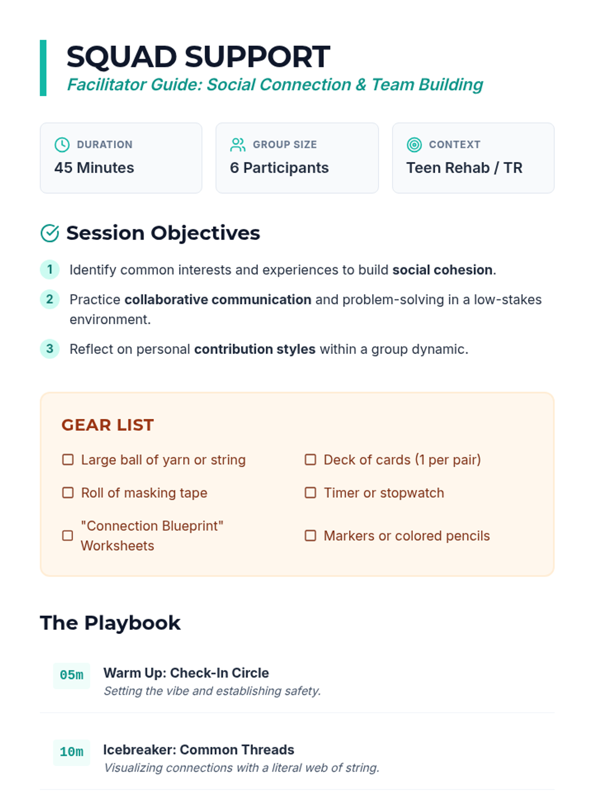 A 45-minute therapeutic leisure session for teens focused on building social connections and team dynamics through collaborative activities and reflection.