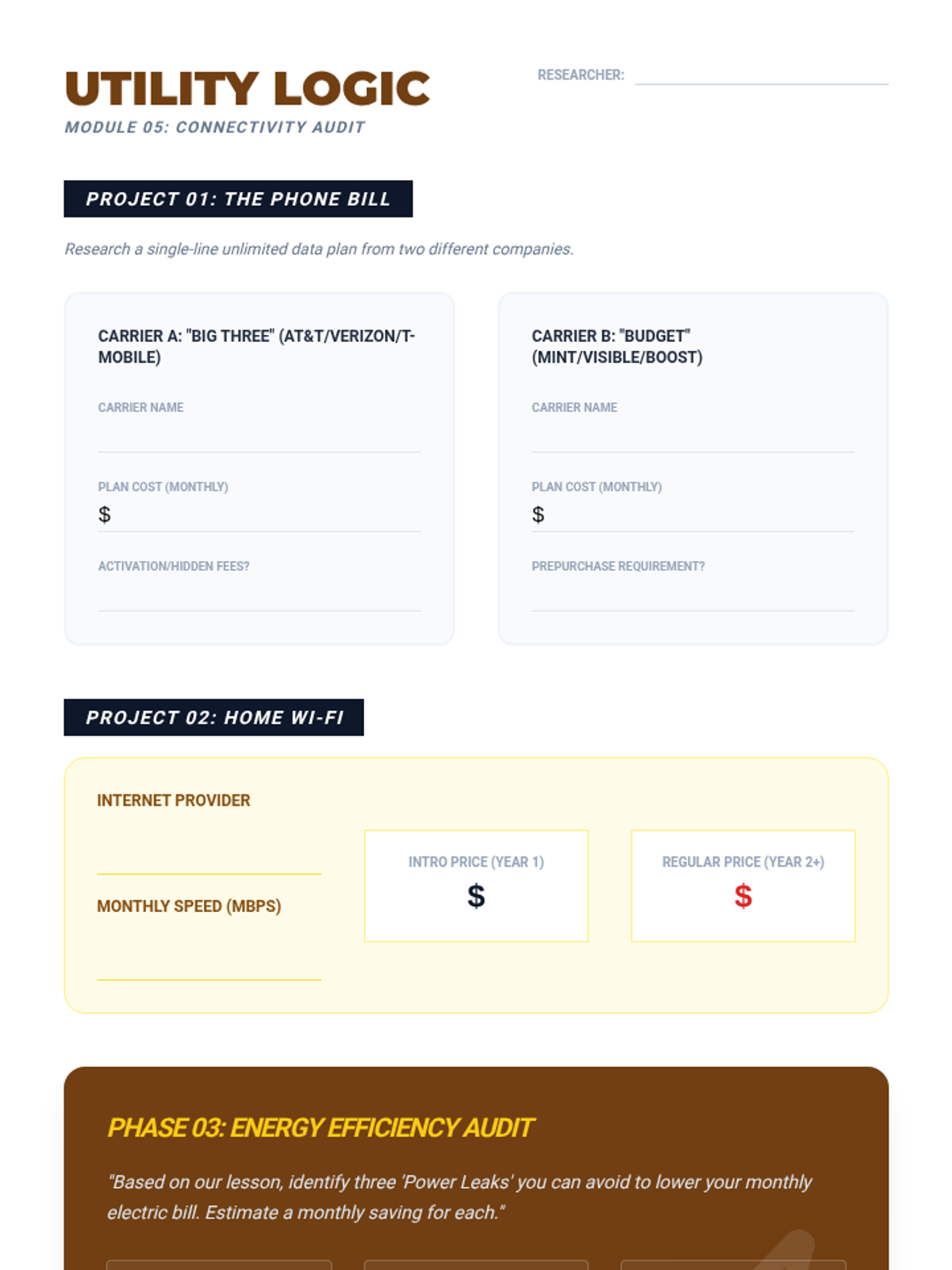 Managing recurring monthly bills like internet, phone plans, and electricity, including strategies for reducing usage and costs.