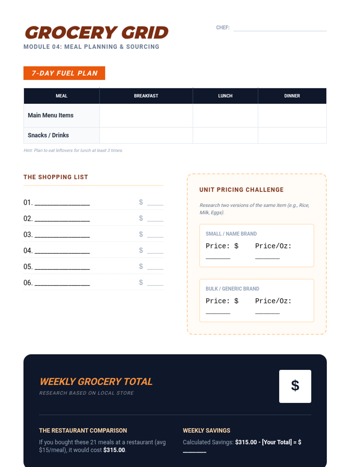 Practical math for grocery shopping, including unit pricing, meal planning on a budget, and the hidden costs of convenience foods.