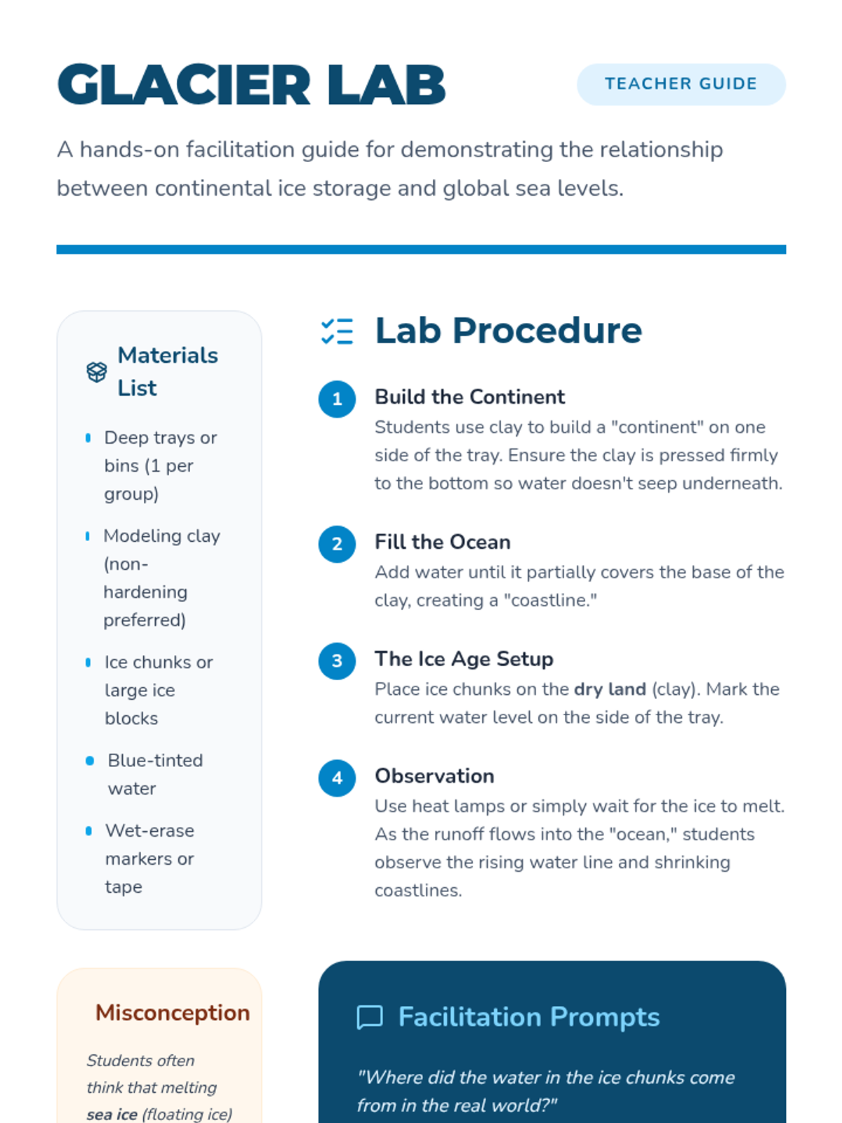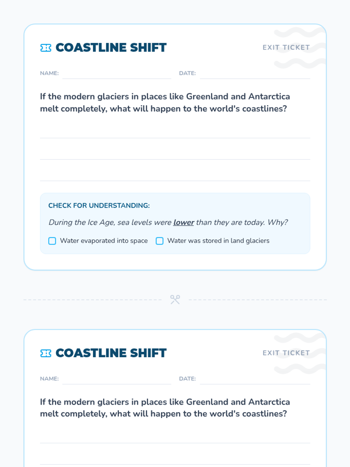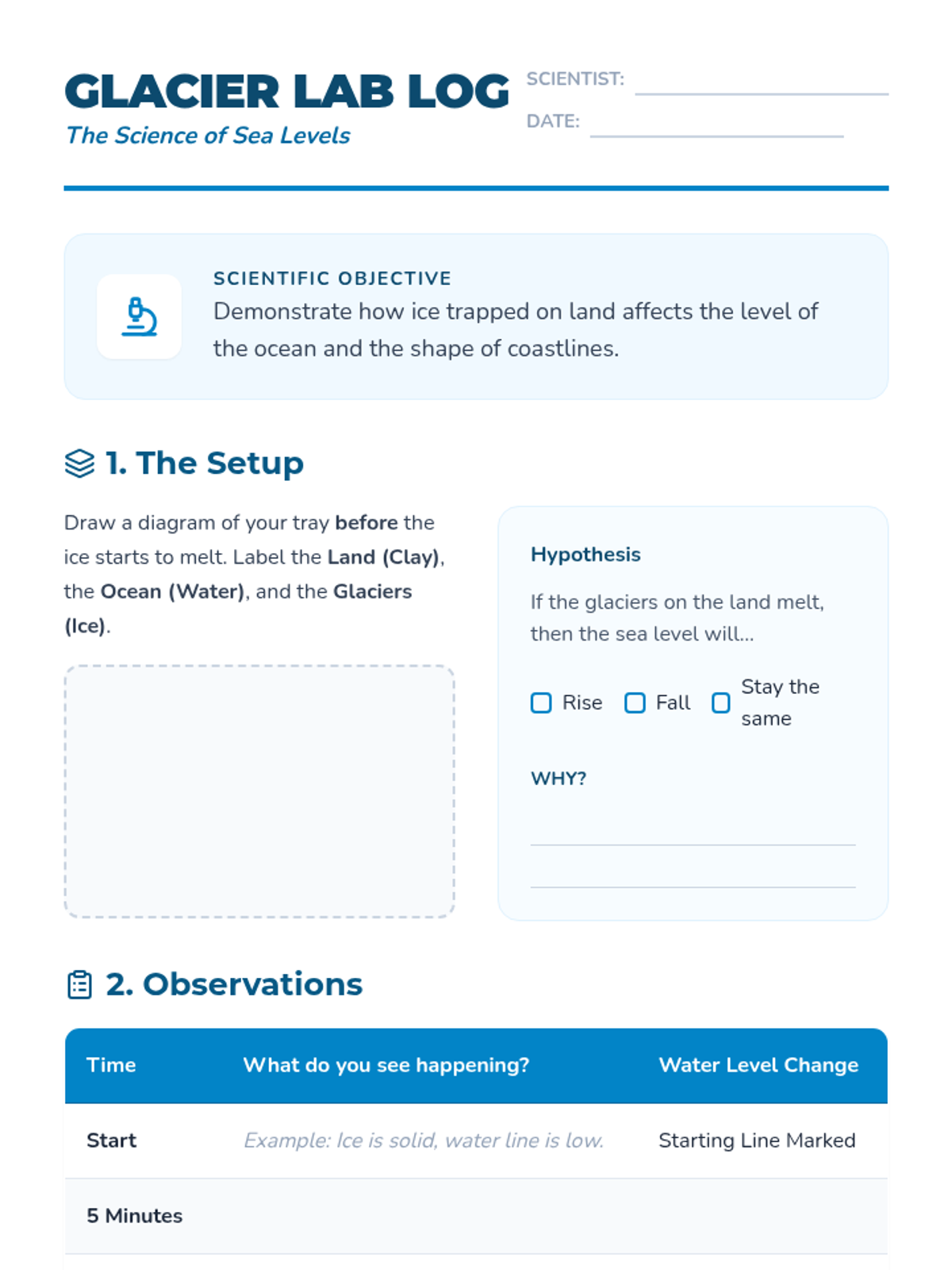 Students explore how glaciation (the formation and melting of glaciers) affects global sea levels. Through a hands-on lab and video analysis of the Beringia Land Bridge, students visualize how water trapped in ice changes the shape of our continents.