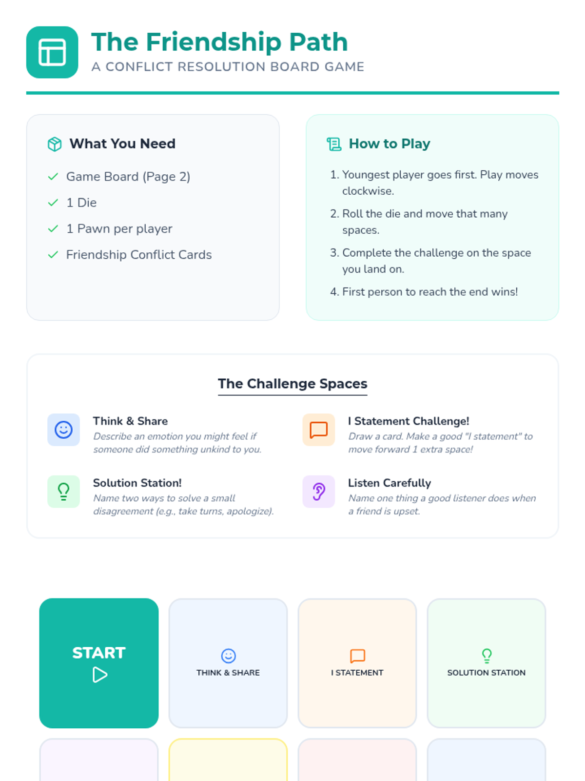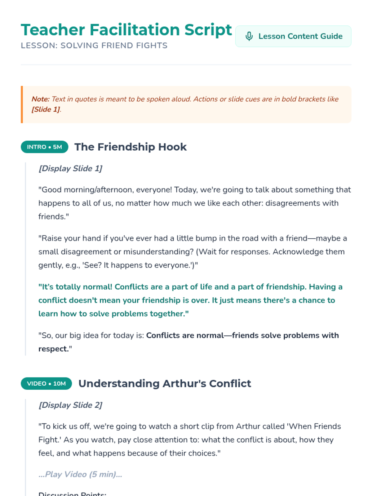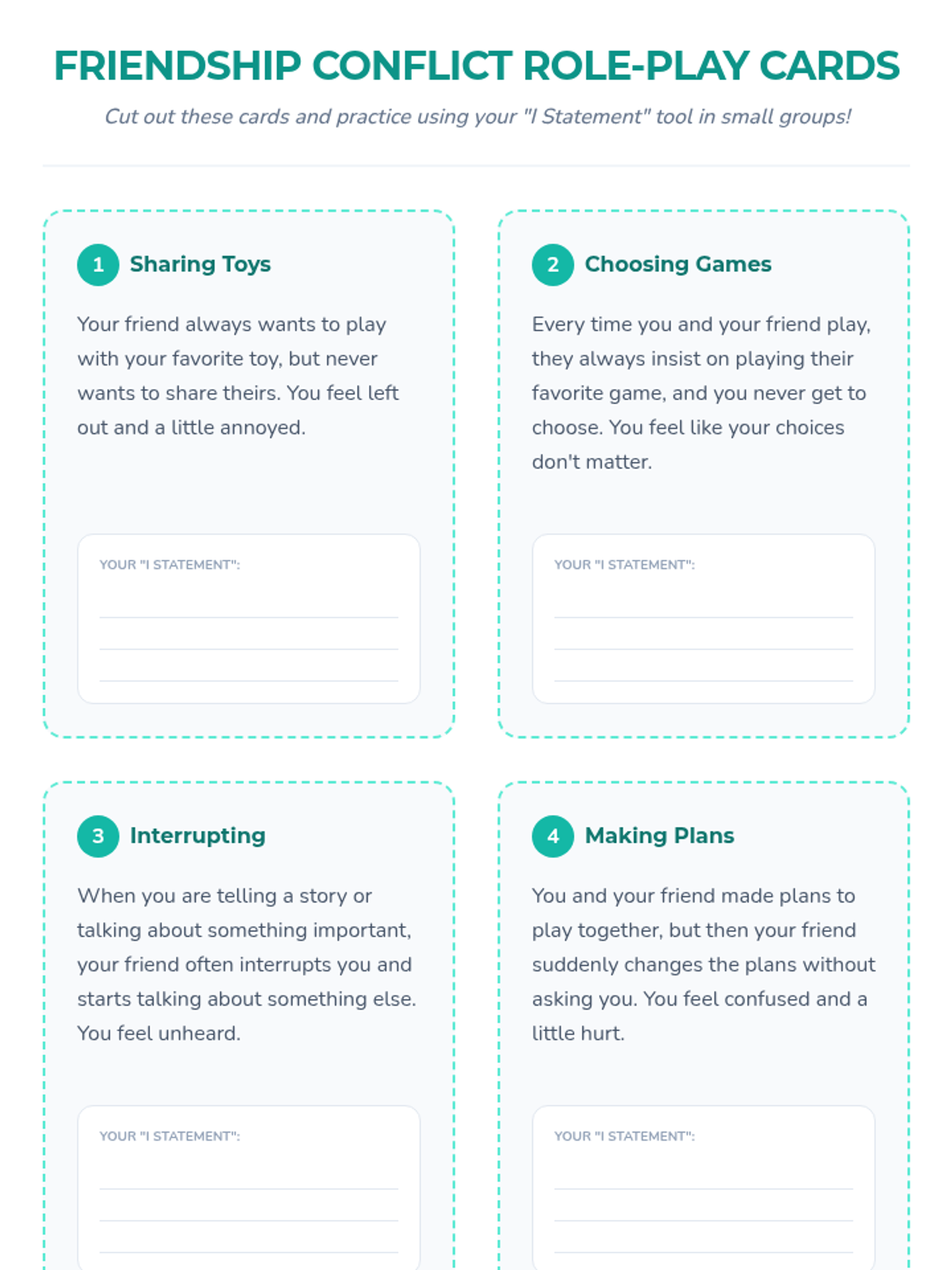 A 45-minute Tier 2 lesson for grades 3-6 focused on understanding conflict as a normal part of friendship and learning to use 'I statements' for respectful resolution.