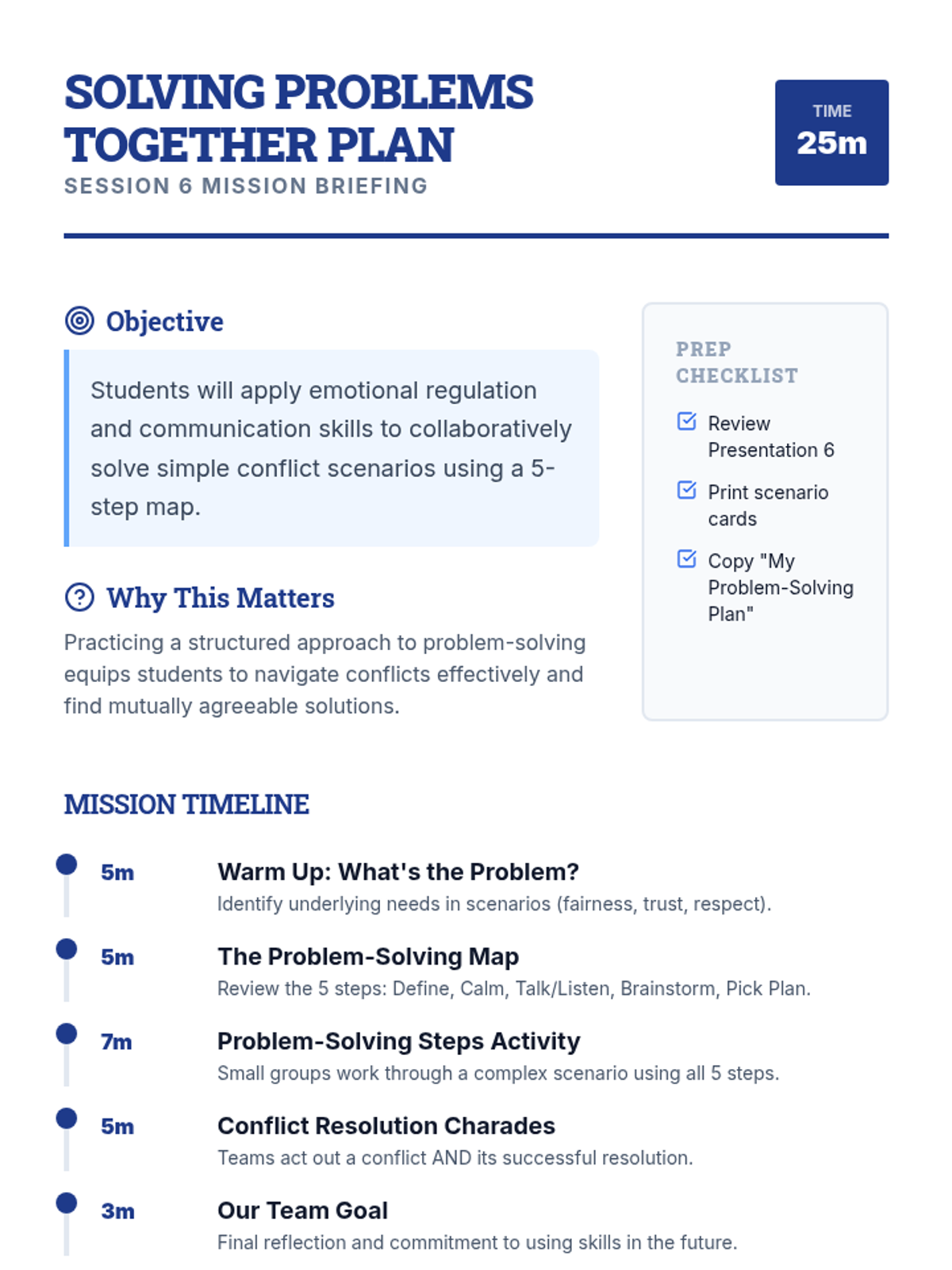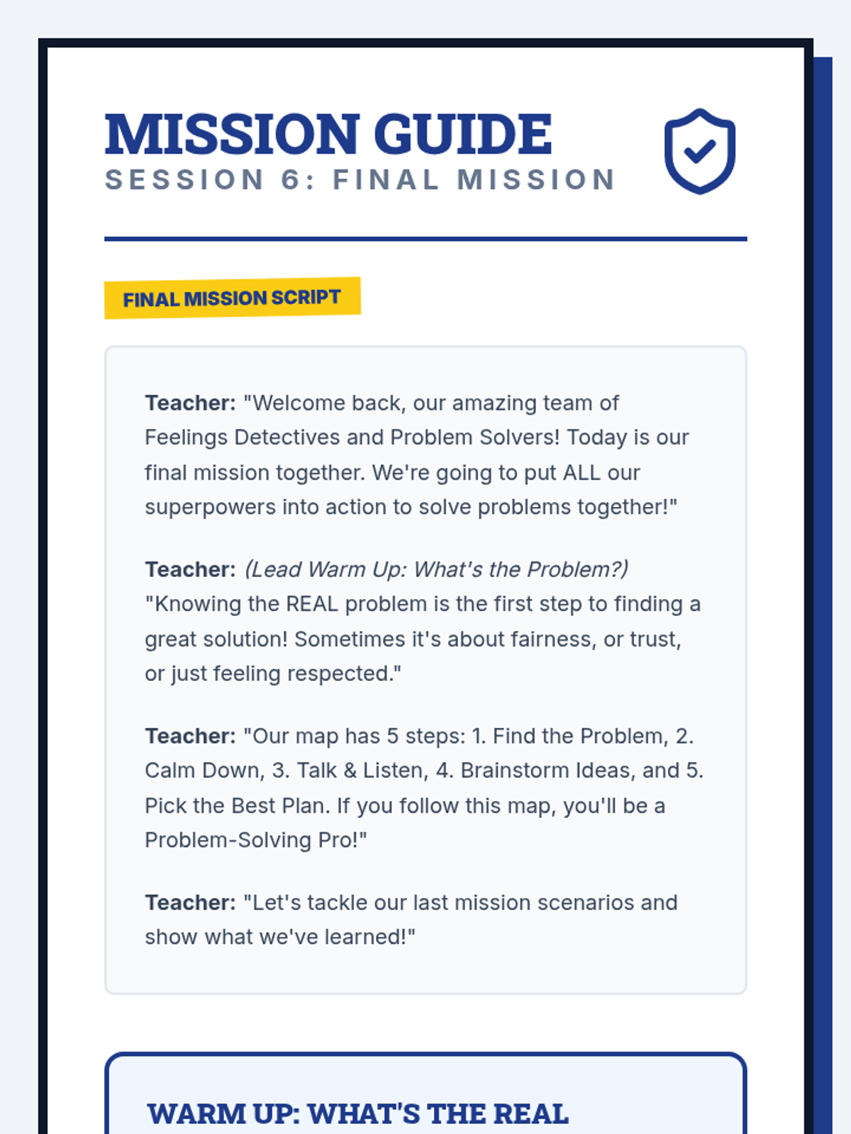 In the final mission, detectives apply all their skills to a 5-step problem-solving map to navigate conflicts fairly and collaboratively.