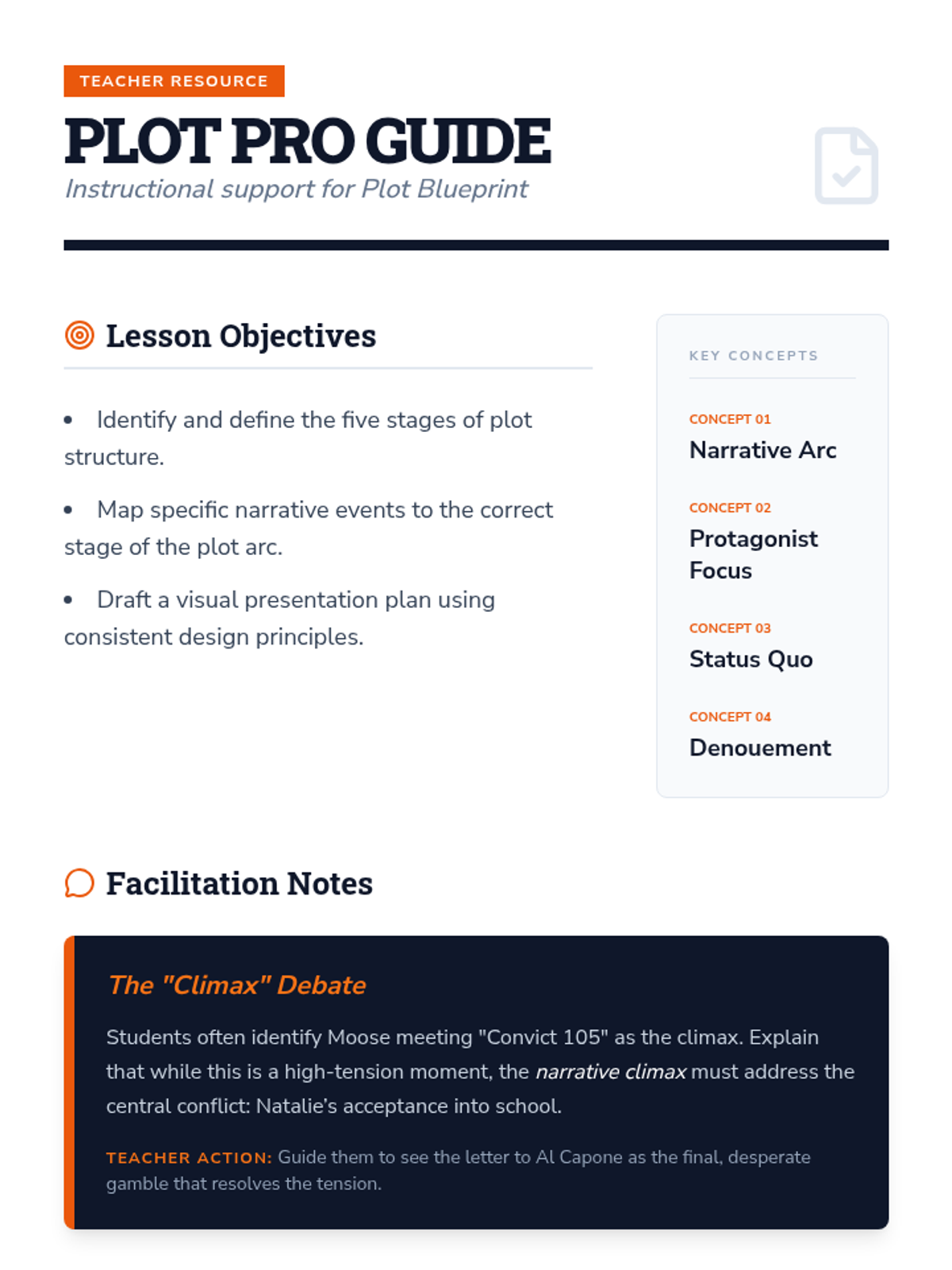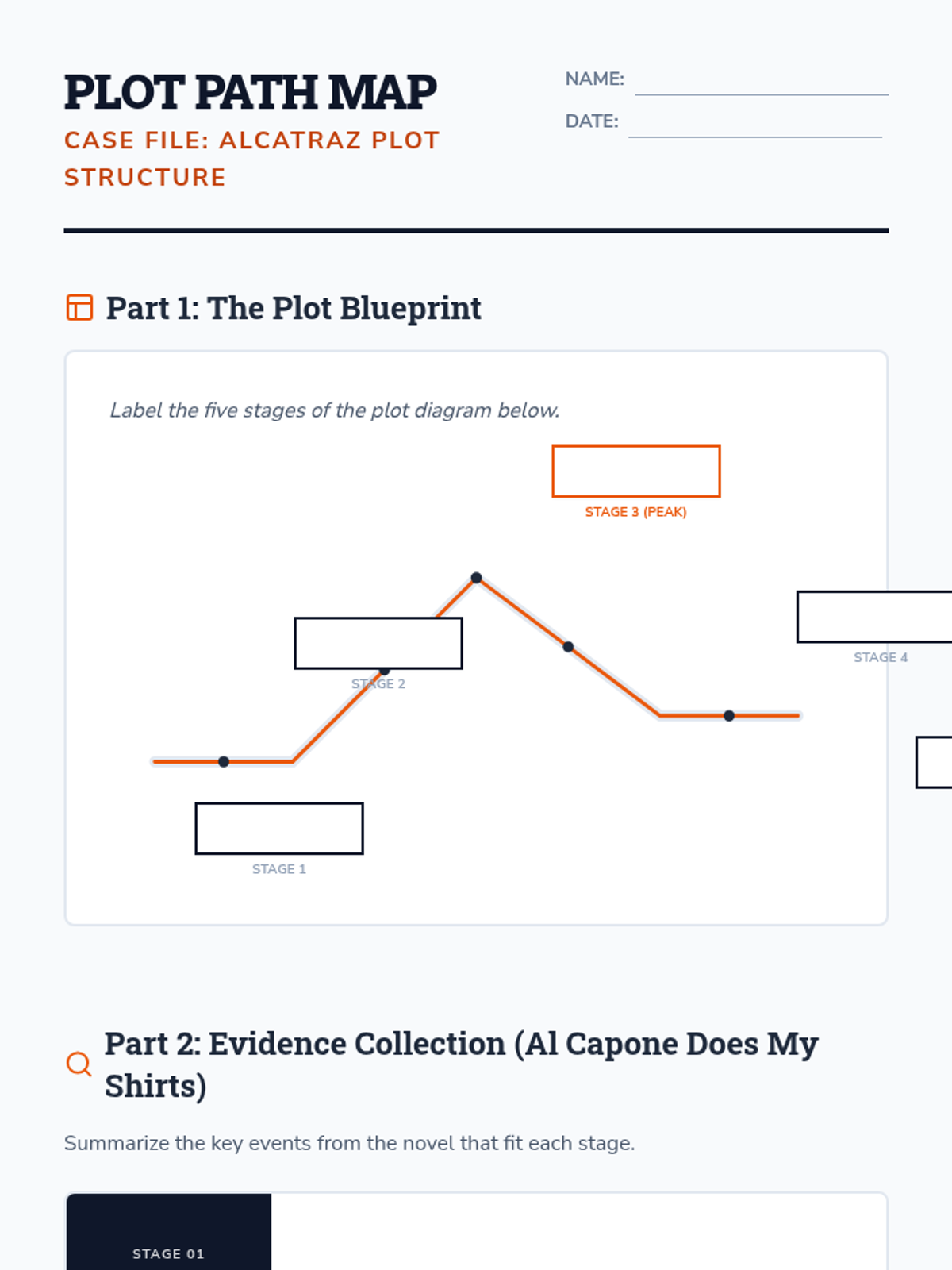 A lesson focusing on identifying and analyzing the five stages of plot structure using the novel Al Capone Does My Shirts as a primary example. Students explore the arc of Moose Flanagan's journey on Alcatraz.