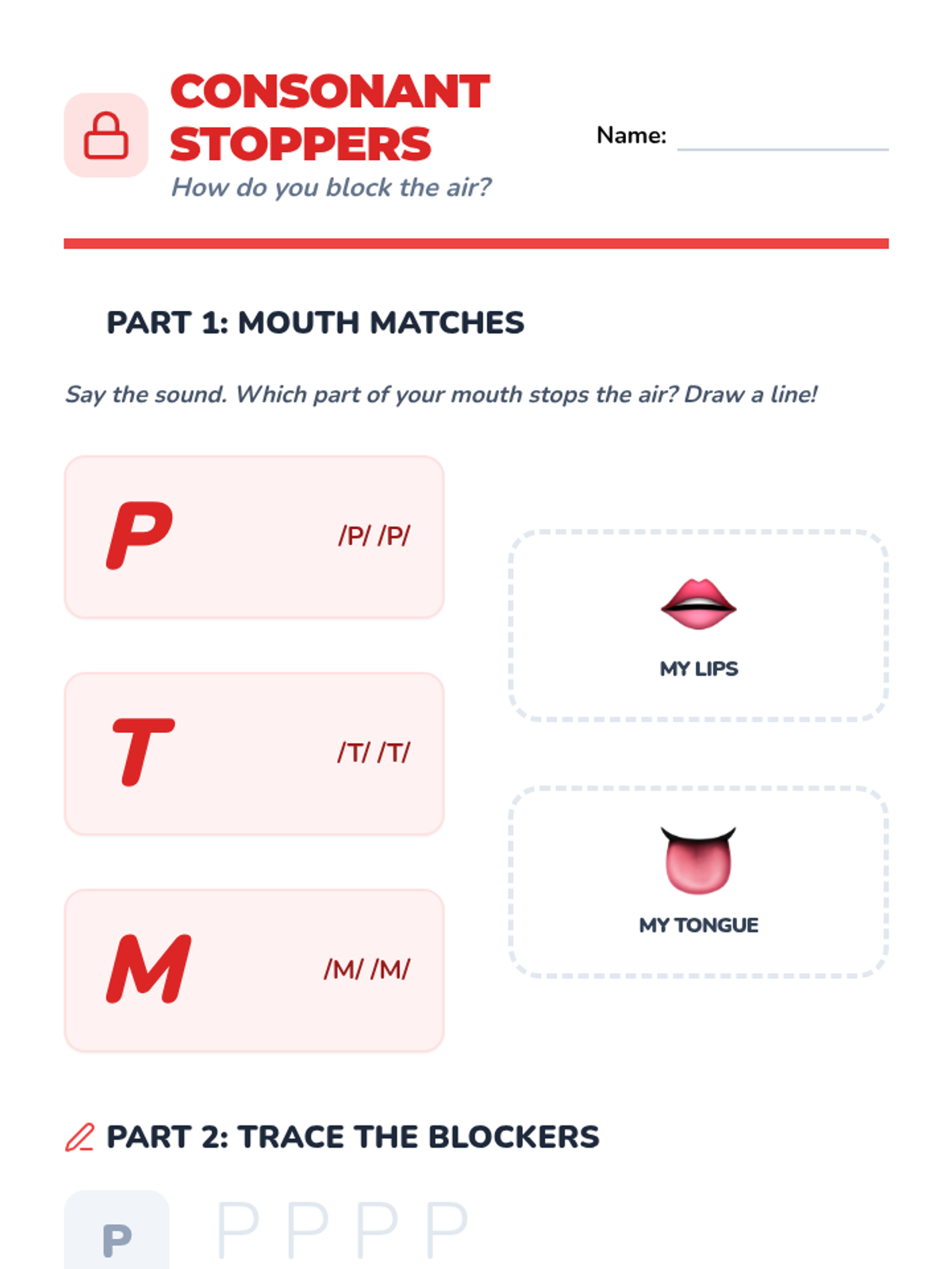 Students practice consonant sounds, focusing on how lips, teeth, and tongues block air to shape sounds.