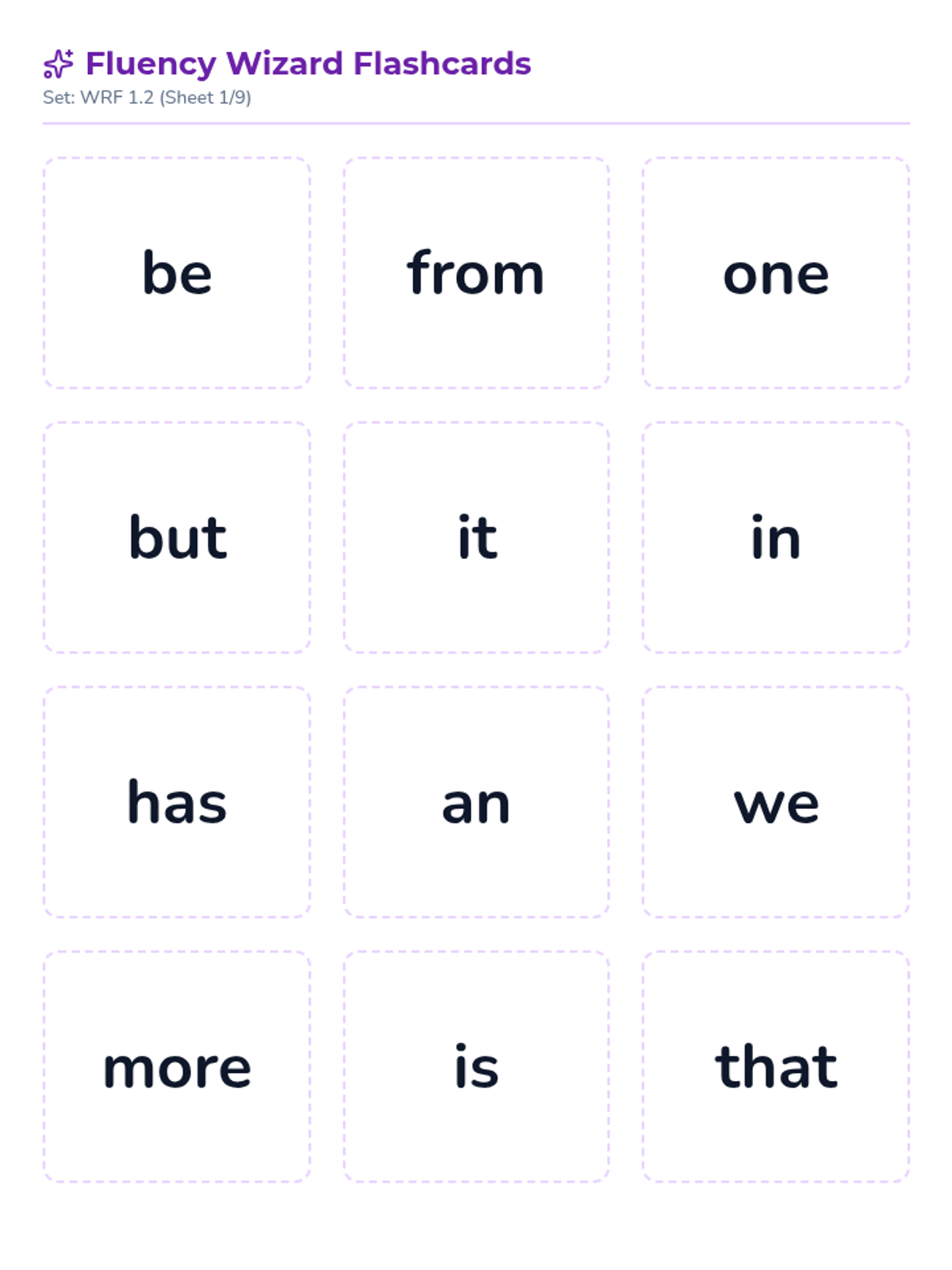 Intensive training on the second set of word reading fluency words. Students master high-frequency and decoding words from the DIBELS WRF 1.2 list.
