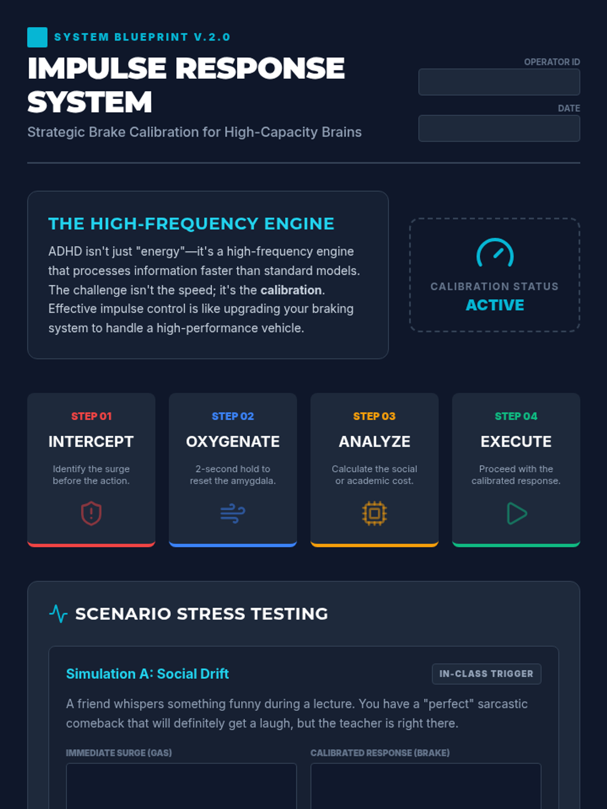 A therapy session focused on teaching impulse control strategies to students with ADHD using a 'Brain Brake' metaphor. The lesson includes a guided activity and portable visual reminders for the classroom.