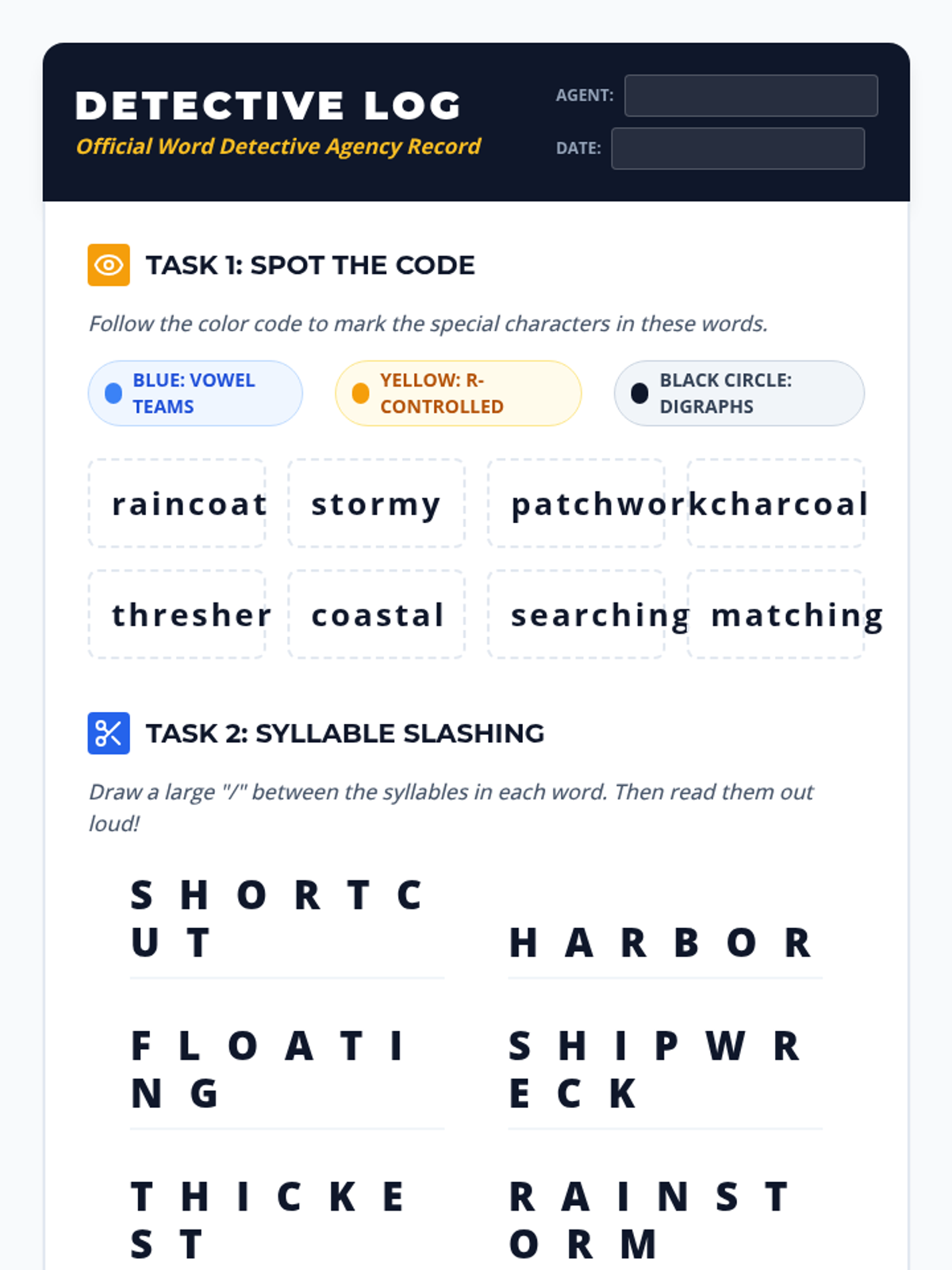 Focuses on compound words and a review of the silent 'e' (VCe) pattern. Students read about Sage and her stepmom packing a lunch for a trip to the pond, practicing words like 'backpack', 'laptop', 'milkshakes', and 'cupcakes'.