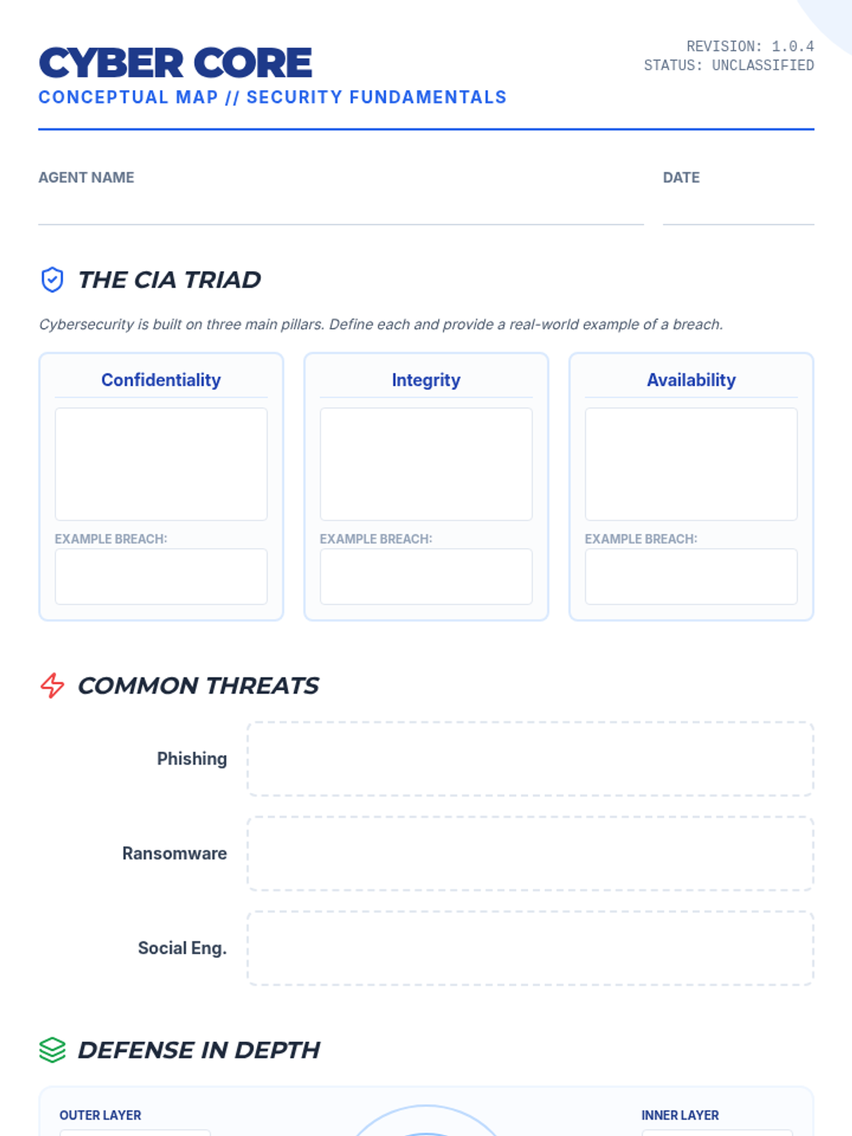 An introductory exploration of cybersecurity fundamentals for middle and high school students, covering the CIA triad, common threats, and defensive strategies through hands-on projects and conceptual mapping.