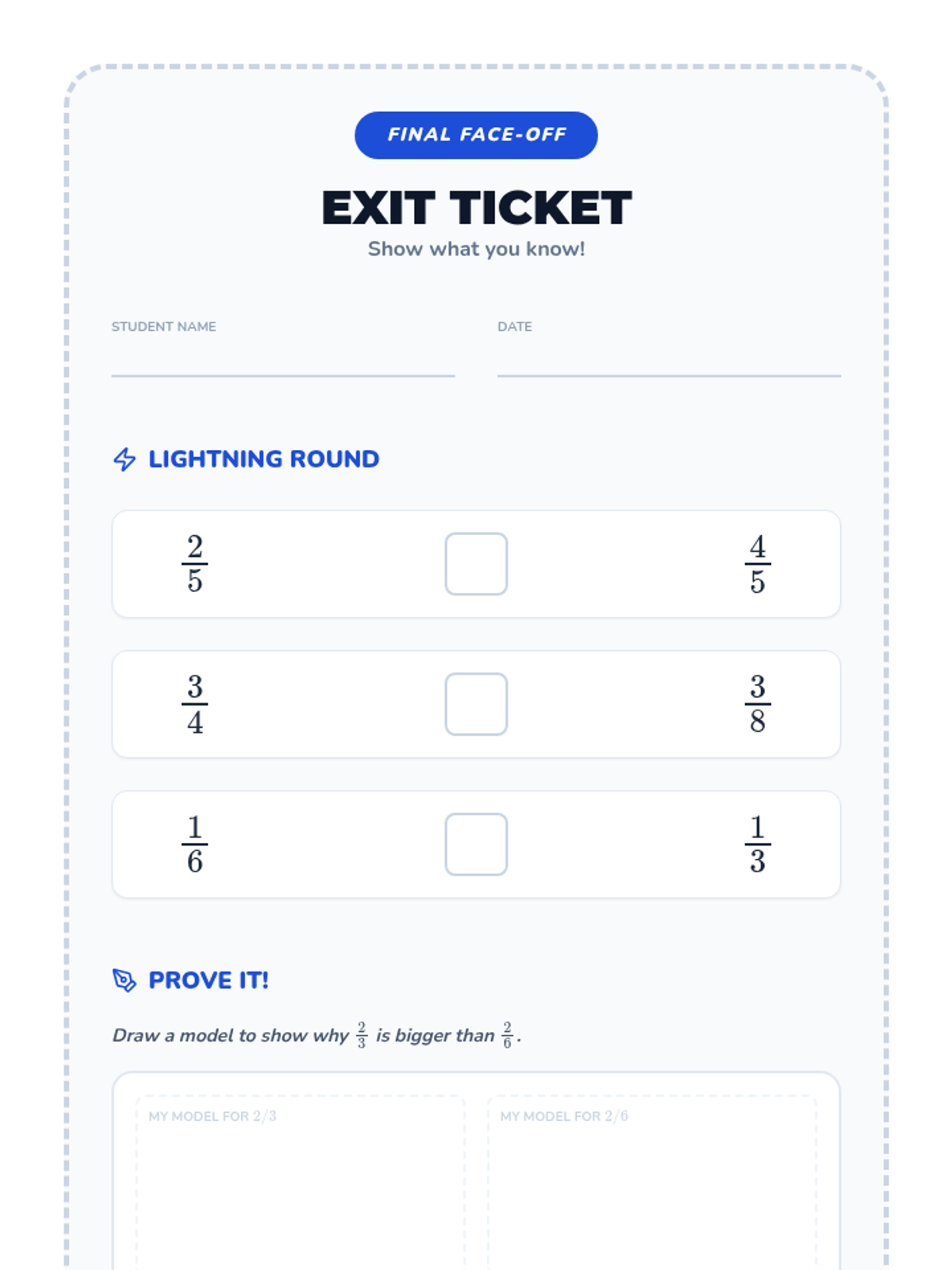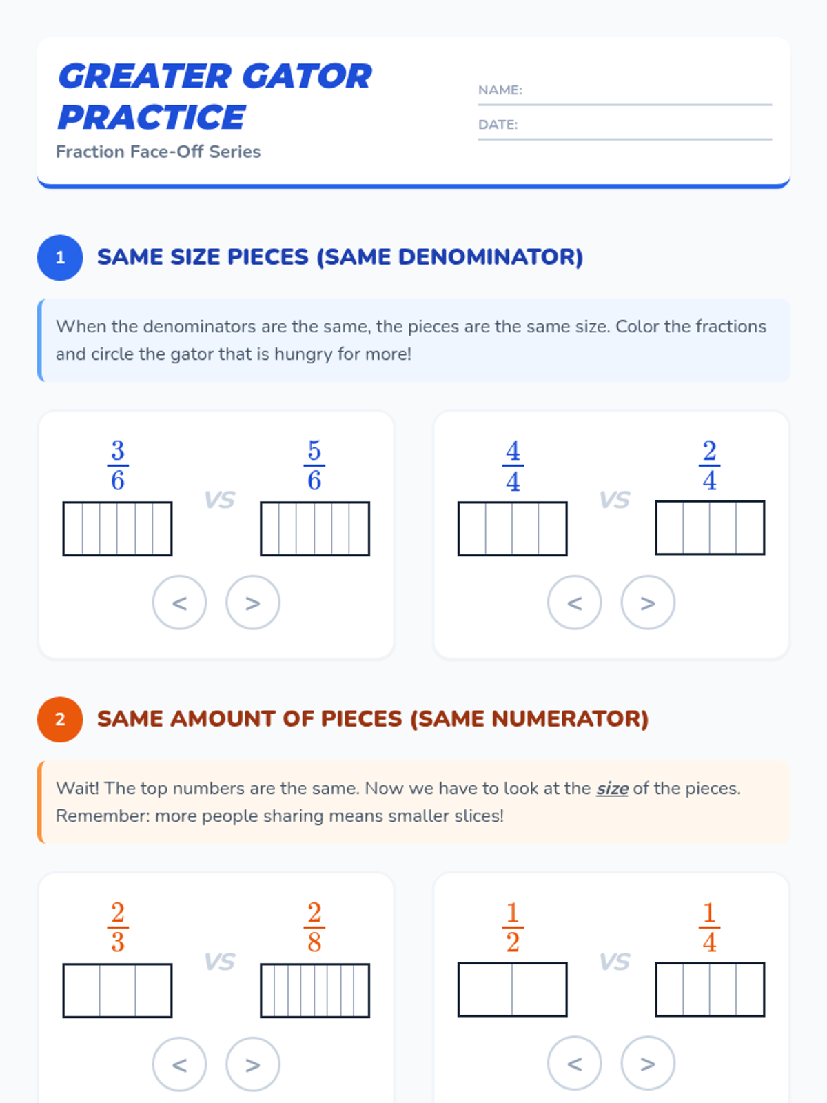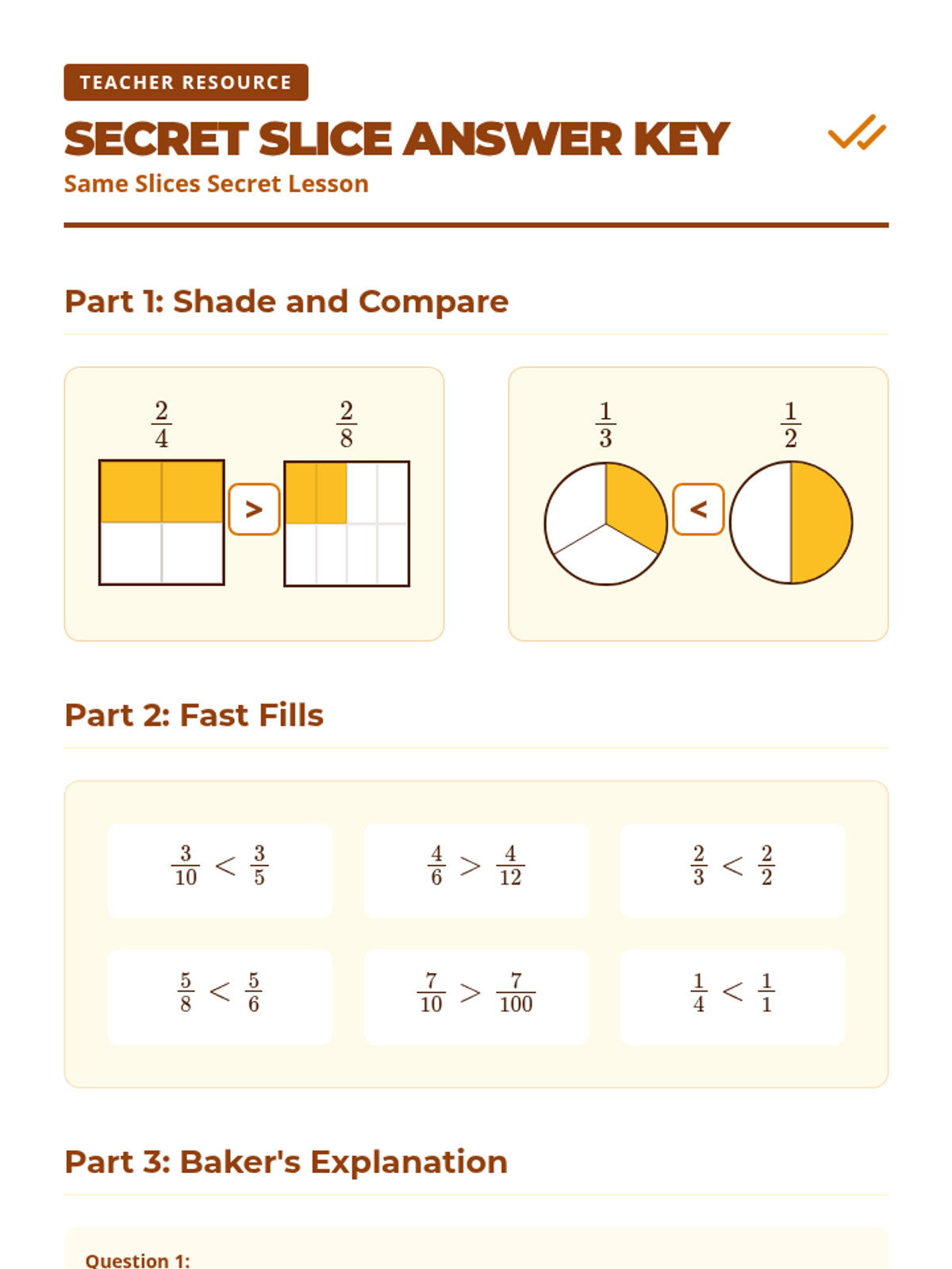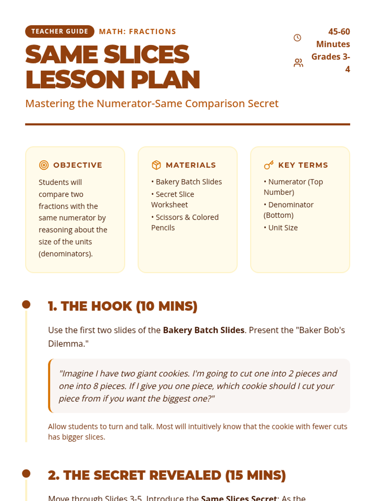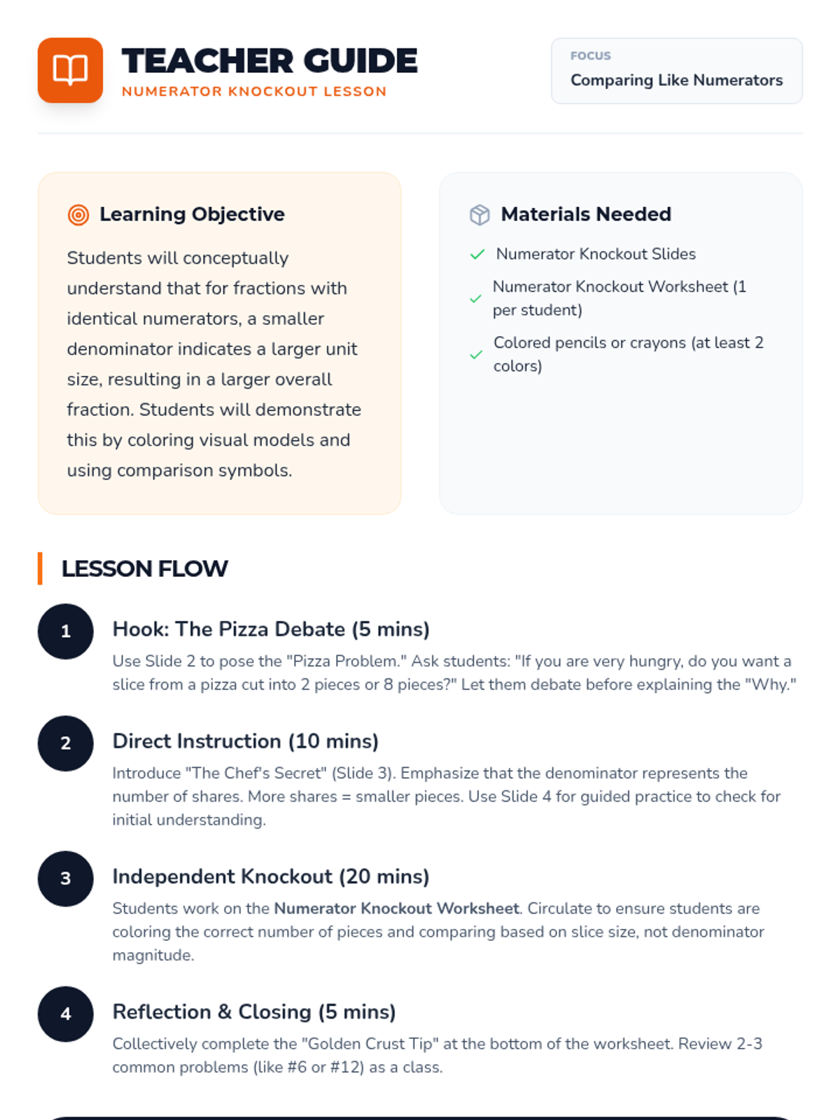 A fast-paced, collaborative lesson where students compare fractions using a food truck theme. Students learn to compare fractions with either the same numerator or the same denominator using visual models and logical reasoning.