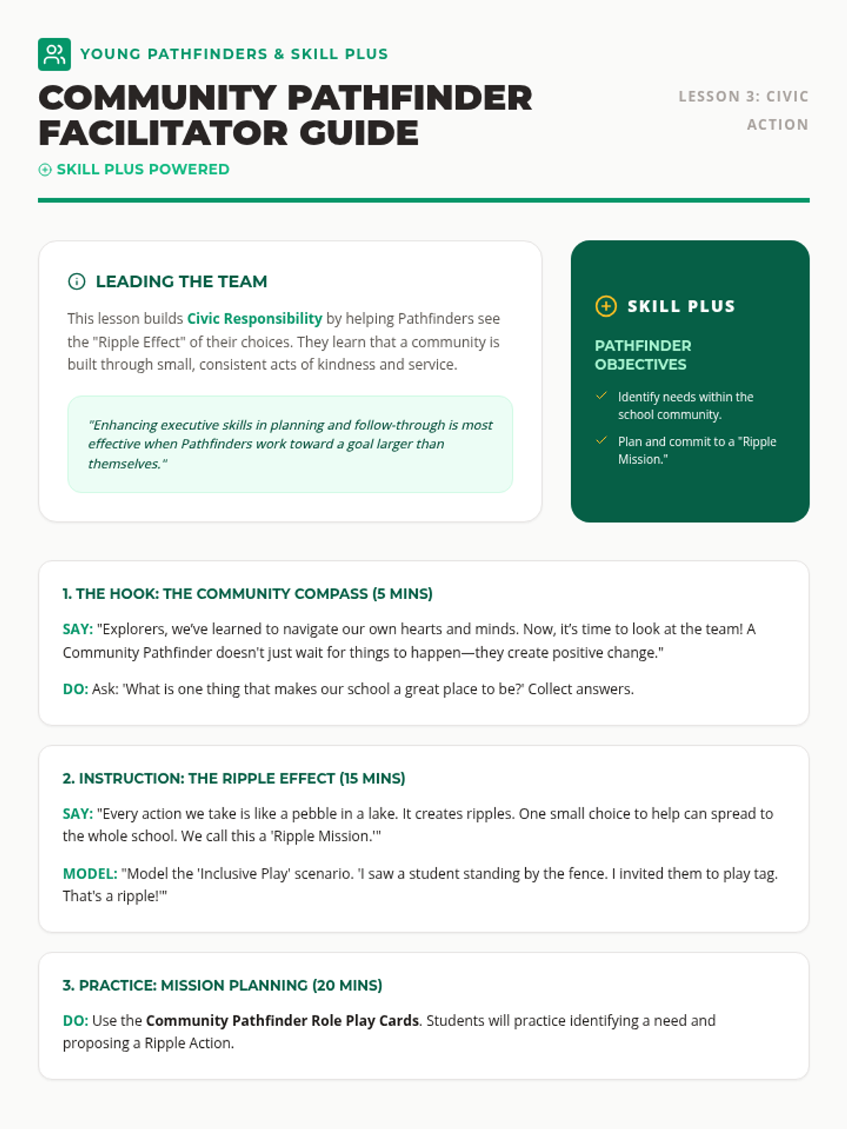 An introductory lesson to the Young Pathfinders Life Skills Program, providing parents and students with a clear roadmap of the social and emotional journey ahead, powered by Skill Plus.