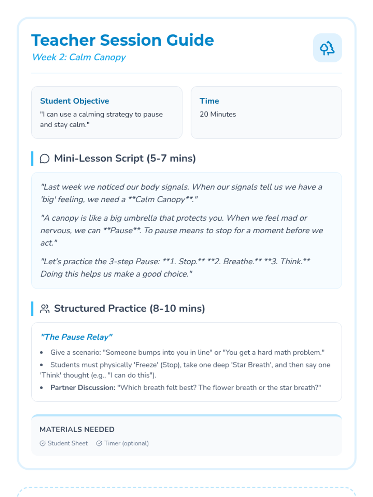 A small-group counseling lesson focused on teaching K-5 students self-regulation techniques and building a personalized calm-down toolkit. Students explore feelings through a garden-themed check-in and practice various breathing exercises.