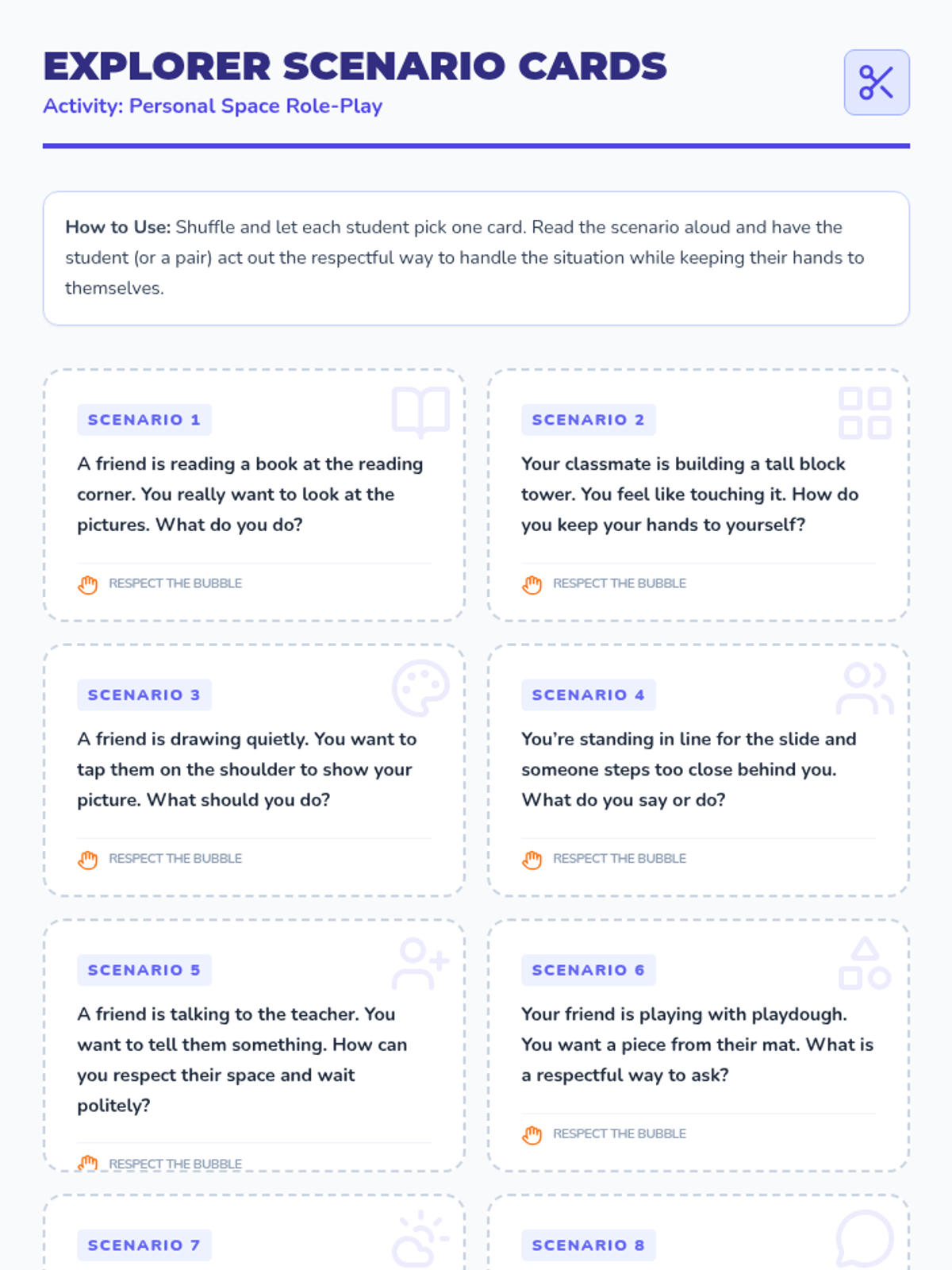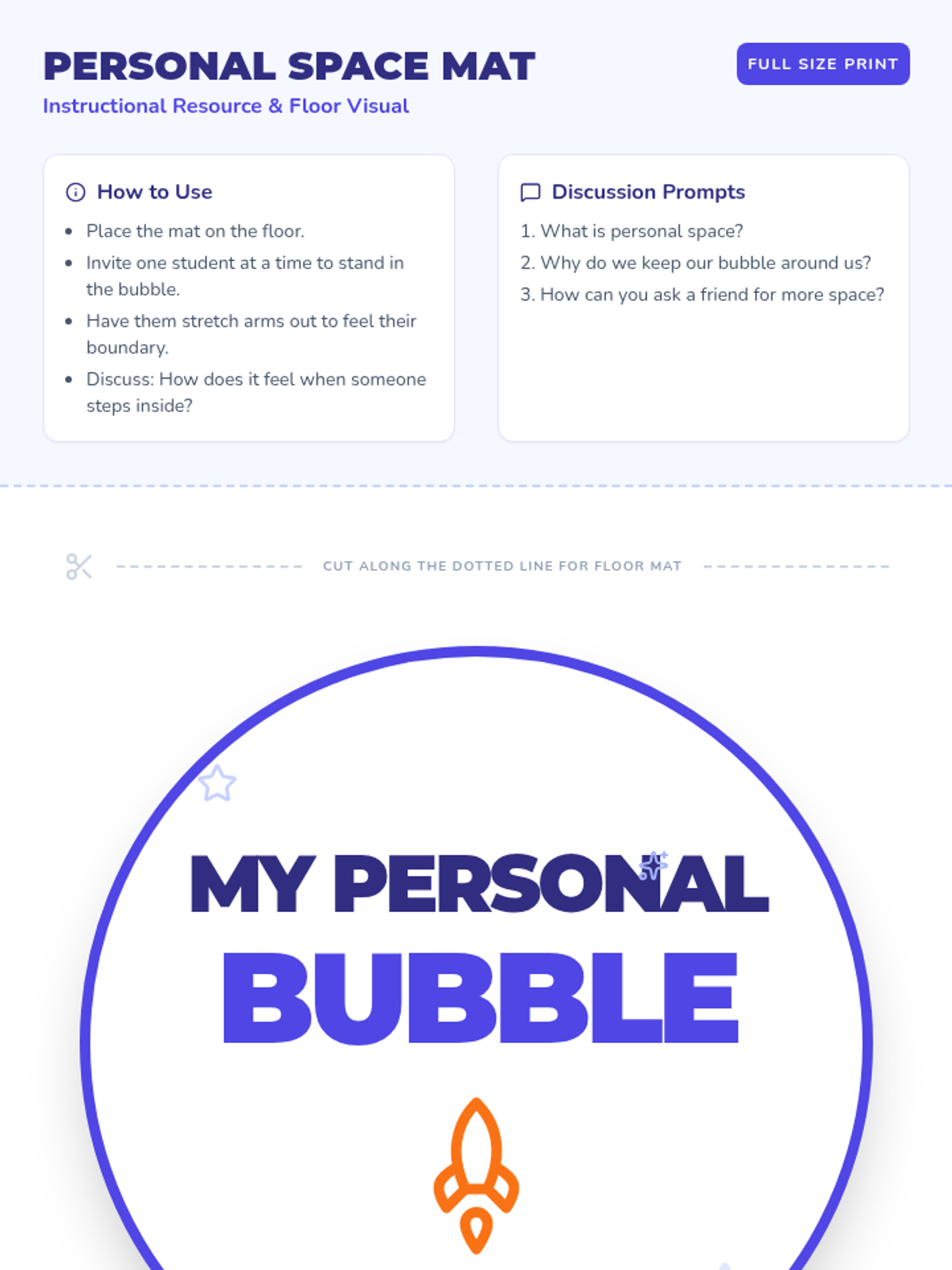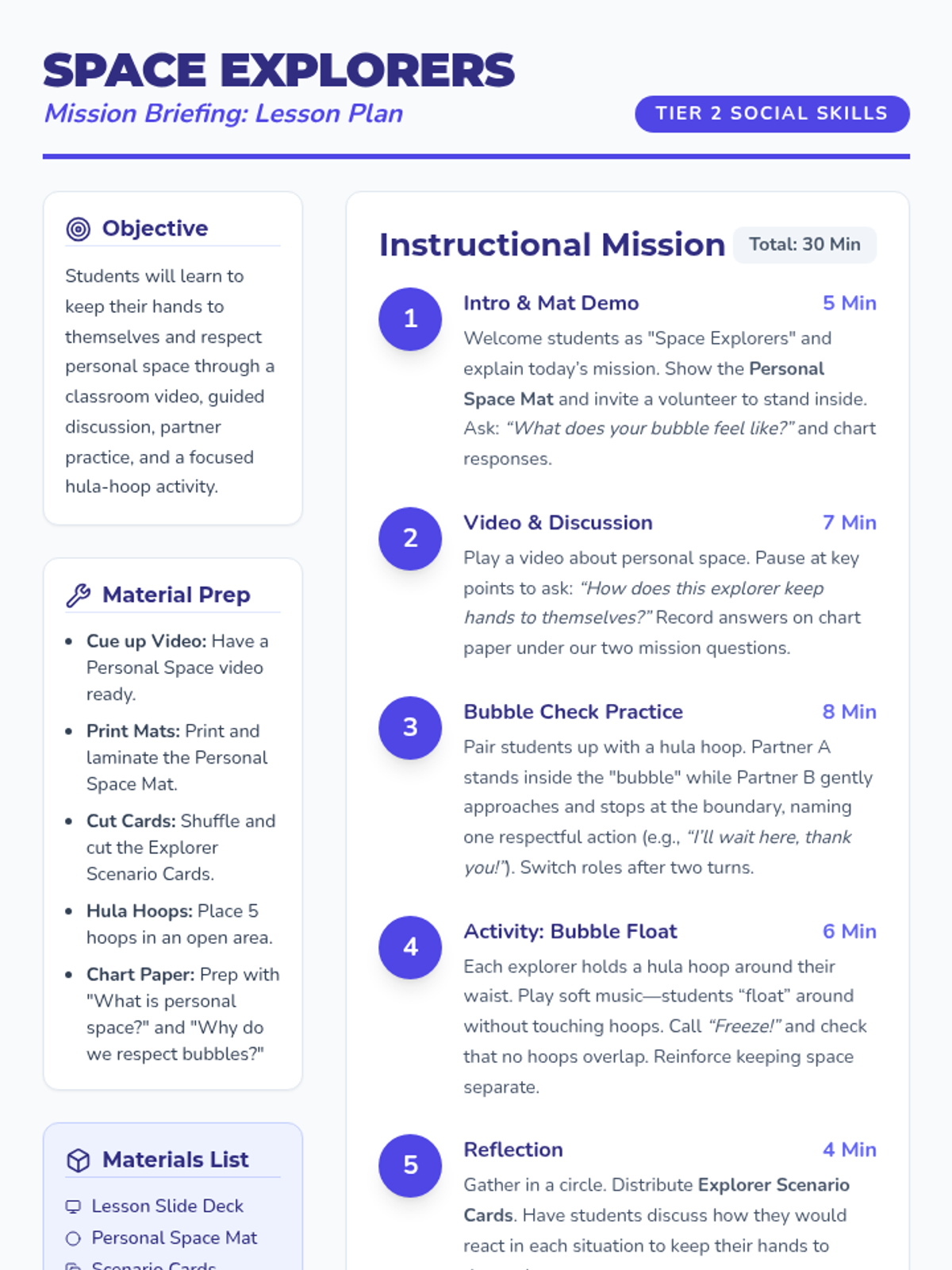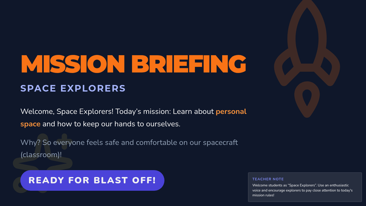 A 30-minute Tier 2 social skills lesson for kindergarteners to learn about personal space and keeping hands to themselves through an outer-space-themed mission.