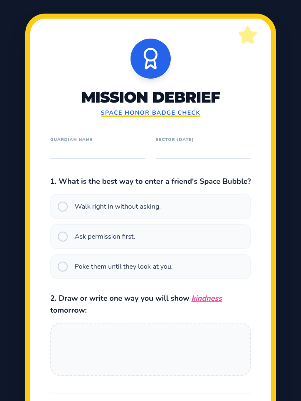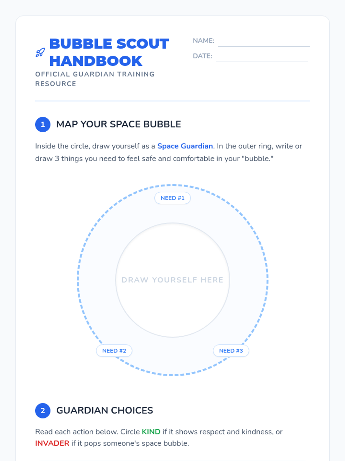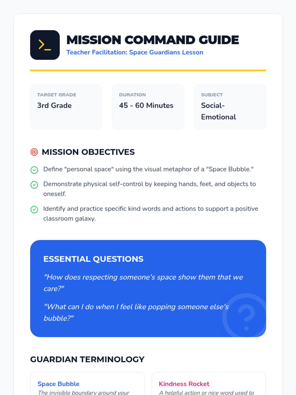 A lesson focused on social-emotional learning for 3rd graders, teaching the importance of personal space, physical self-control (keeping hands to self), and the impact of kindness on the classroom community.