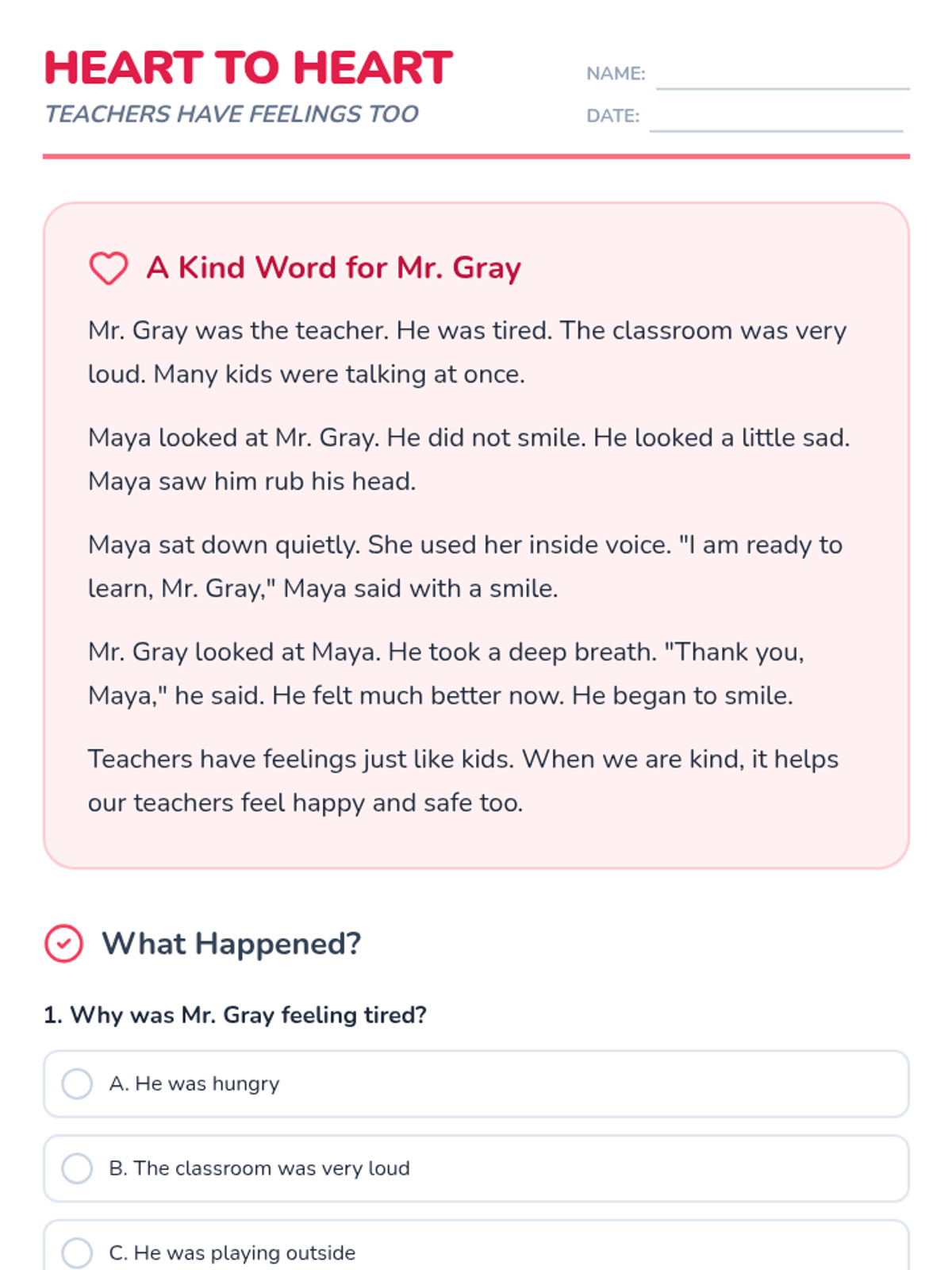 A social-emotional lesson helping students understand that teachers have feelings and how to build positive relationships through kindness and empathy.