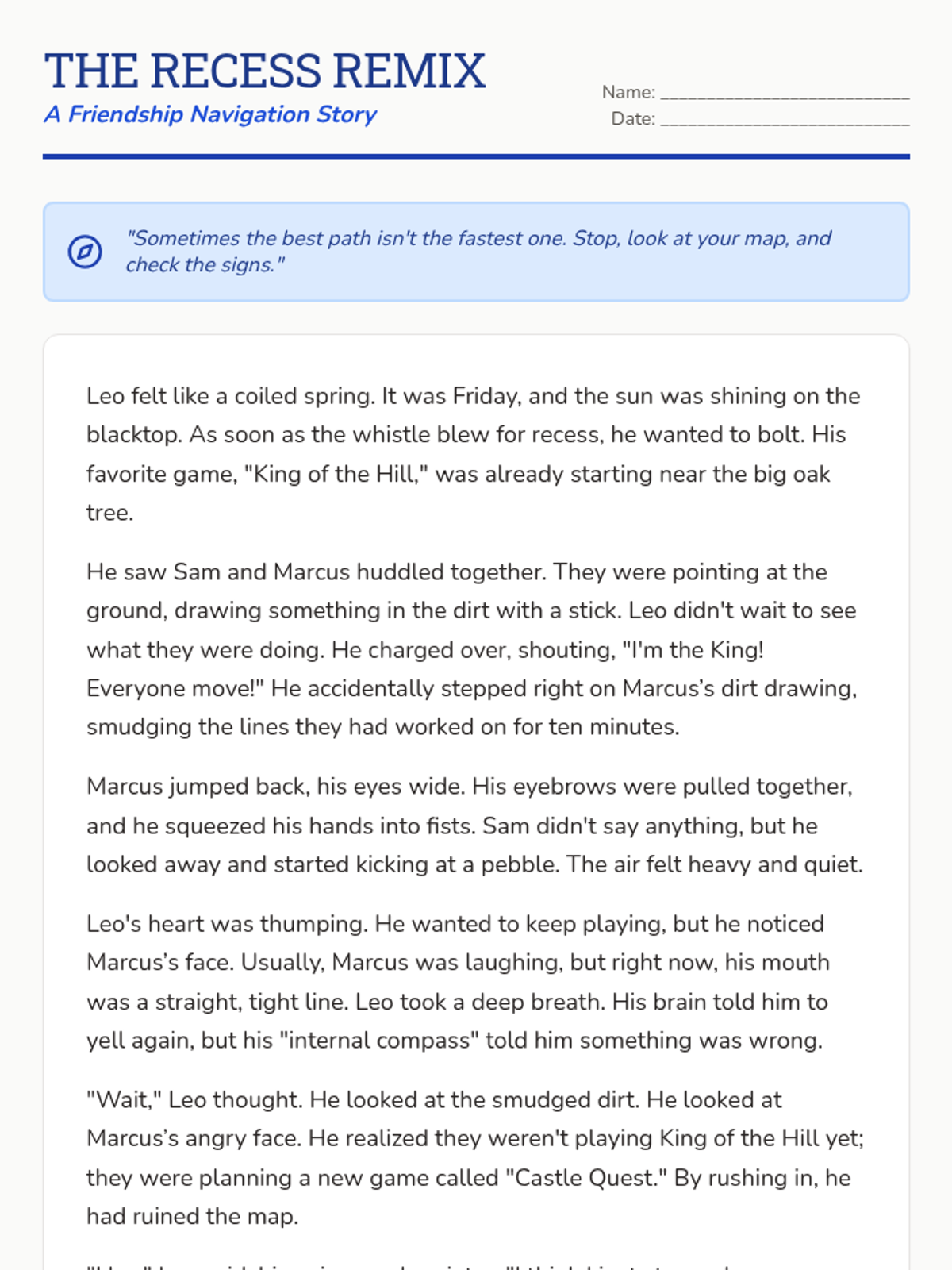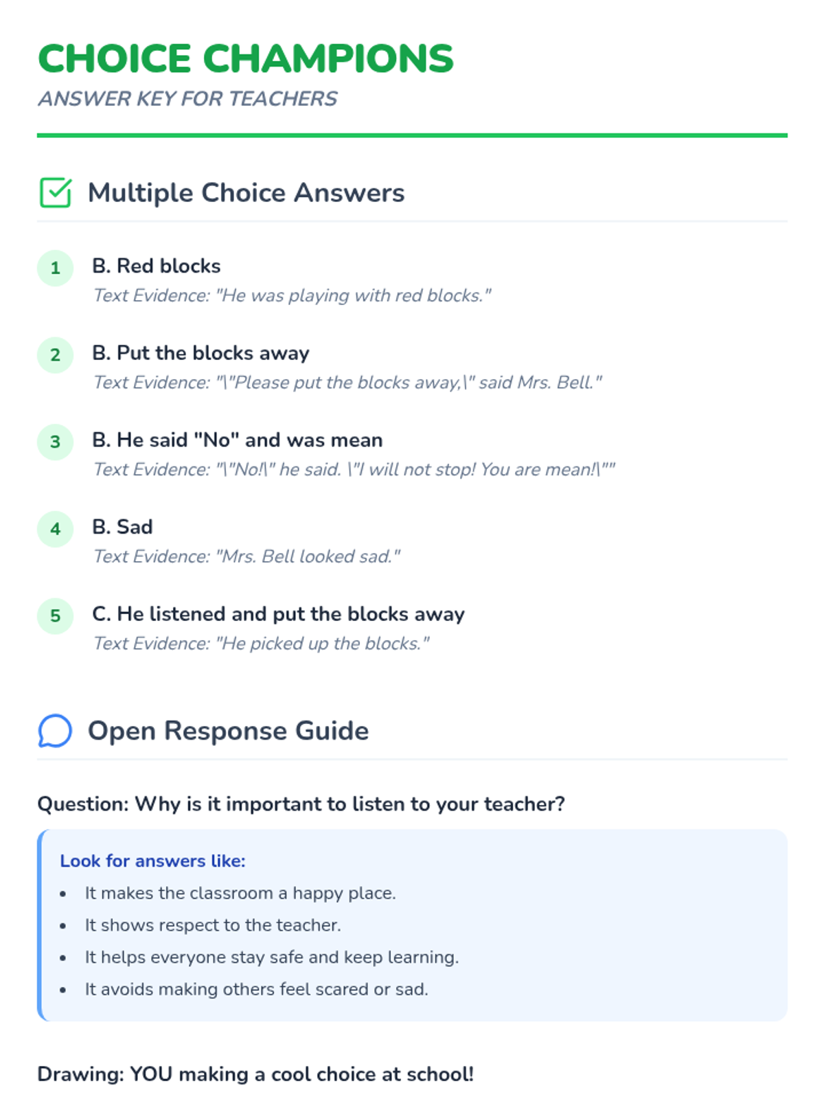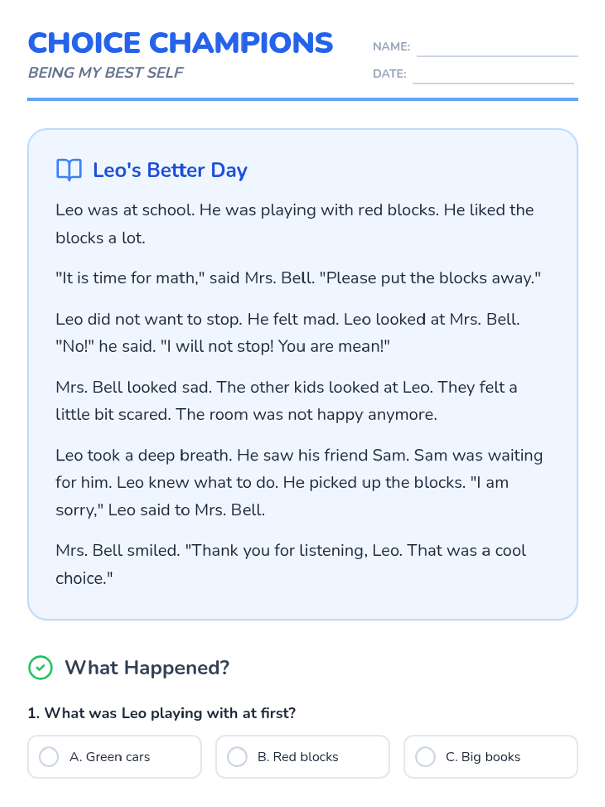 A social-emotional learning lesson focused on following directions and respectful communication in the classroom through a relatable reading passage.