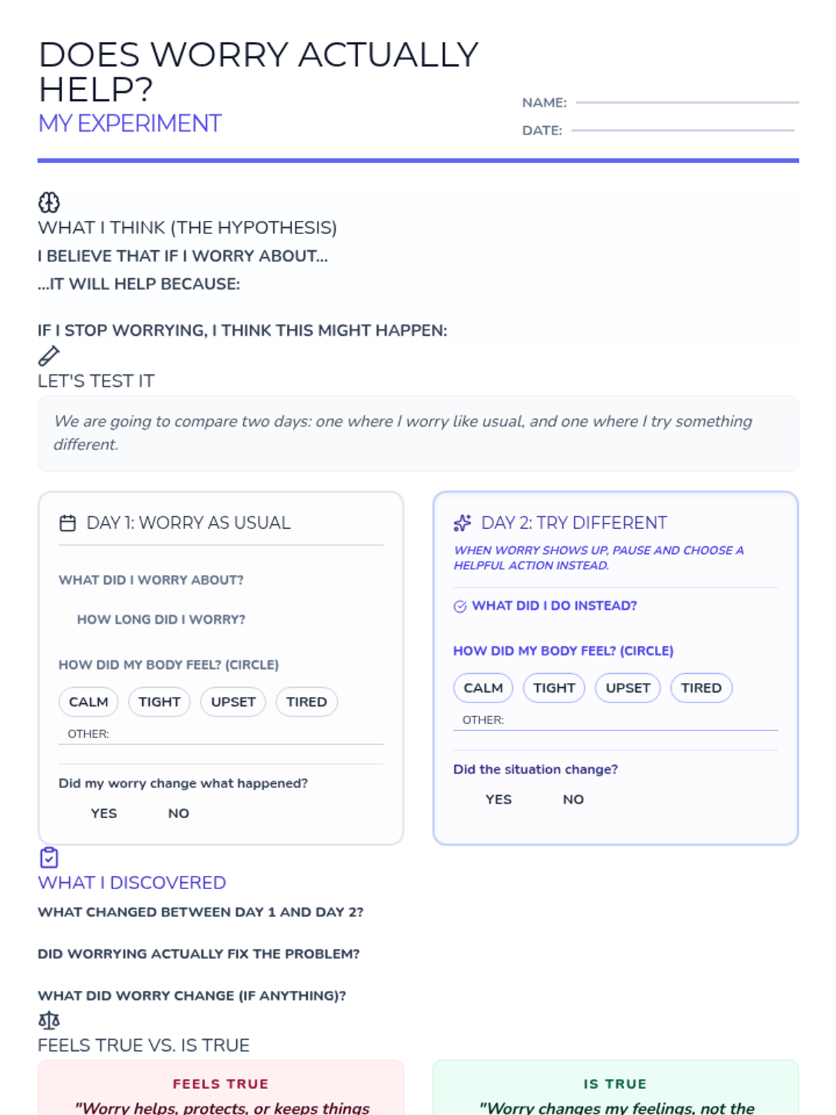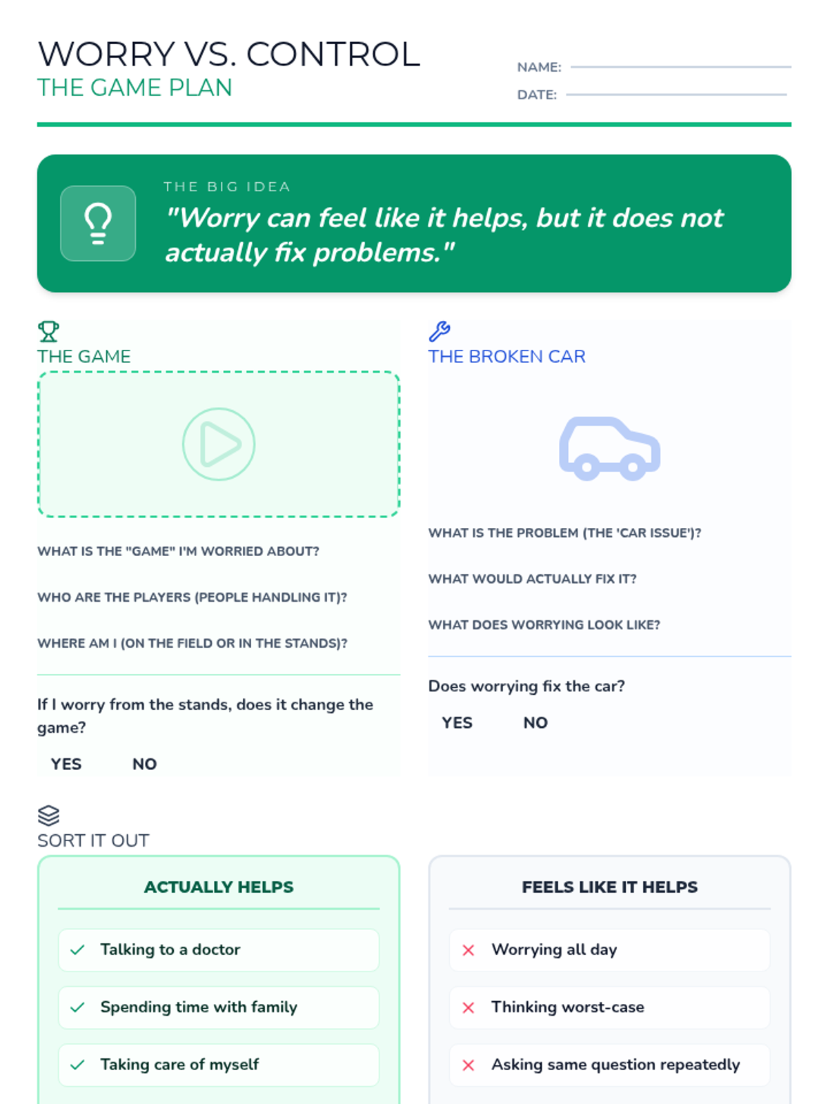 A collection of materials designed to help upper elementary and middle school students understand the nature of worry, differentiate it from control, and practice effective action-oriented strategies.