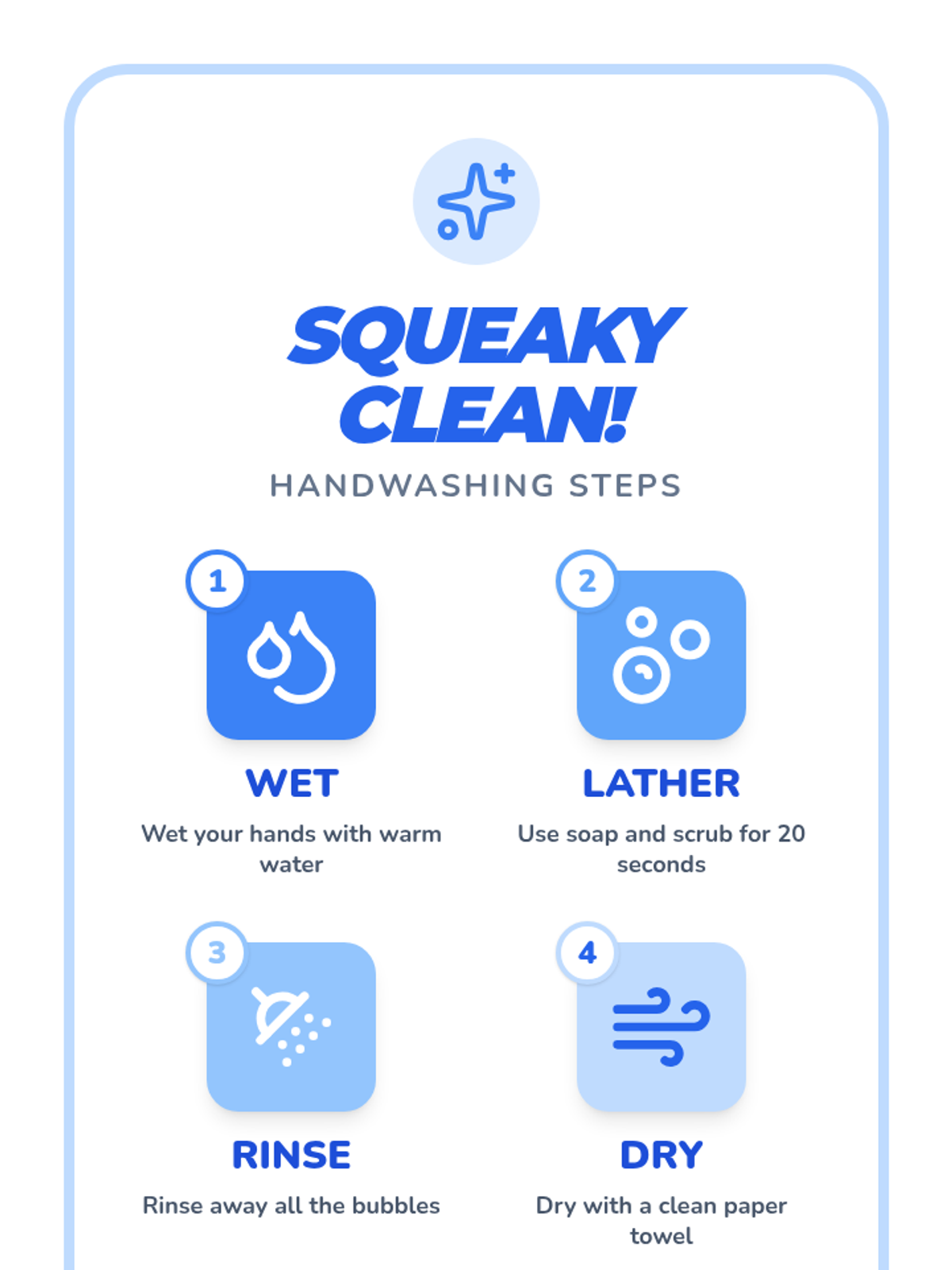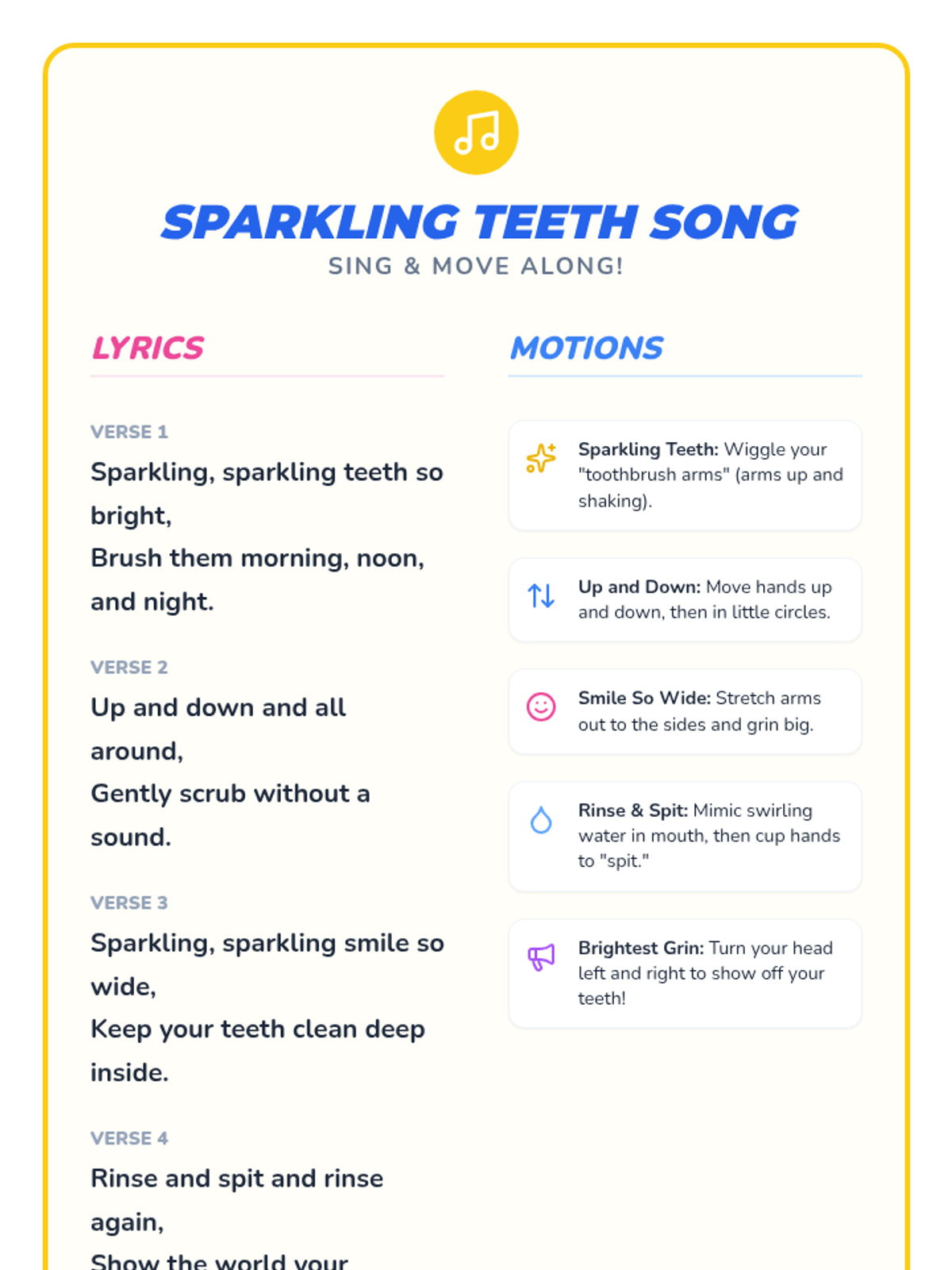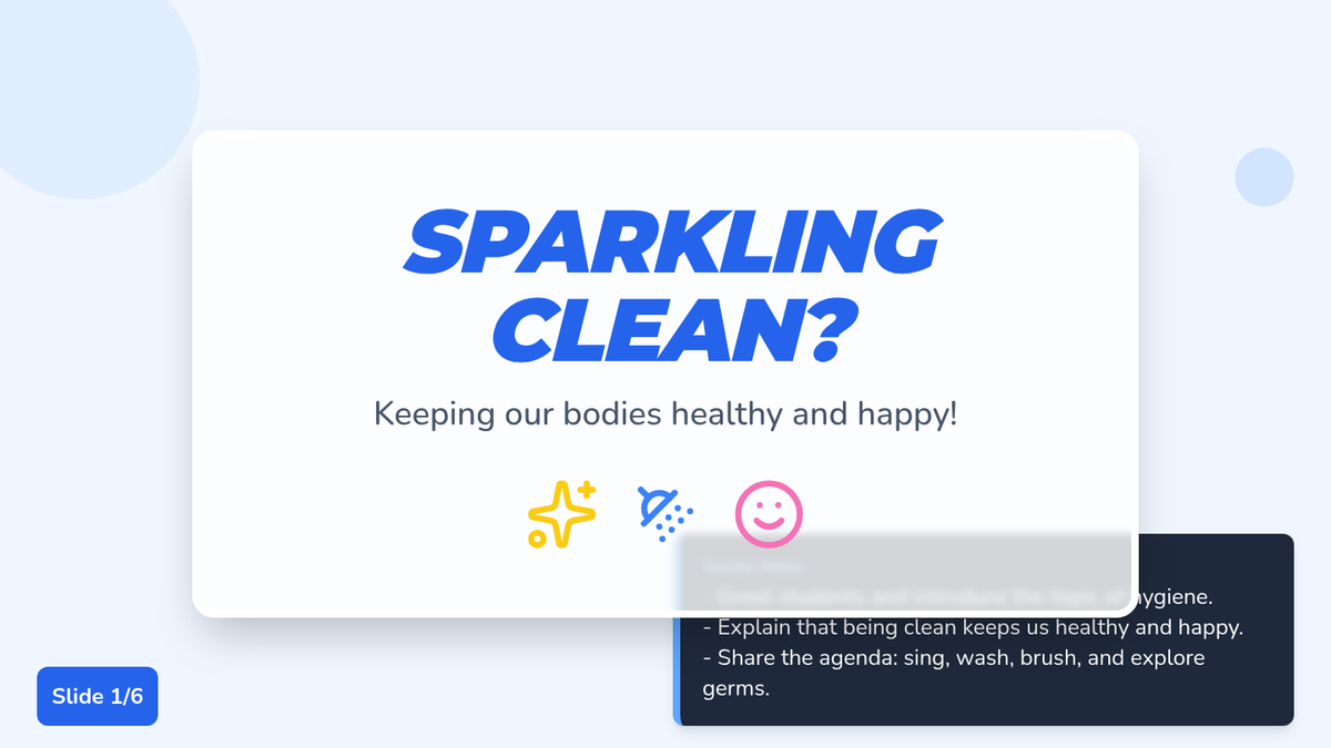 A 30-minute kindergarten lesson teaching handwashing, tooth brushing, and germ awareness through songs, demonstrations, and a hands-on glitter activity.
