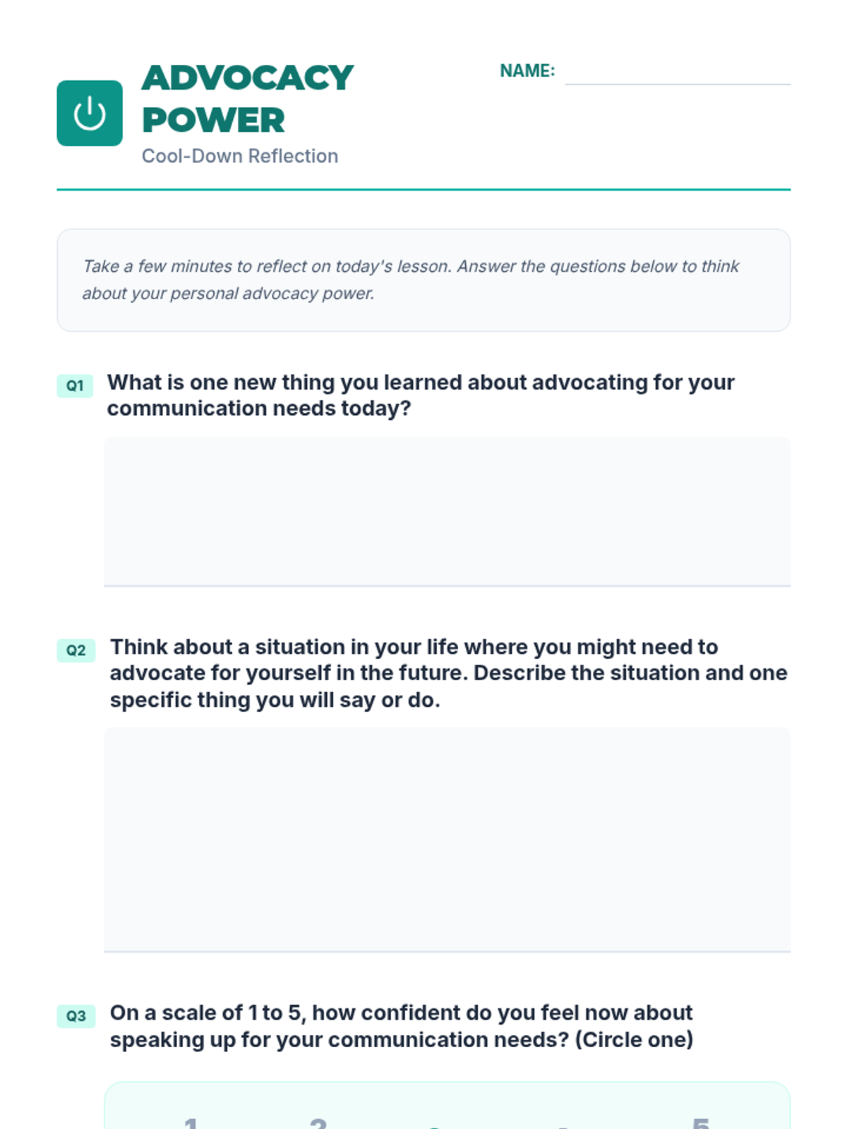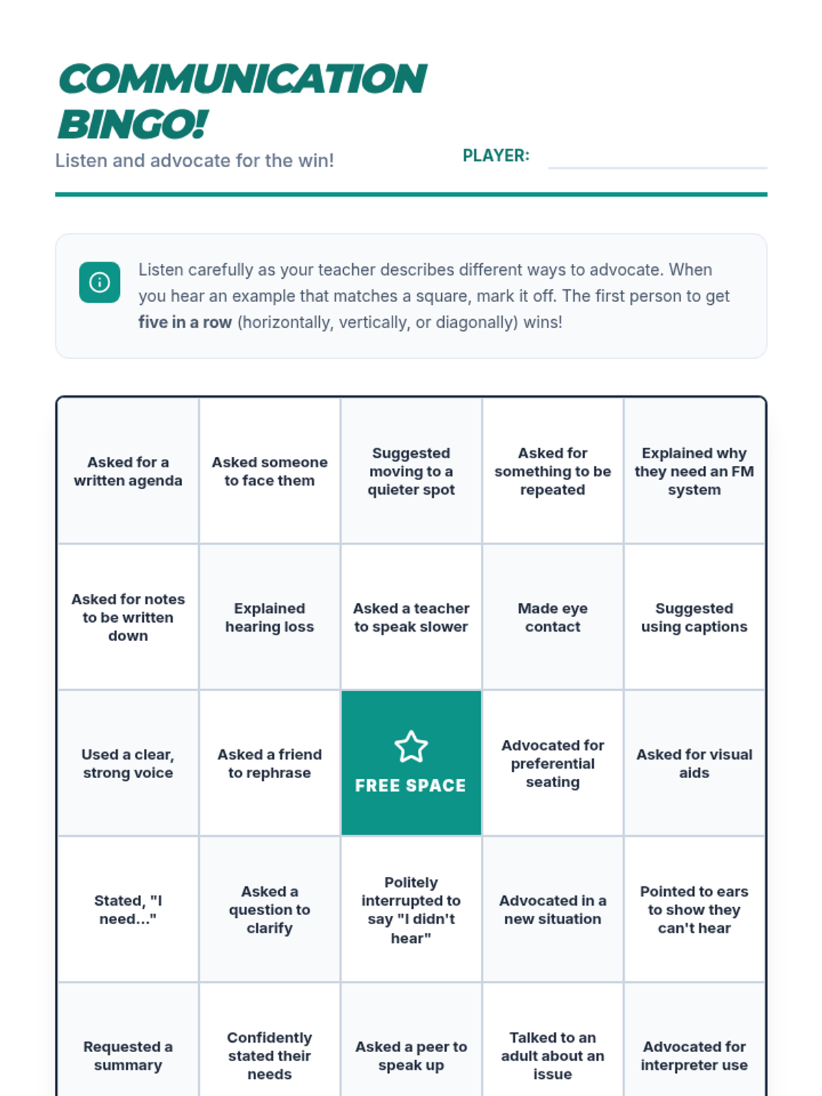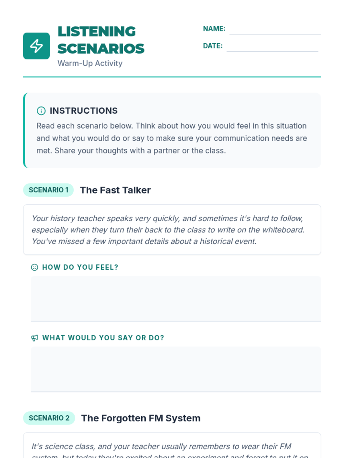 A 30-minute Tier 2 lesson for middle school Deaf/Hard of Hearing students focused on identifying communication needs and practicing effective self-advocacy strategies.
