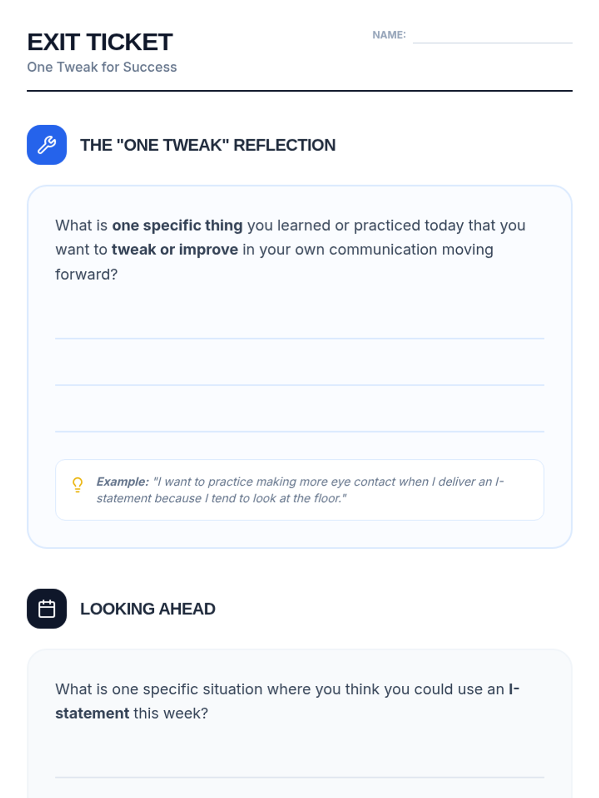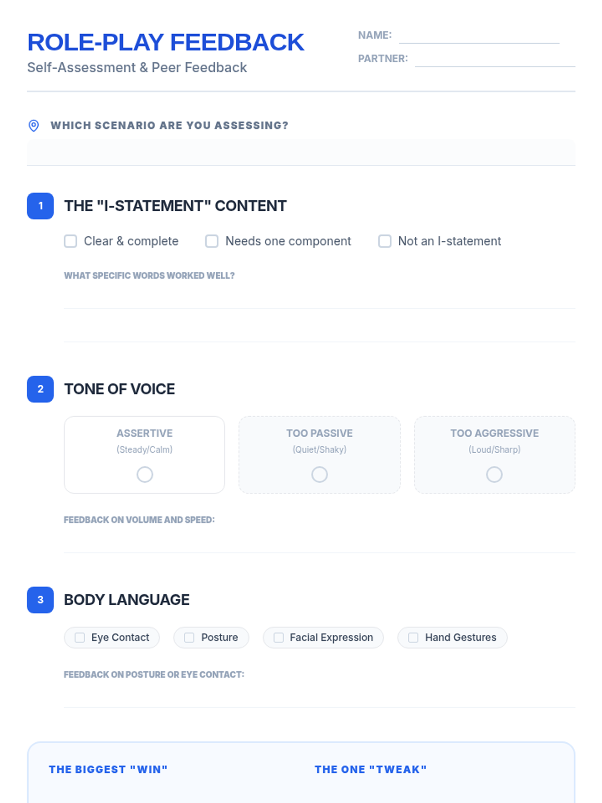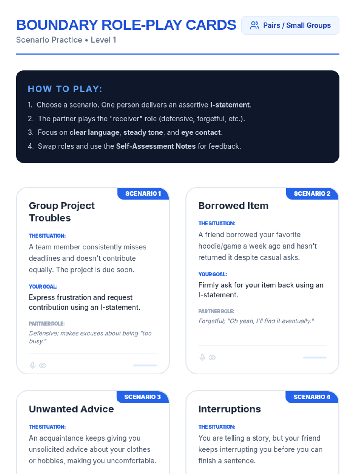 A 30-minute lesson for 9th-grade students on the power of assertive communication, focusing on 'I-statements', tone, and body language through role-play and peer feedback.