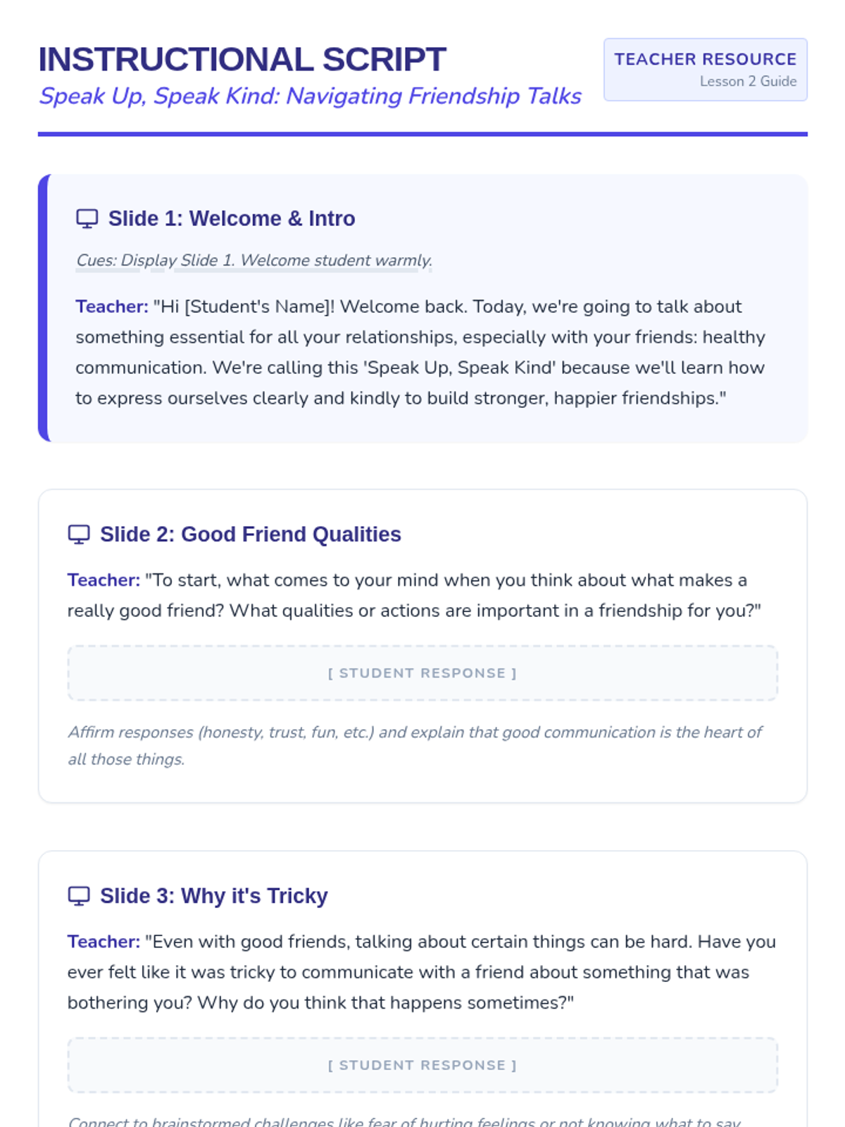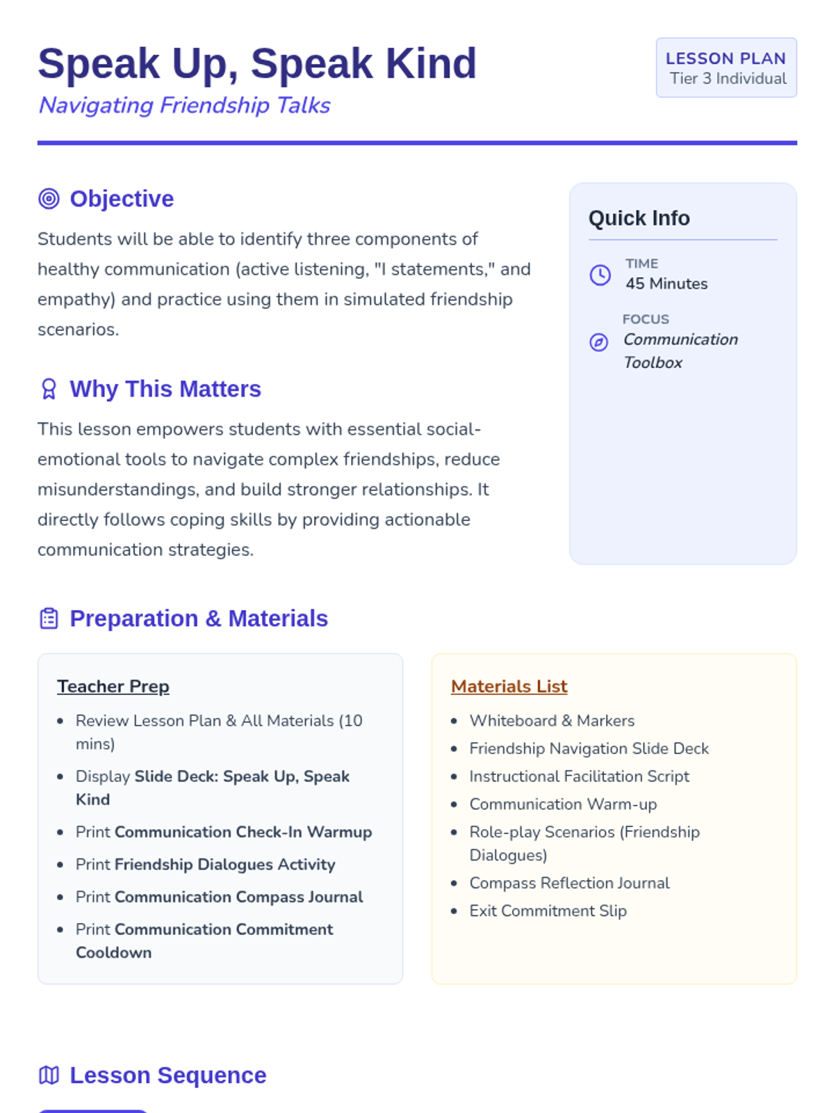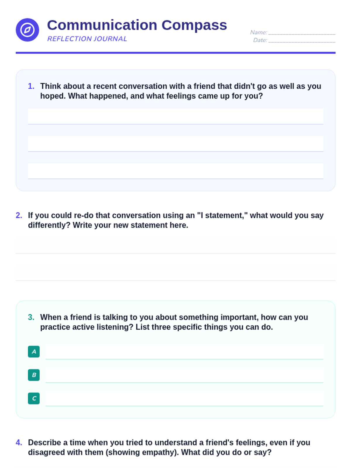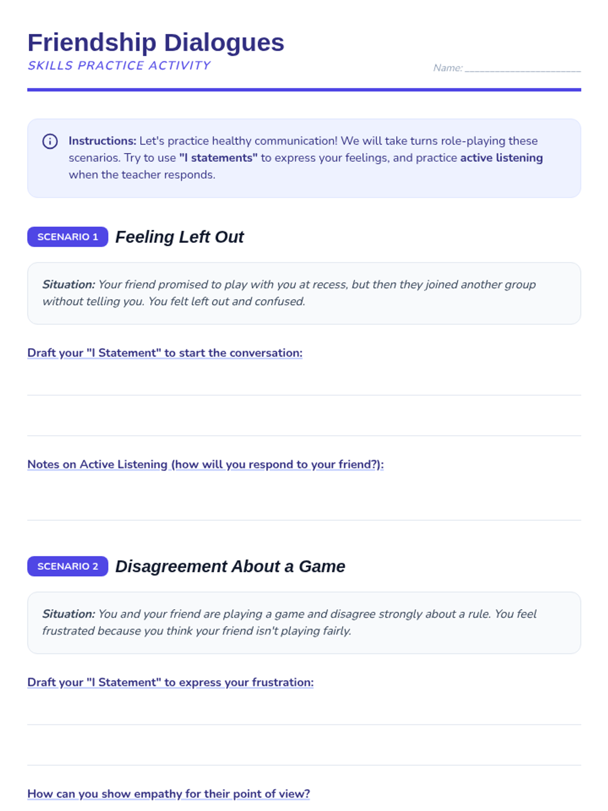 Students develop healthy communication tools like I-statements and active listening to navigate friendship challenges and express needs respectfully.