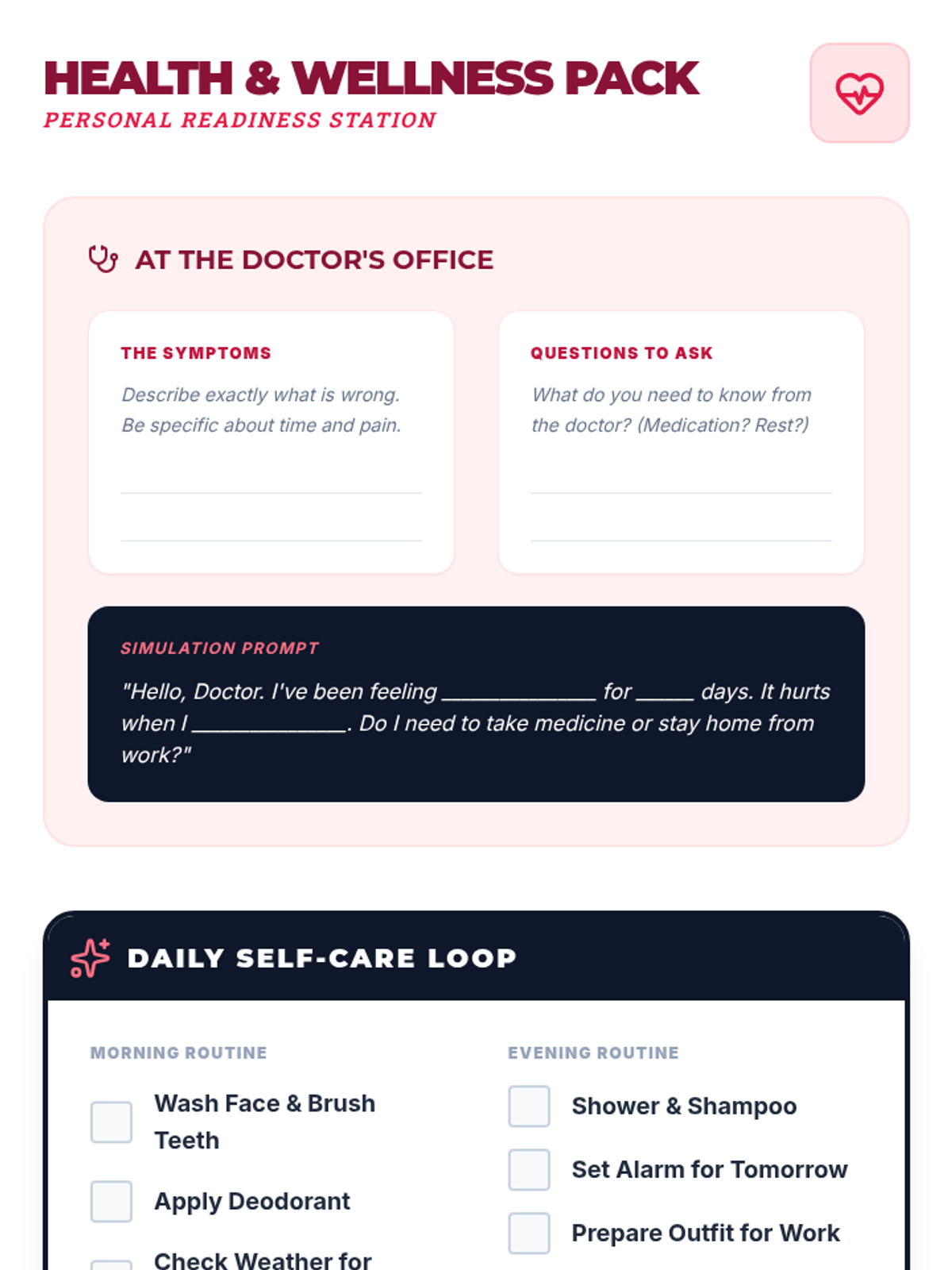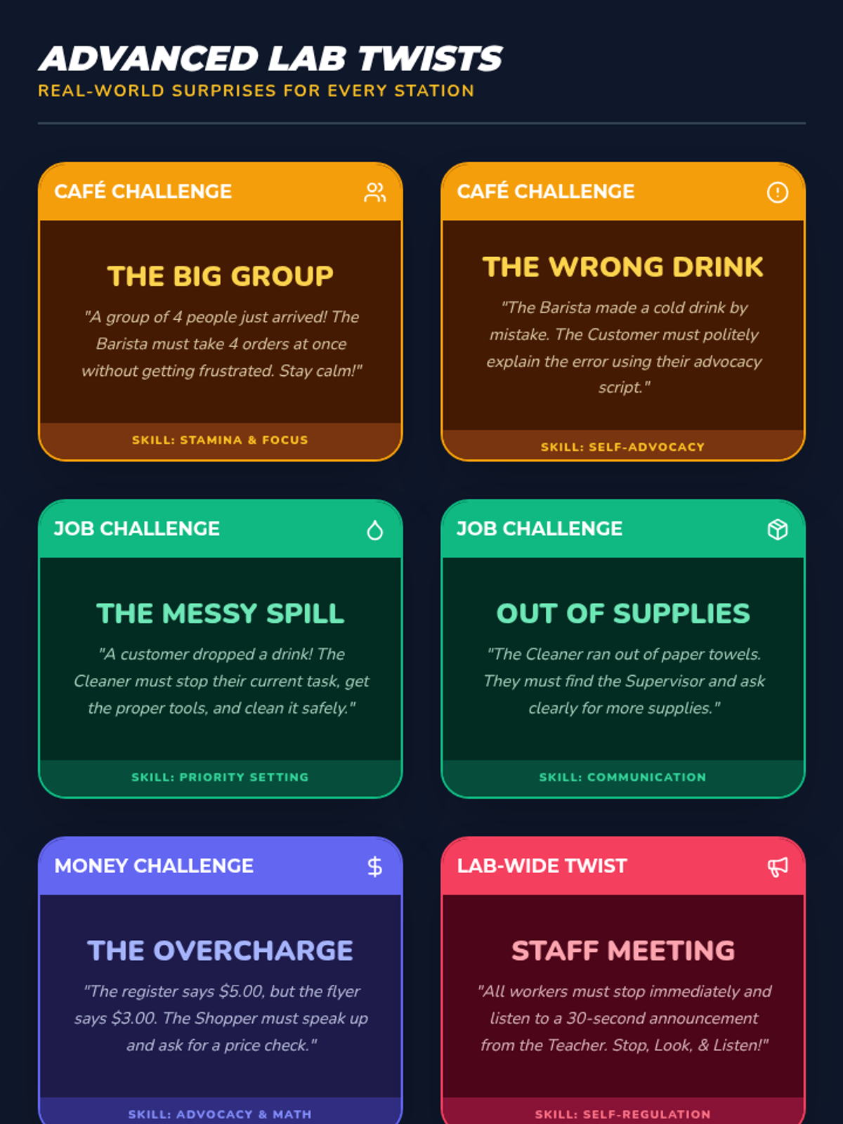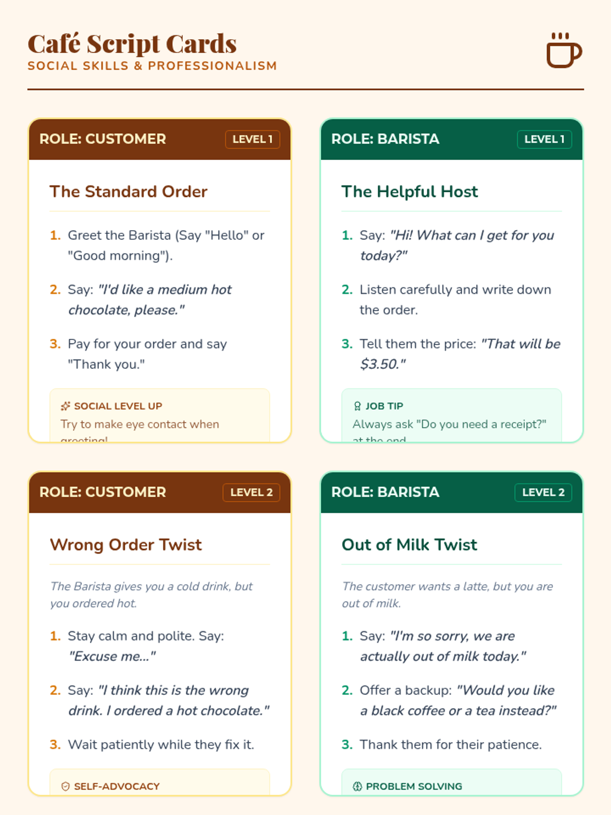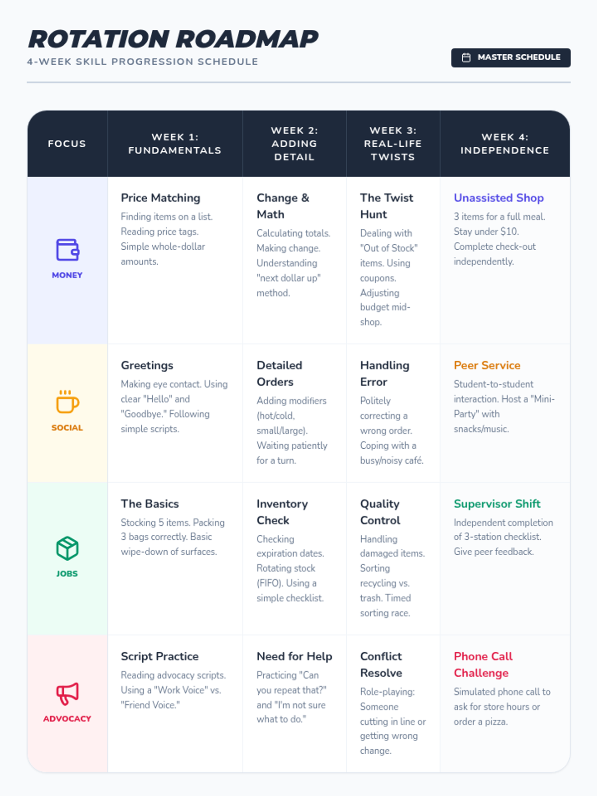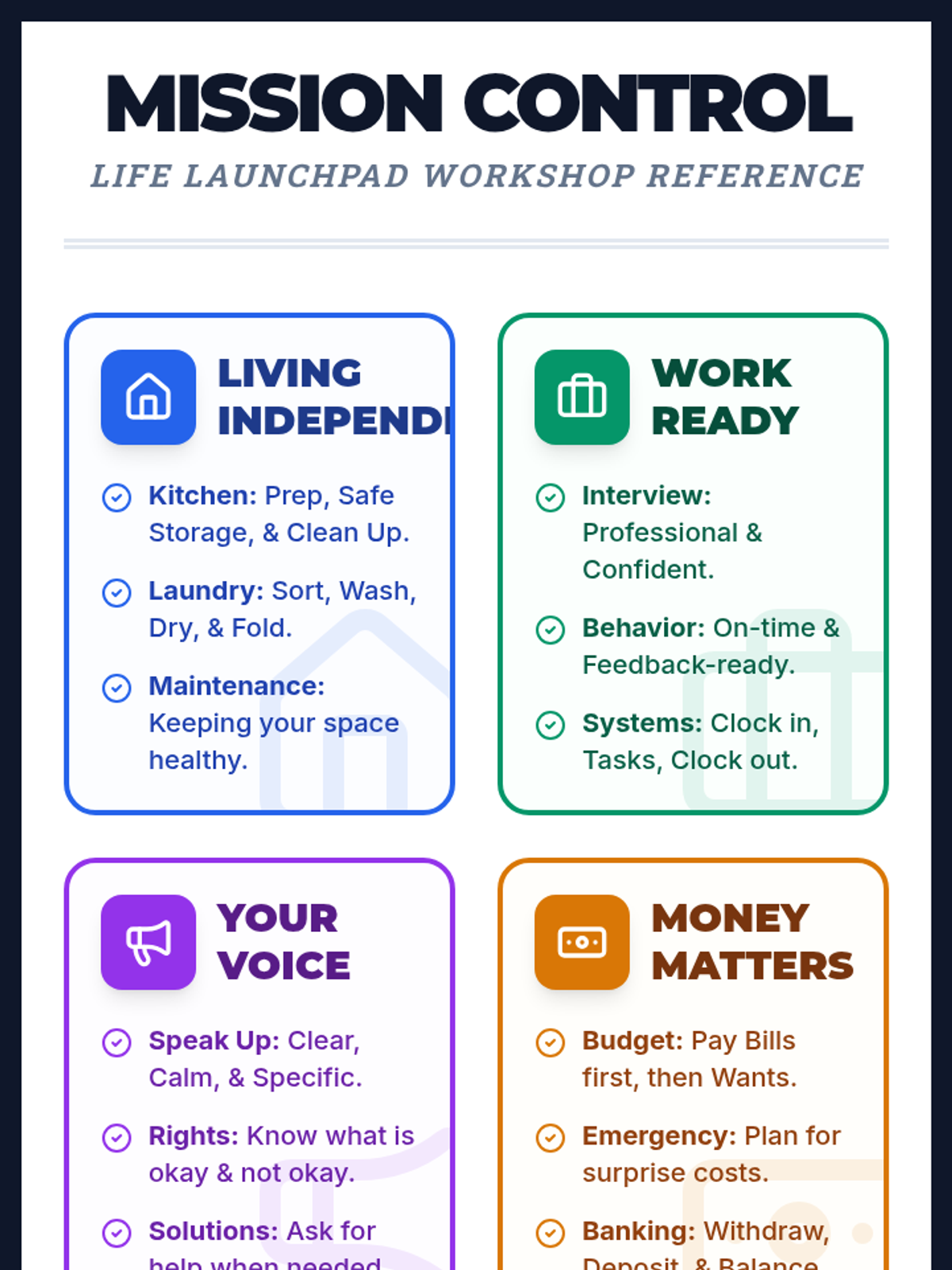 In this 15-minute Tier 3 session, learners with disabilities will explore key non-verbal communication skills—gestures, facial expressions, and body language—to enhance daily interactions and self-expression. This personalized lesson supports individual growth and confidence in everyday settings.