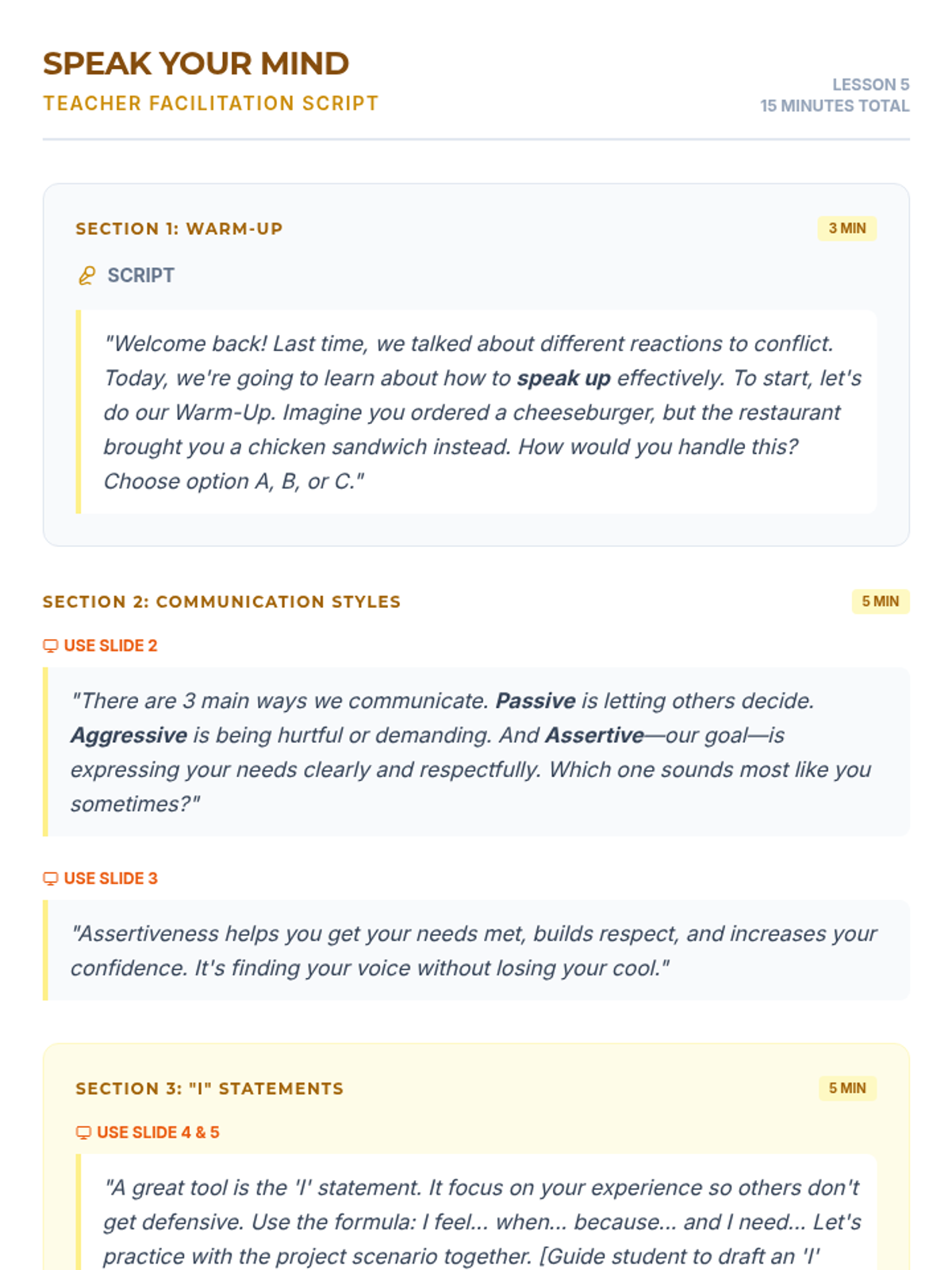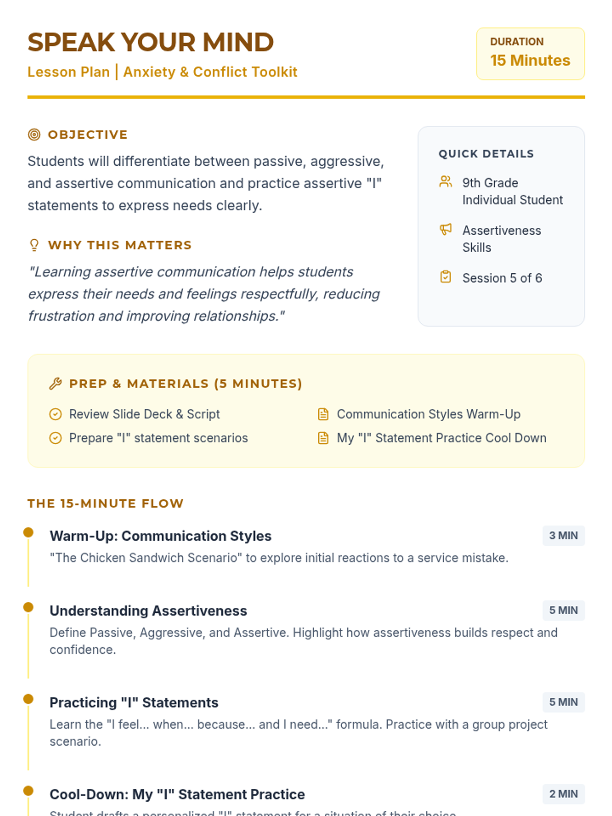 Differentiates between passive, aggressive, and assertive communication, introducing 'I' statements as a tool for advocacy.