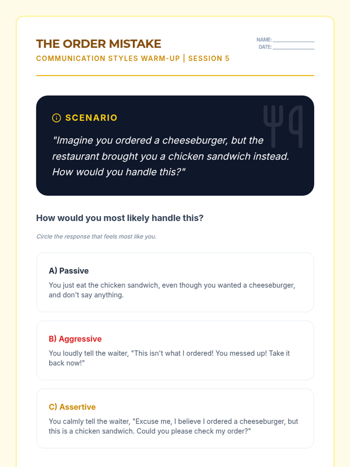 Teaches the mindset and language of self-correction to handle communication errors without loss of confidence.