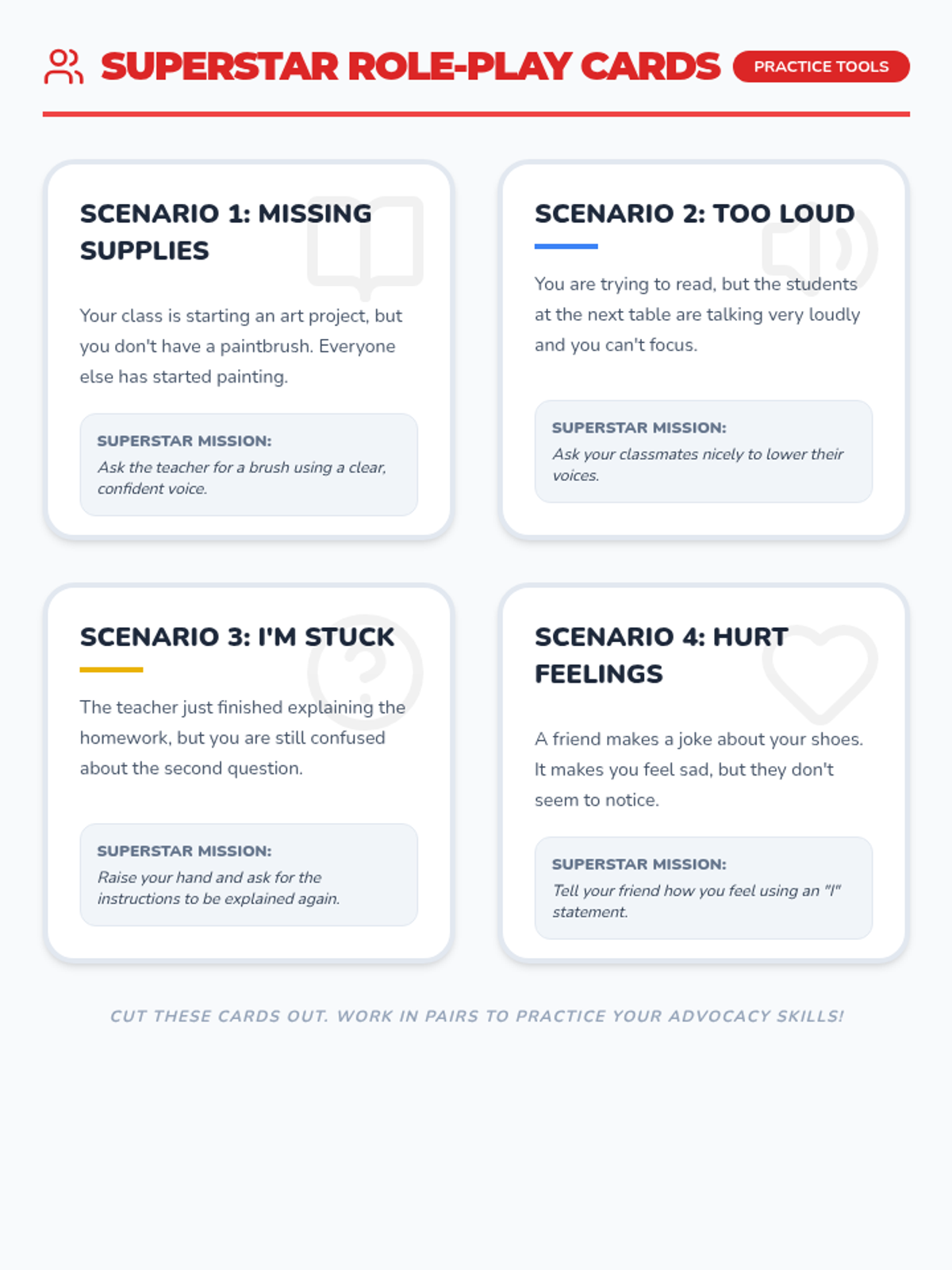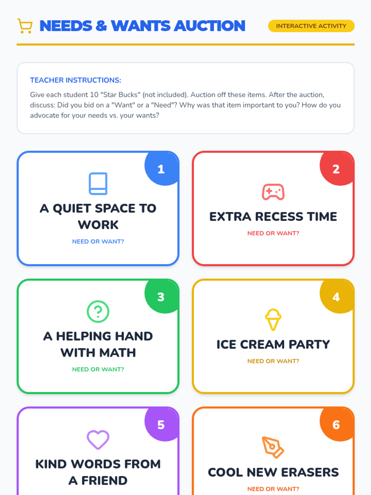 Students practice expressing their needs and preferences through role-play and social interaction games.