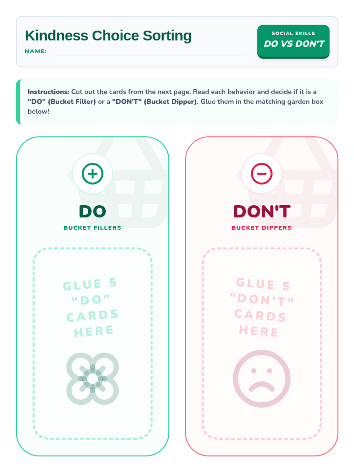 A social-emotional learning lesson for grades K-4 focused on acts of kindness, positive self-talk, and the 'bucket filling' concept. Students will learn how their words and actions impact both themselves and those around them through interactive activities and a take-home challenge.