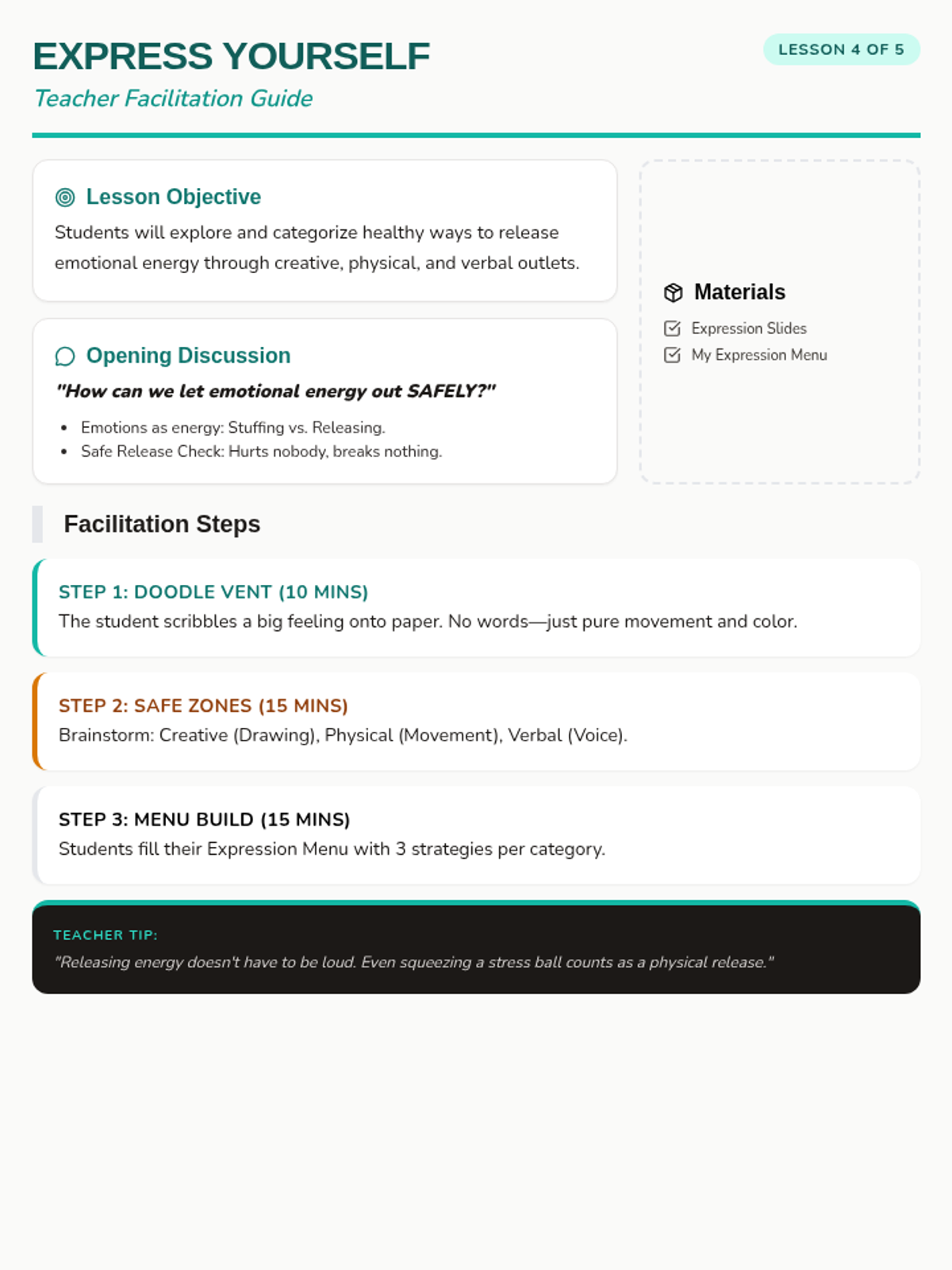A comprehensive set of resources for middle and high school students focused on developing social-emotional intelligence, mental health awareness, and practical coping strategies. This lesson provides tools for self-tracking, group discussion, and hands-on practice with real-world scenarios.