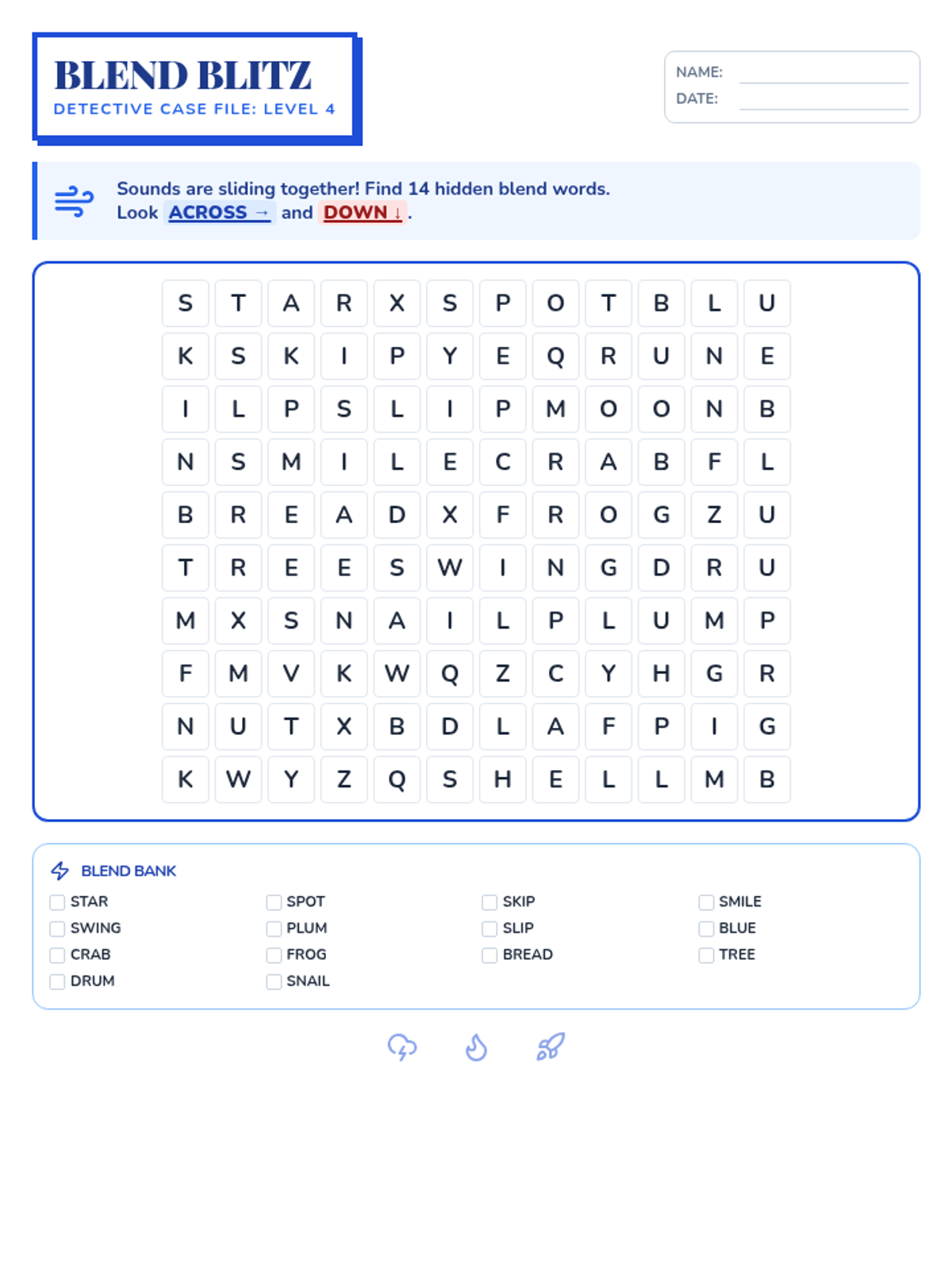 Mastering complex clusters where two sounds slide together, focusing on s-blends, l-blends, and r-blends.
