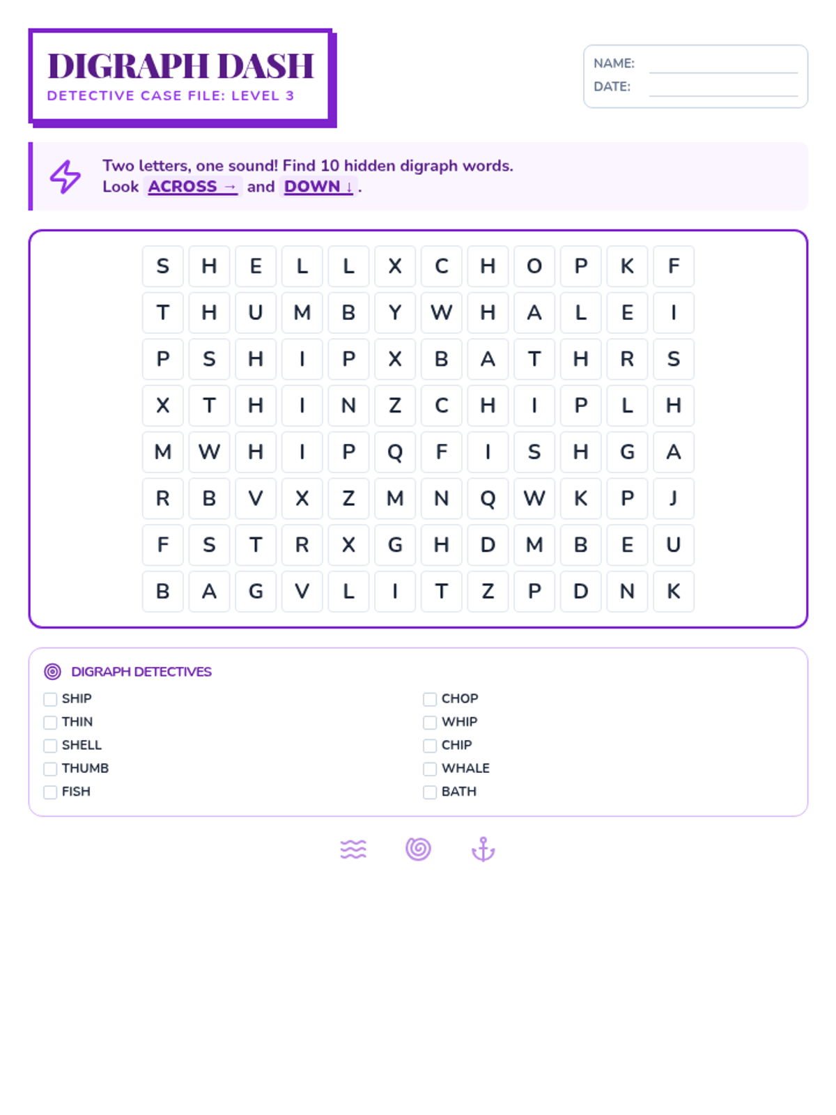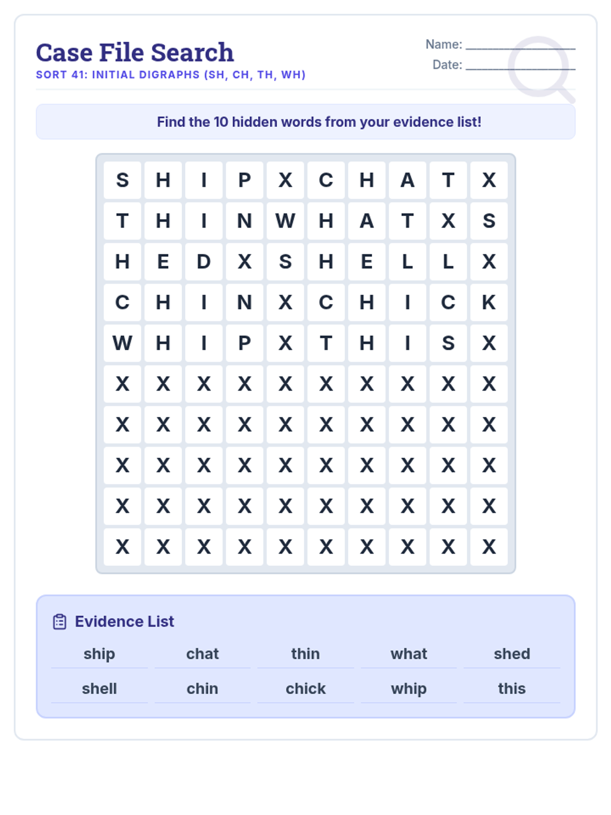 Investigations into special two-letter combinations that create unique single sounds, featuring sh, ch, th, and wh.