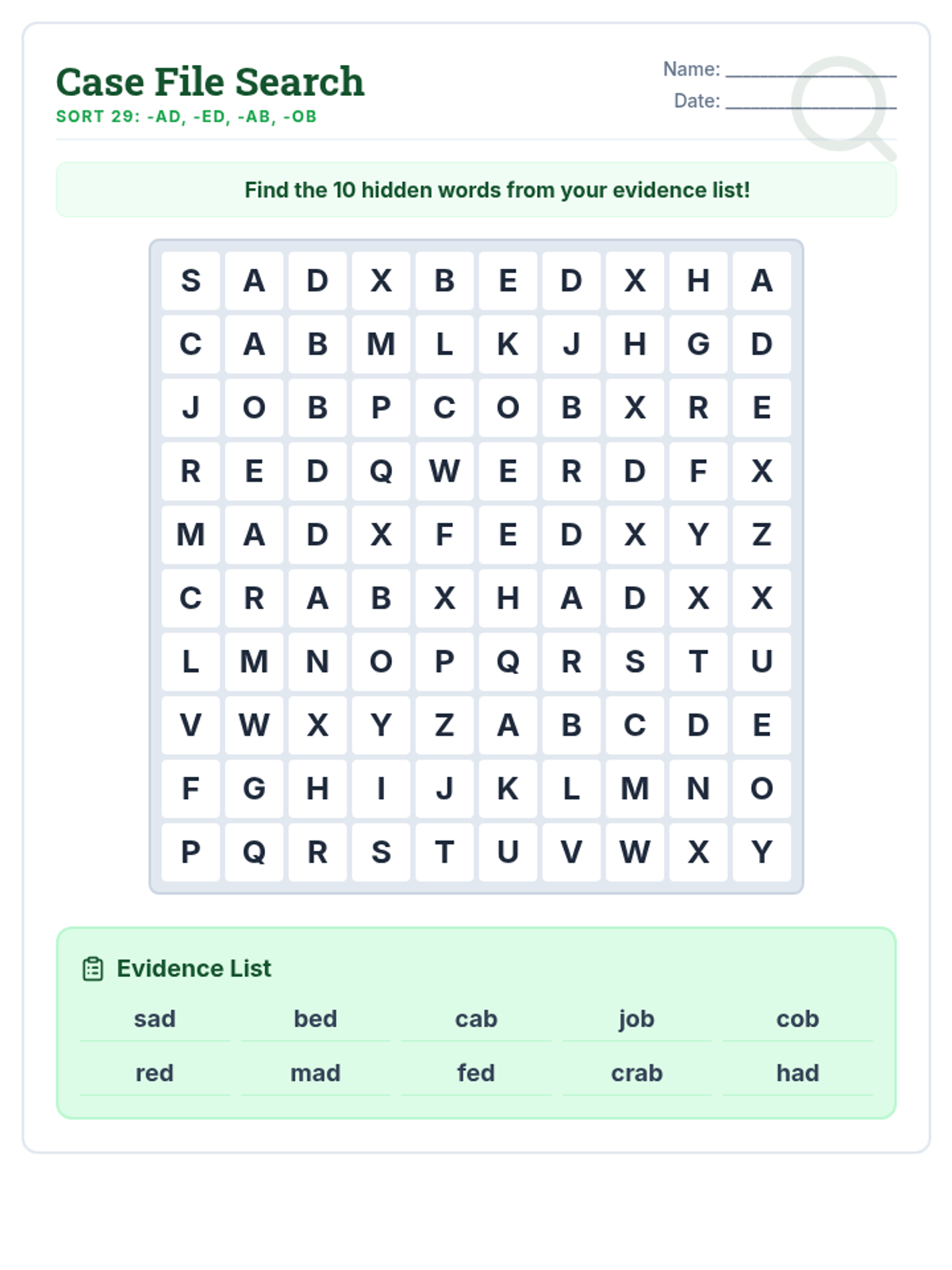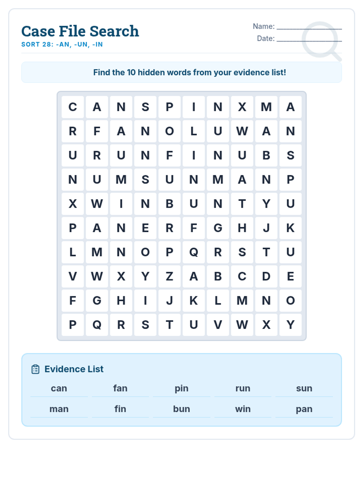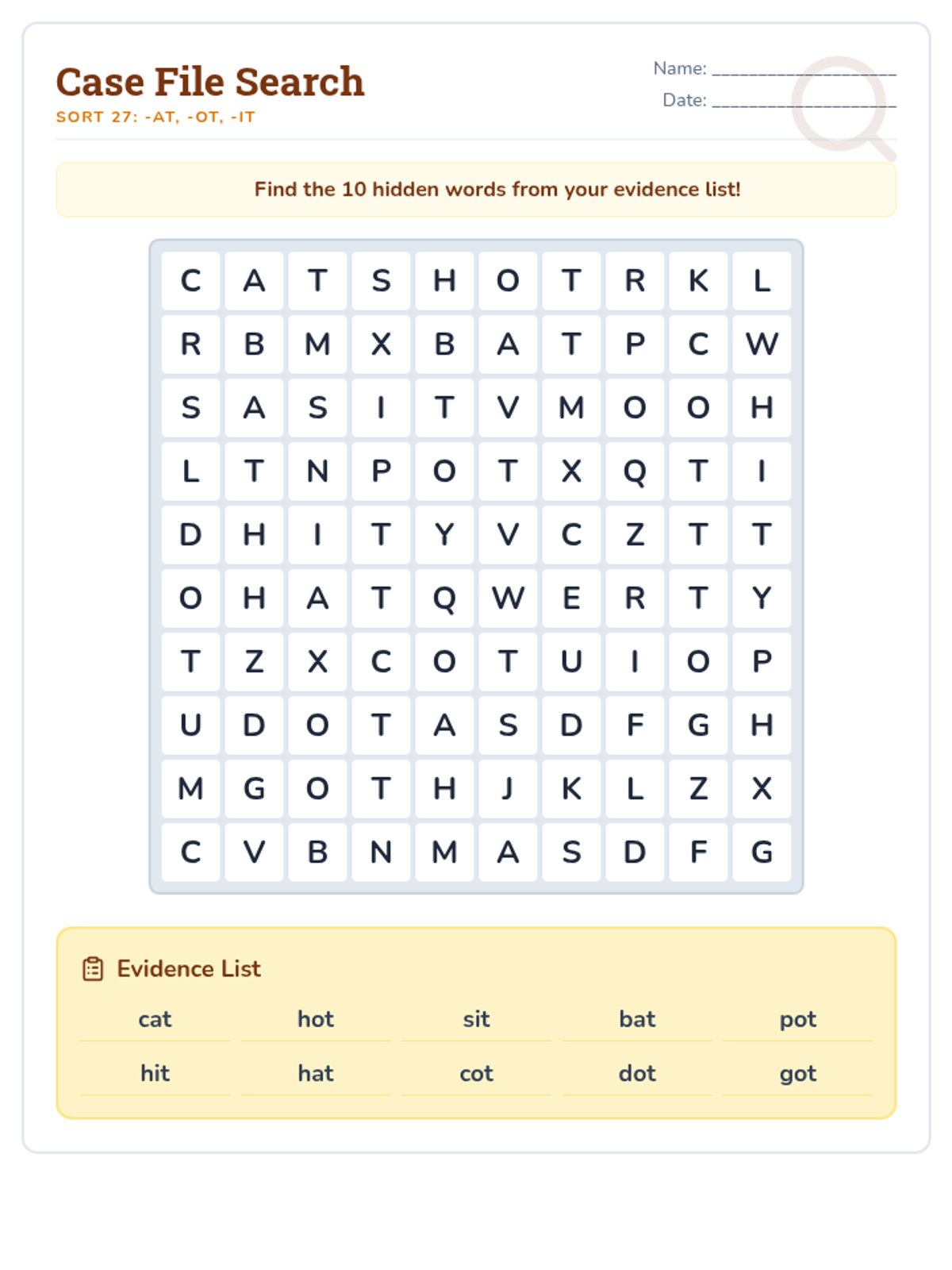 Detecting patterns in word endings, students explore common word families to build rhyme and reading fluency.